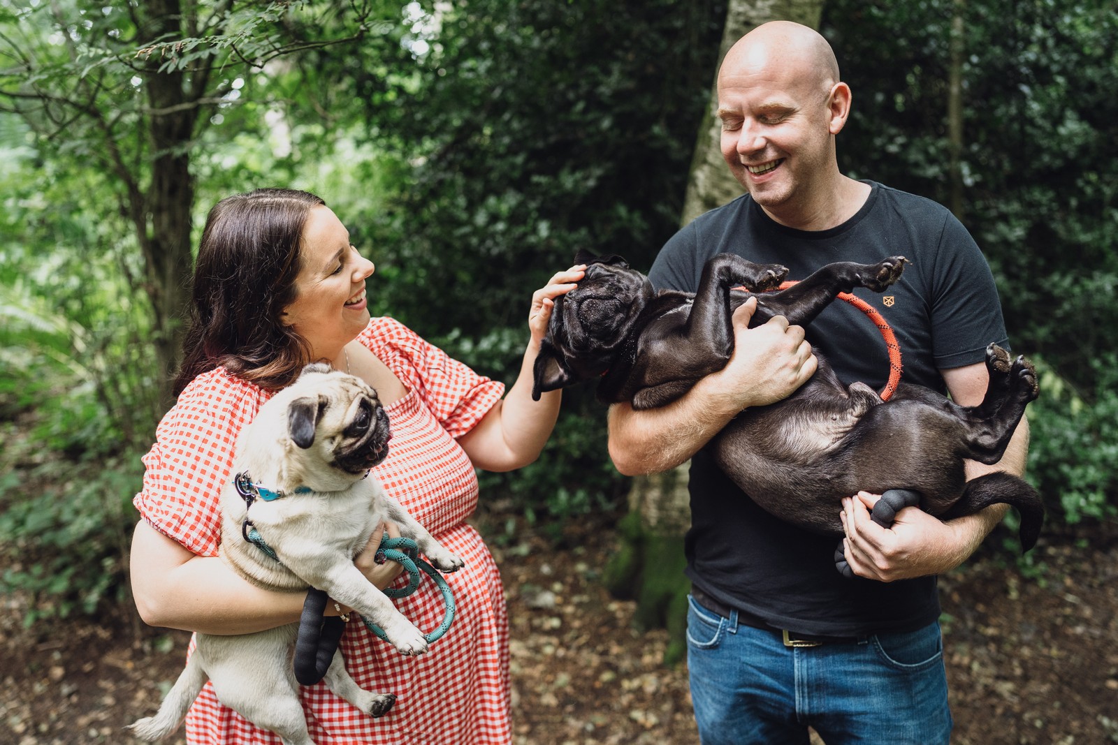Charlotte & John booked a Maternity shoot in the woods to celebrate their second wedding anniversary and also wanting some gorgeous photo’s before their baby boy arrives. They brought the dogs who were so well behaved, they are such a big part of the family.