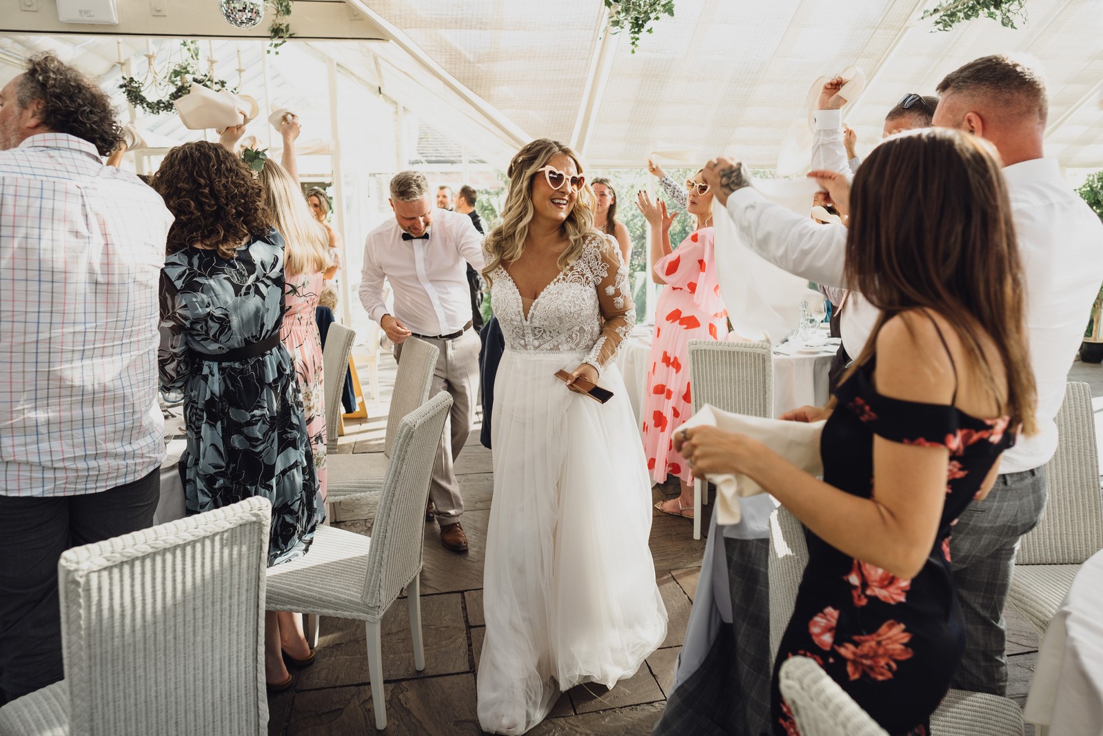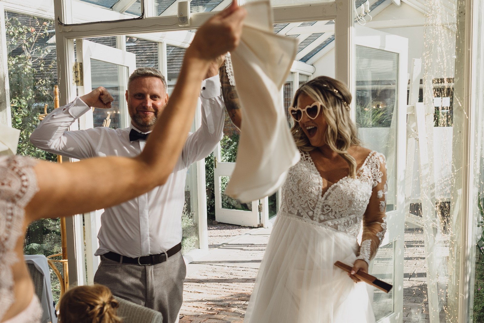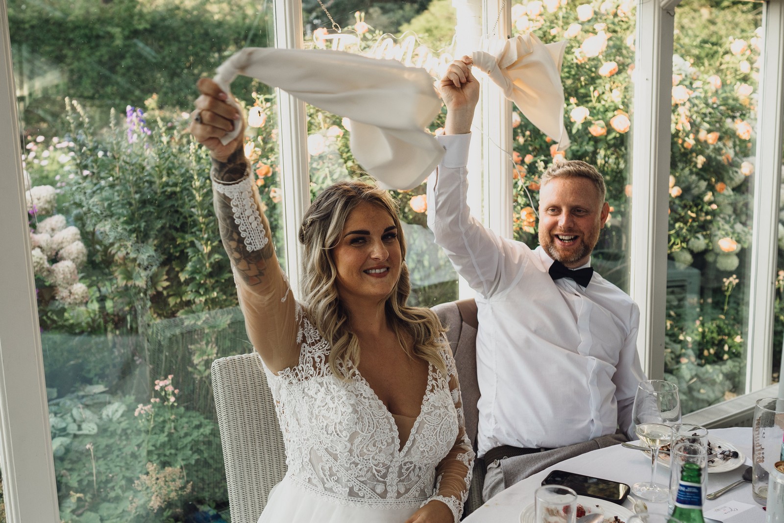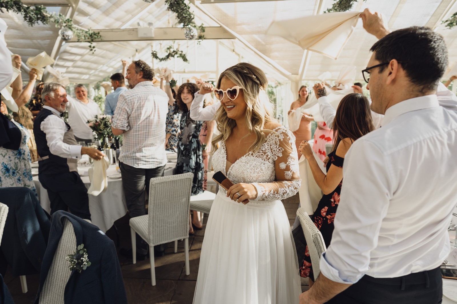 The rest of the day passed in a blur of hugs, smiles and happy tears! I absolutely love my job but it was incredible to spend the day as a guest and celebrate with Emily. I had a few more duties before I could fully relax though, namely helping organise a few group photos – I just couldn’t stop myself! – and introducing the newly weds into the Glasshouse before the wedding breakfast. I made sure everyone was waving their napkins in the air, clapping and cheering as they made their entrance. It was time to celebrate!