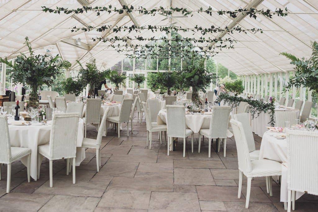 The garden inspiration led from outside in, everywhere decorated with stunning foliage and white blooms, elegant simple touches. The whole feel was so sophisticated, like something from the secret garden;