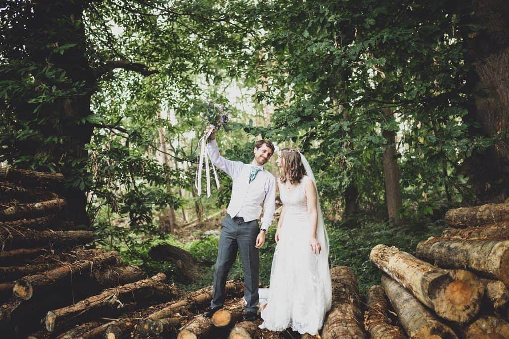 A stunning ceremony with Fern’s doting dad walking her down the aisle in the glasshouse, not a cloud in the sky! A few formal family shots in the mature gardens and then we went off for a little adventure. Stumbling upon a gorgeous log stack in the forest and finding a few perfect spots with pcokets of light.