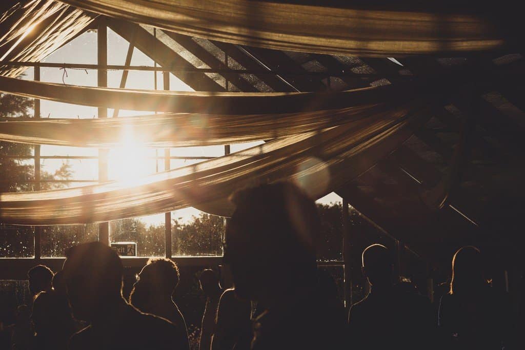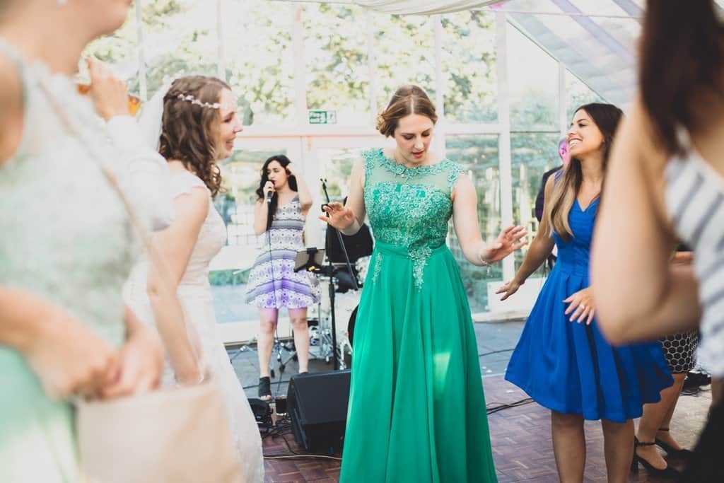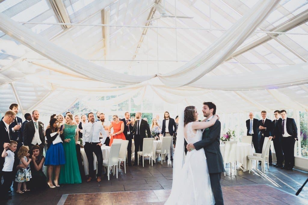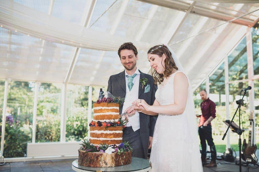 The cake cutting and evening dancing was in the glasshouse with plenty of guests throwing some shapes!! It was summer so as the sun was setting, golden hour was hitting the glass and creating some beautiful light.