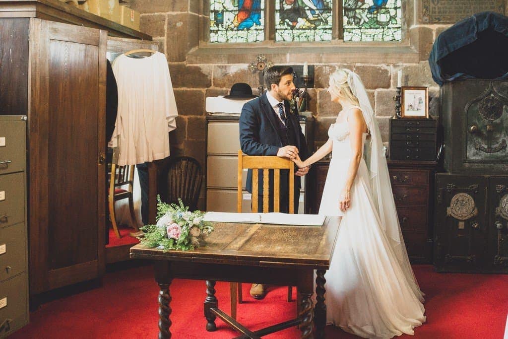 Jade arrived at Great Budworth Church in a vintage jaguar and she looked absolutely stunning as she was walked down the aisle by her dad to the waiting Jason.