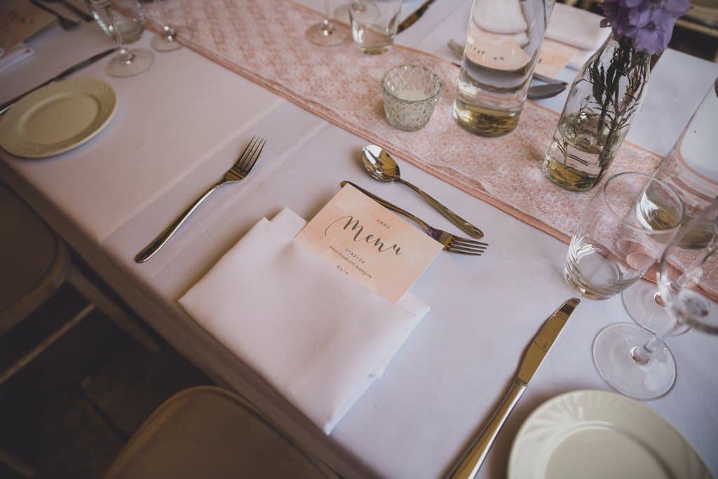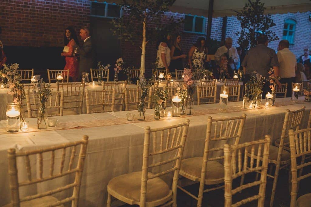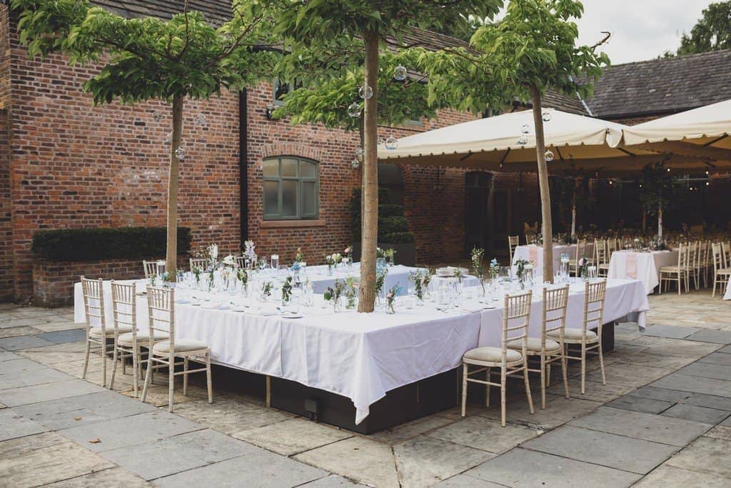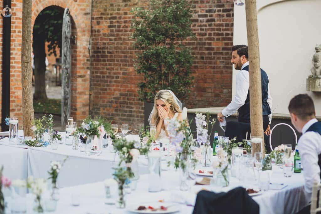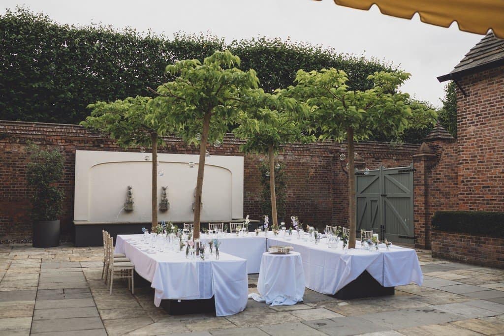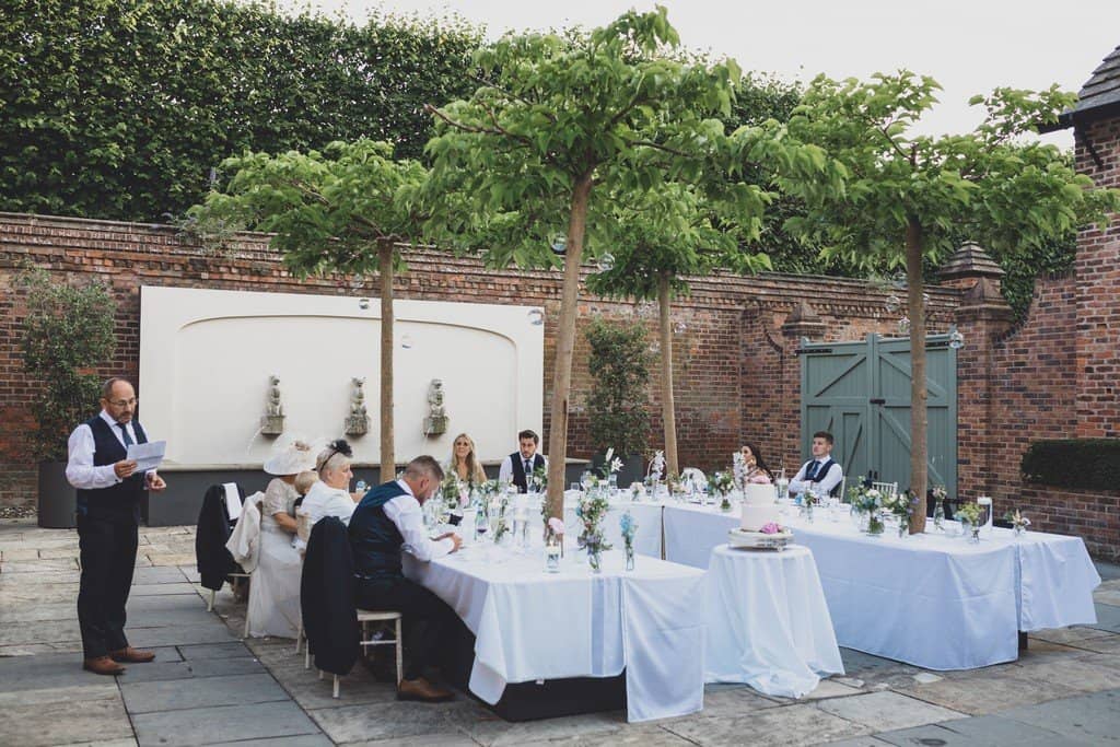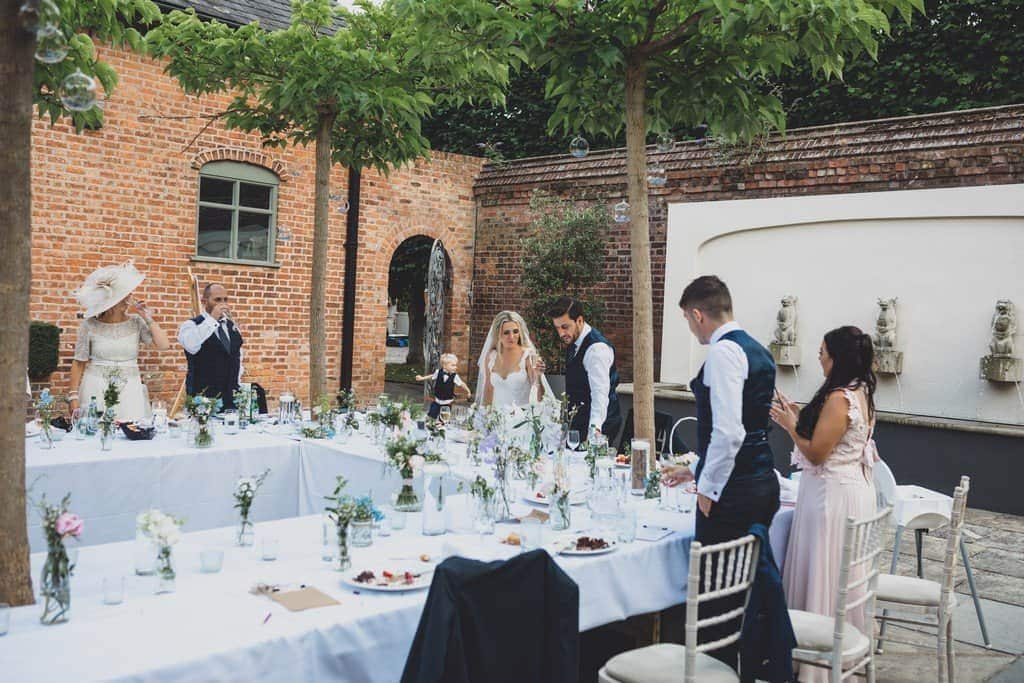 The courtyard had been beautifully decorated with long banqueting style tables and festoon lights and it looked amazing with the pale pink and blue flowers that complimented the bridesmaid’s dresses and Jade’s bouquet.