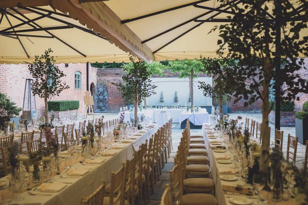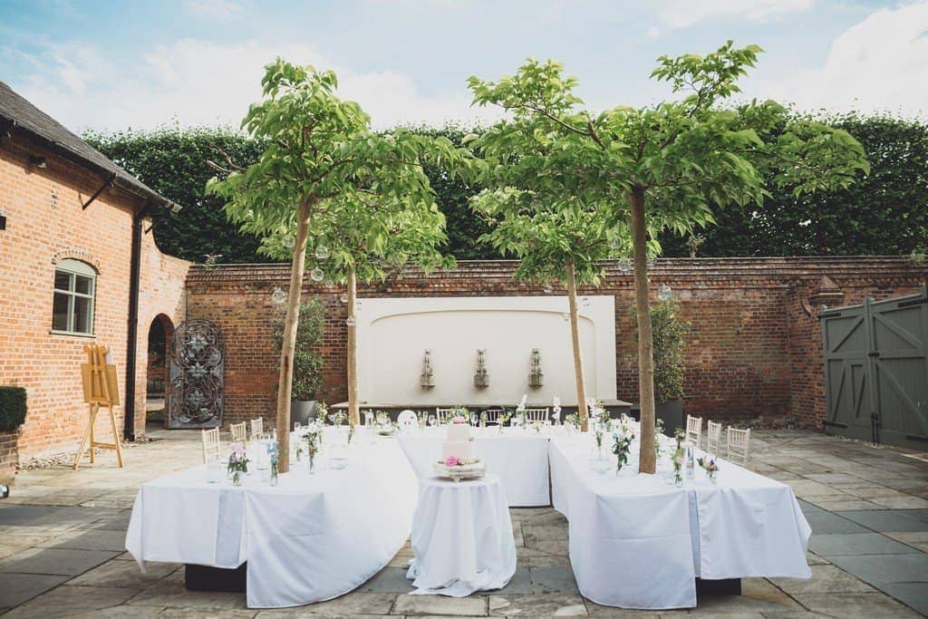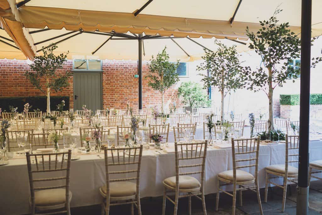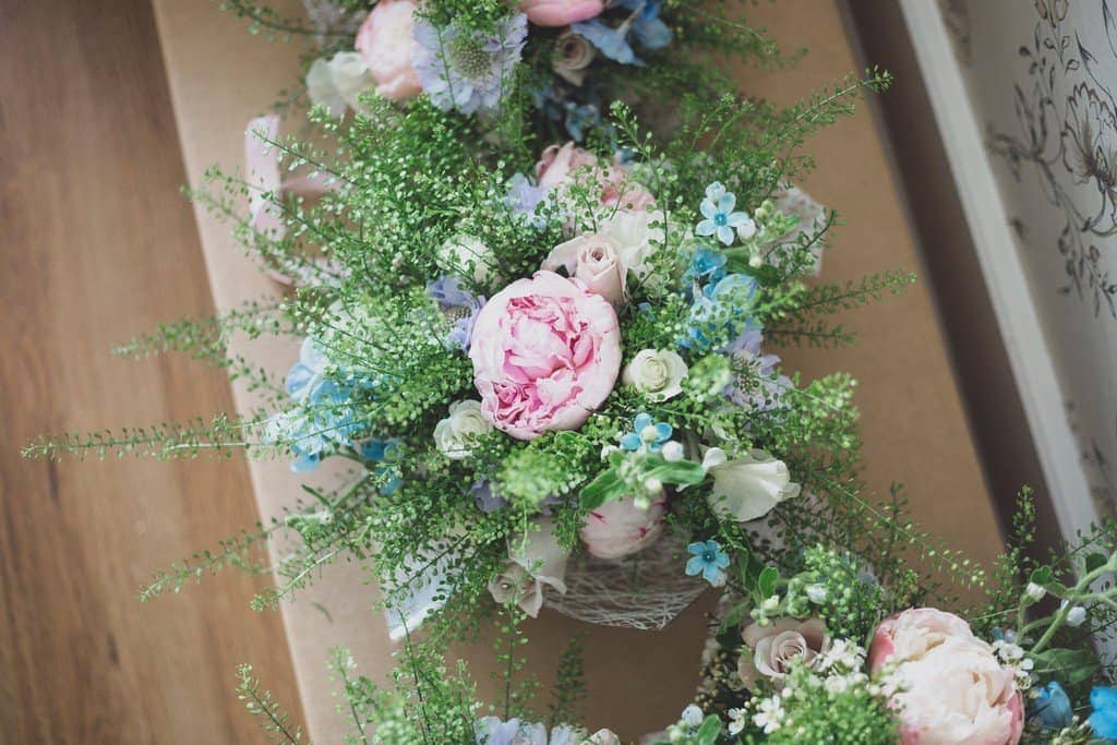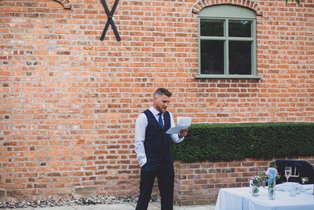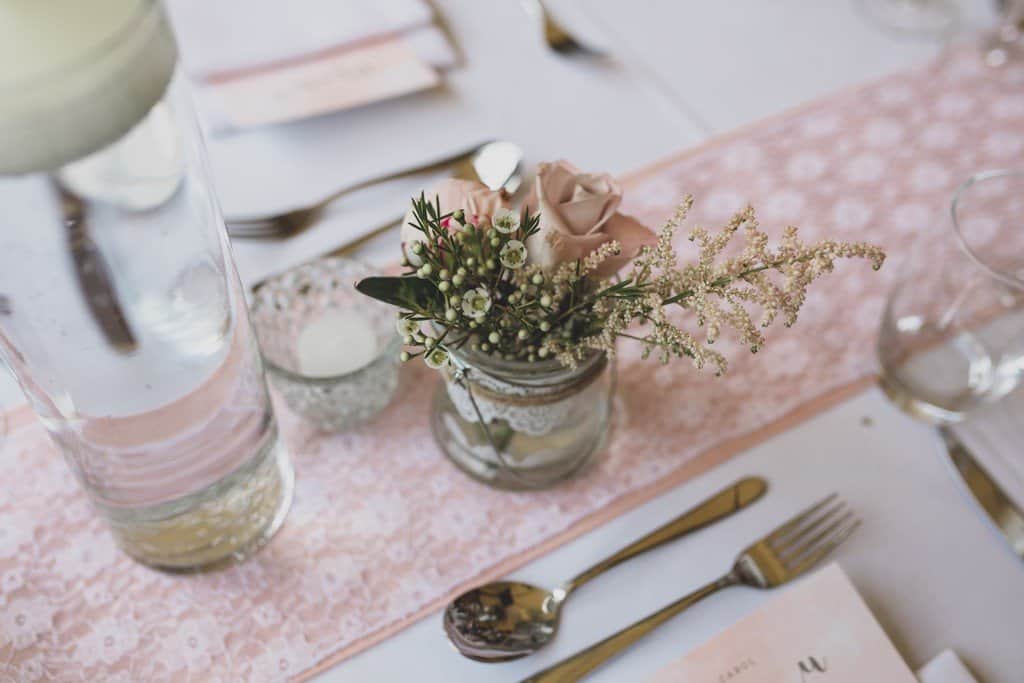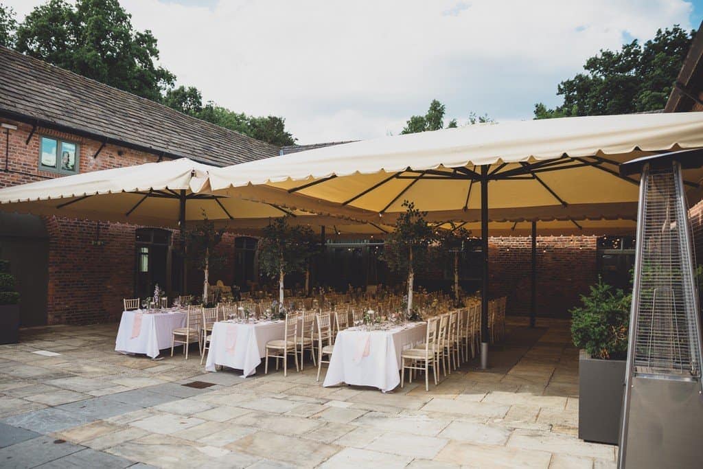 The courtyard had been beautifully decorated with long banqueting style tables and festoon lights and it looked amazing with the pale pink and blue flowers that complimented the bridesmaid’s dresses and Jade’s bouquet.