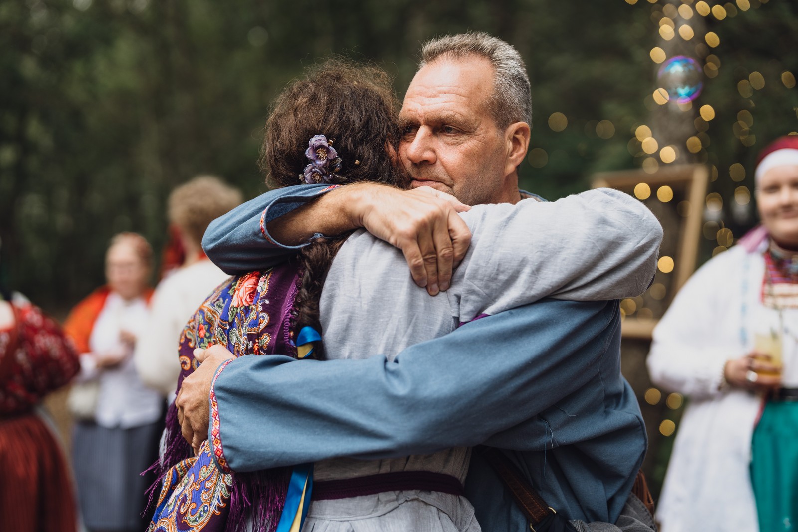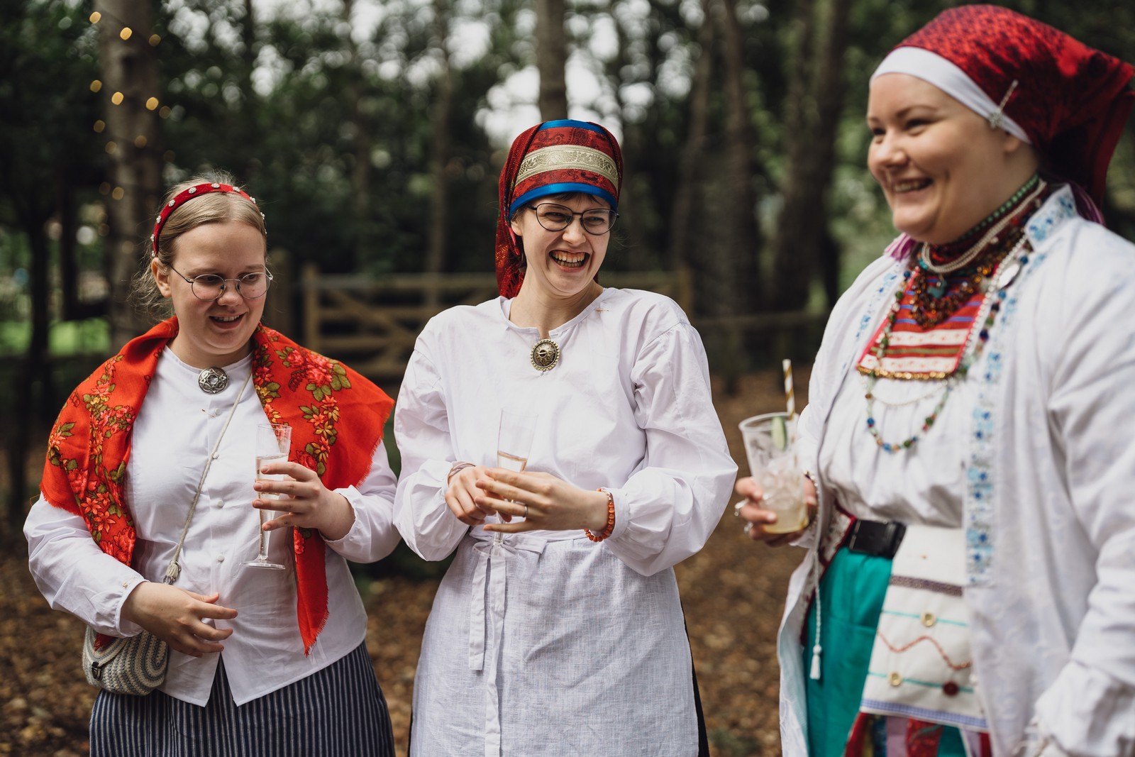 We wanted the day to be as relaxed and informal as possible, going along with the outdoor woodland vibe on the venue. Everything we planned was done to be as far away from a traditional, formal wedding as possible! We also knew we wanted to incorporate some traditional elements from Kris’ Karelian culture.