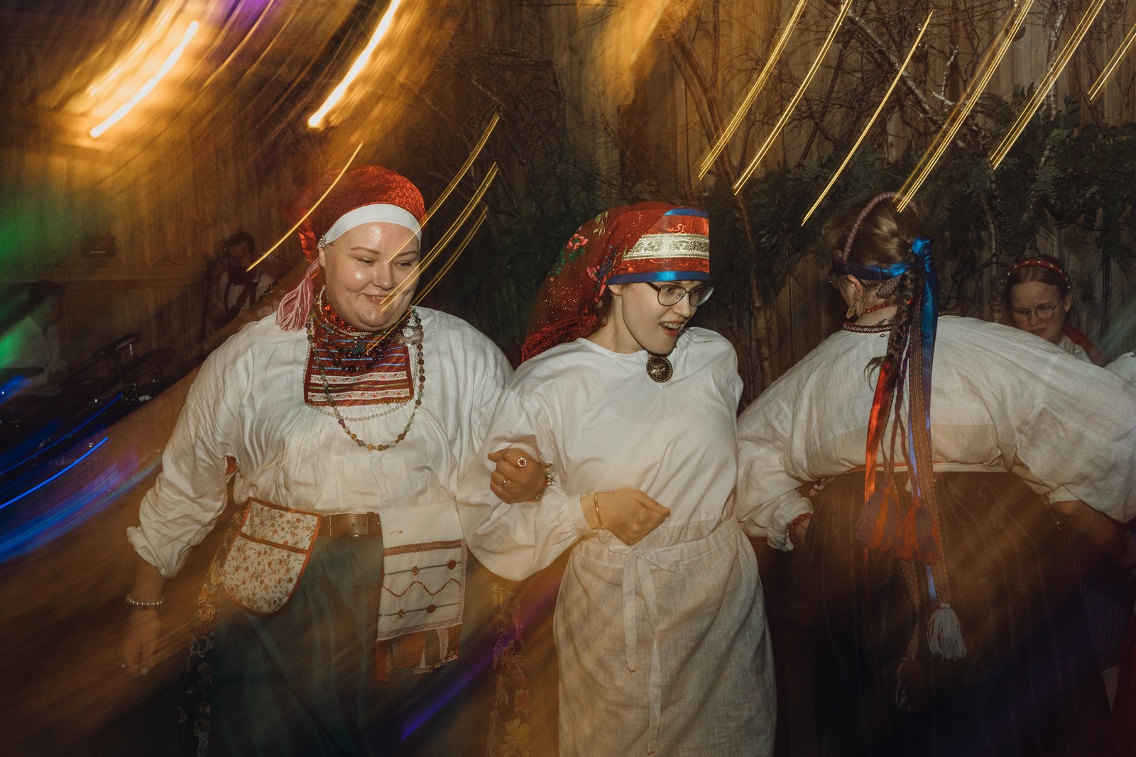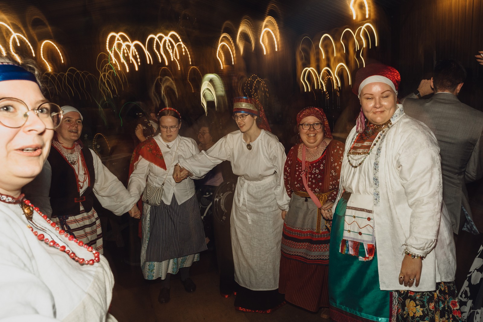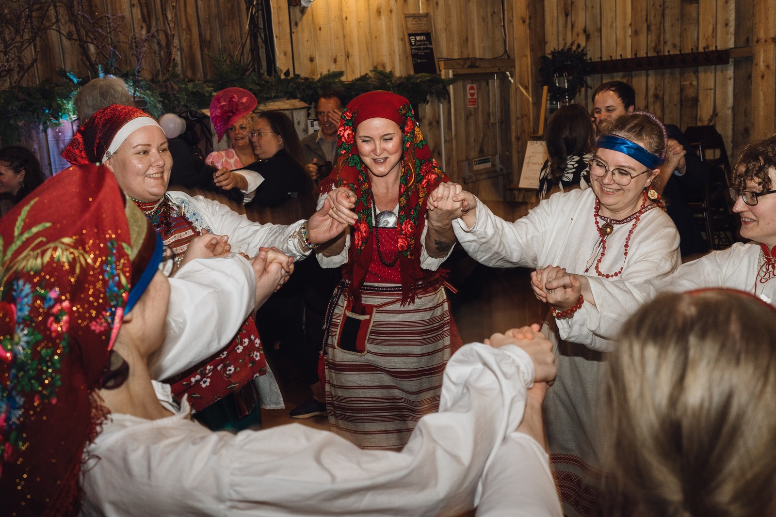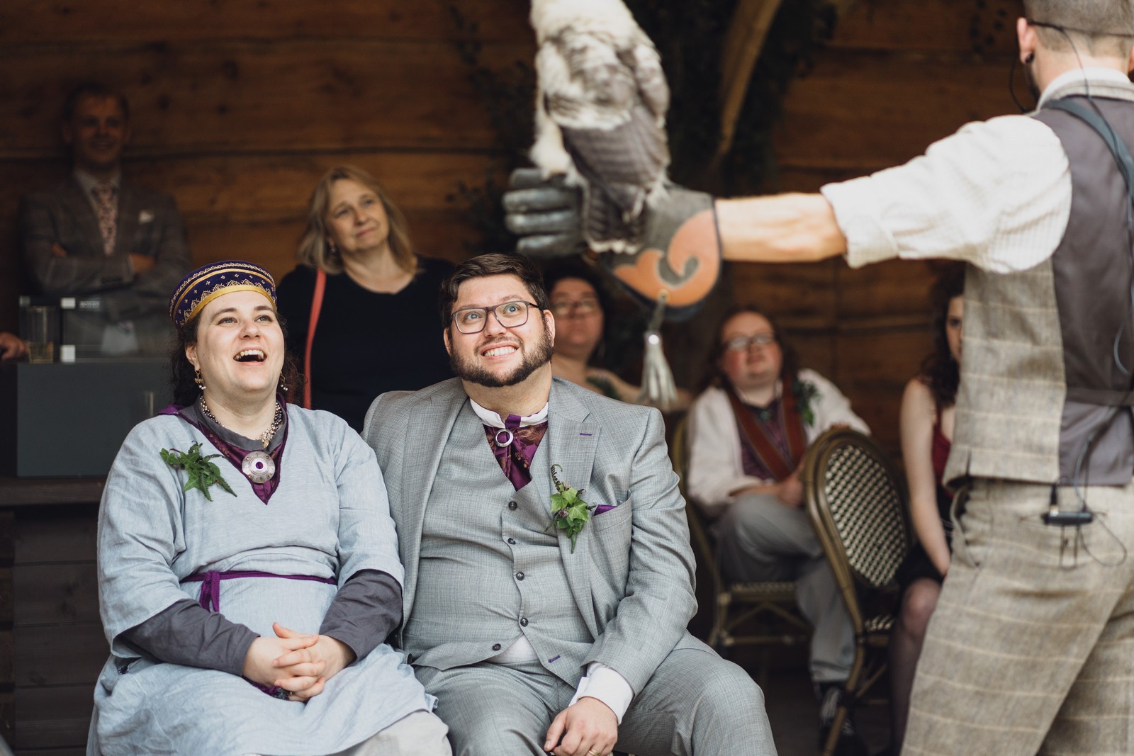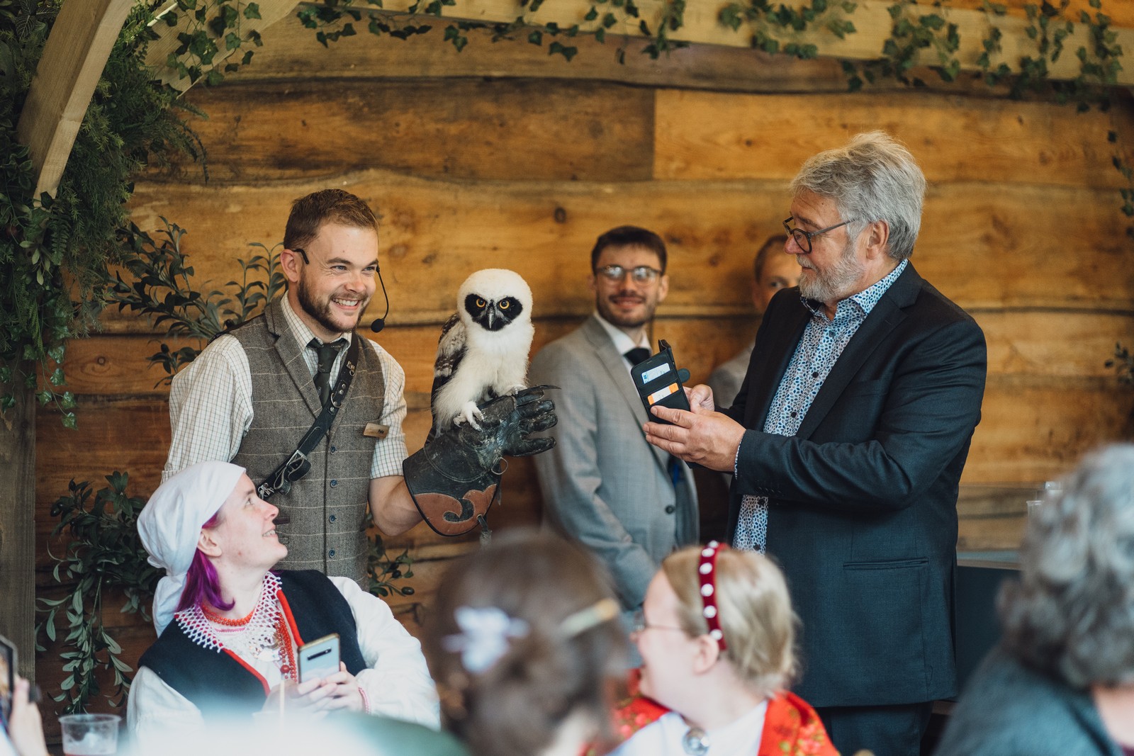 The little screech owl Nova landing on Kris’ head is definitely up there! The traditional Karelian elements – the poem song and shoe gifting the morning, and the lament after the ceremony – were also standouts for celebrating the culture and bringing in more points of difference. Also seeing all the guests embrace the activities and games was great, and really showed people had embraced the tone.
