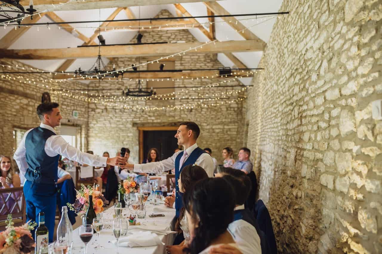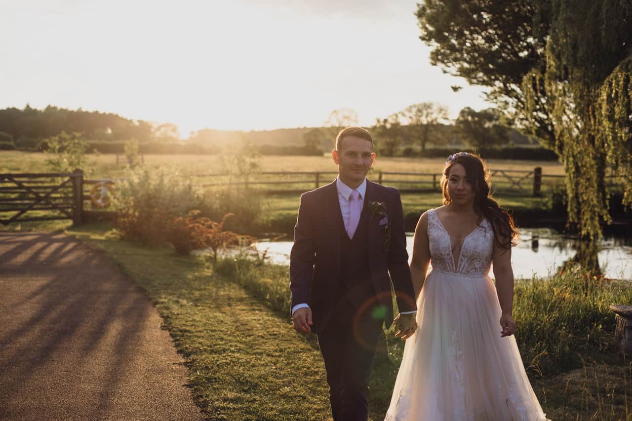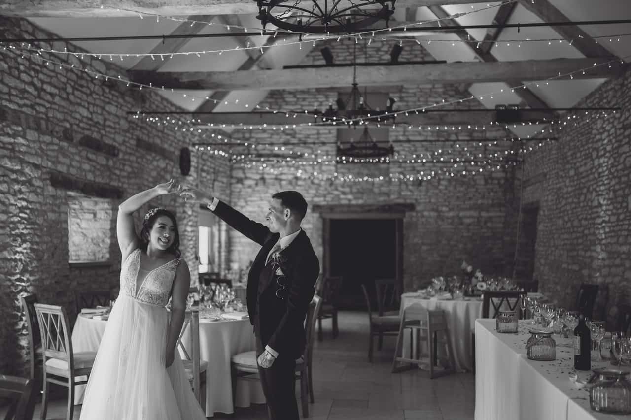 The wedding breakfast and speeches were set in the barn which looked really lovely, decked out in fairy lights and simple but elegant table decorations incorporating those pinks and peaches again. Aden and Valerie then did their first dance to “Earth Angels” by The Penguins before everyone got on the dancefloor for a boogie. The beautiful weather also meant that guests could stay outside to enjoy the spring evening with Aden and Valerie. The perfect ending to a perfect, personal day.