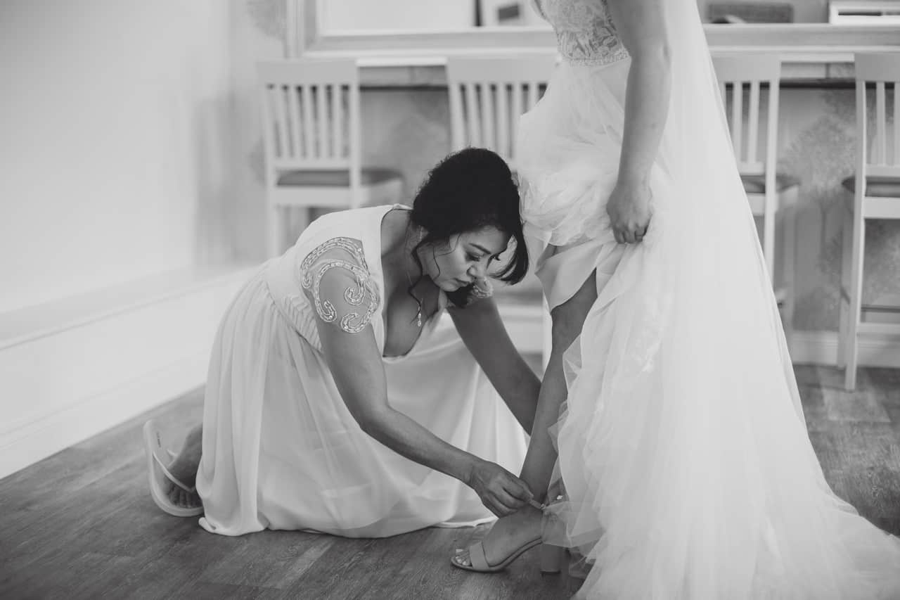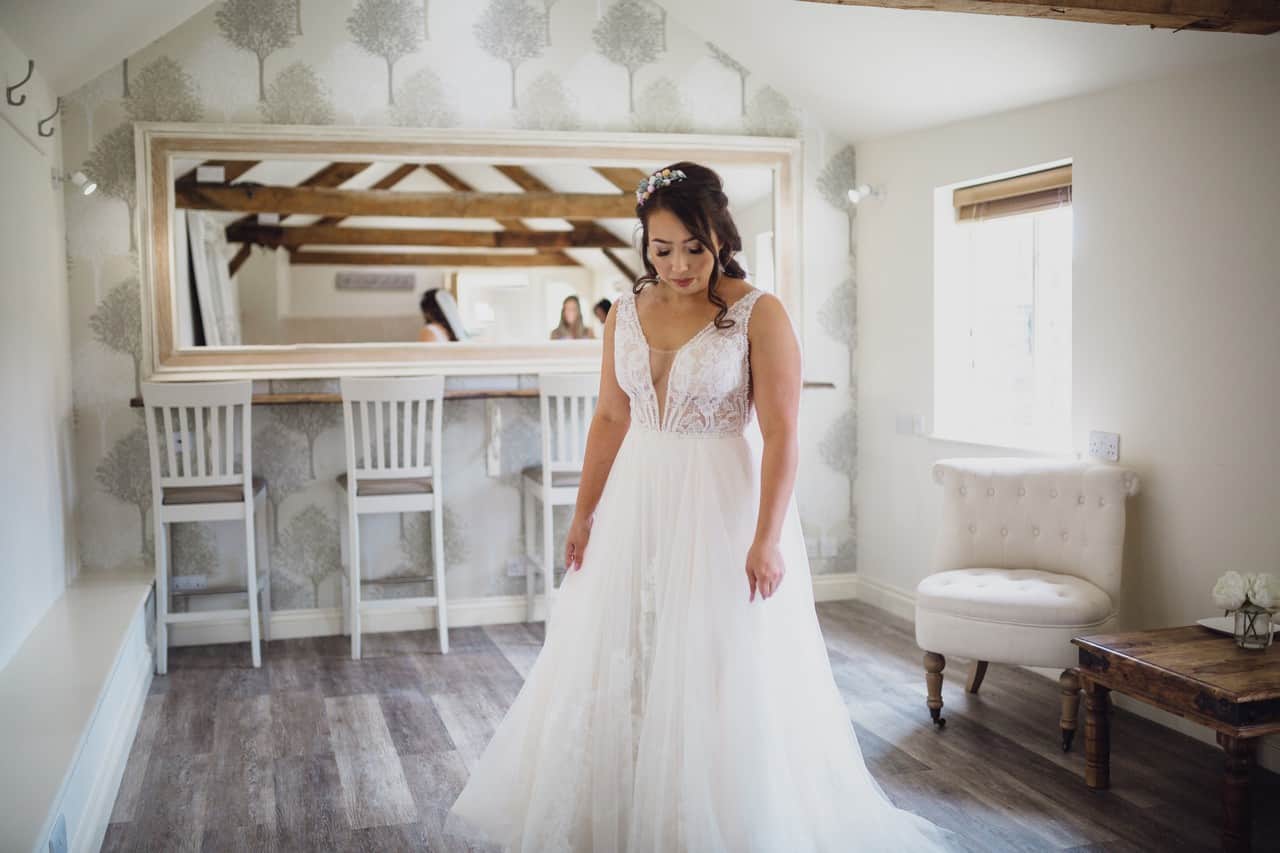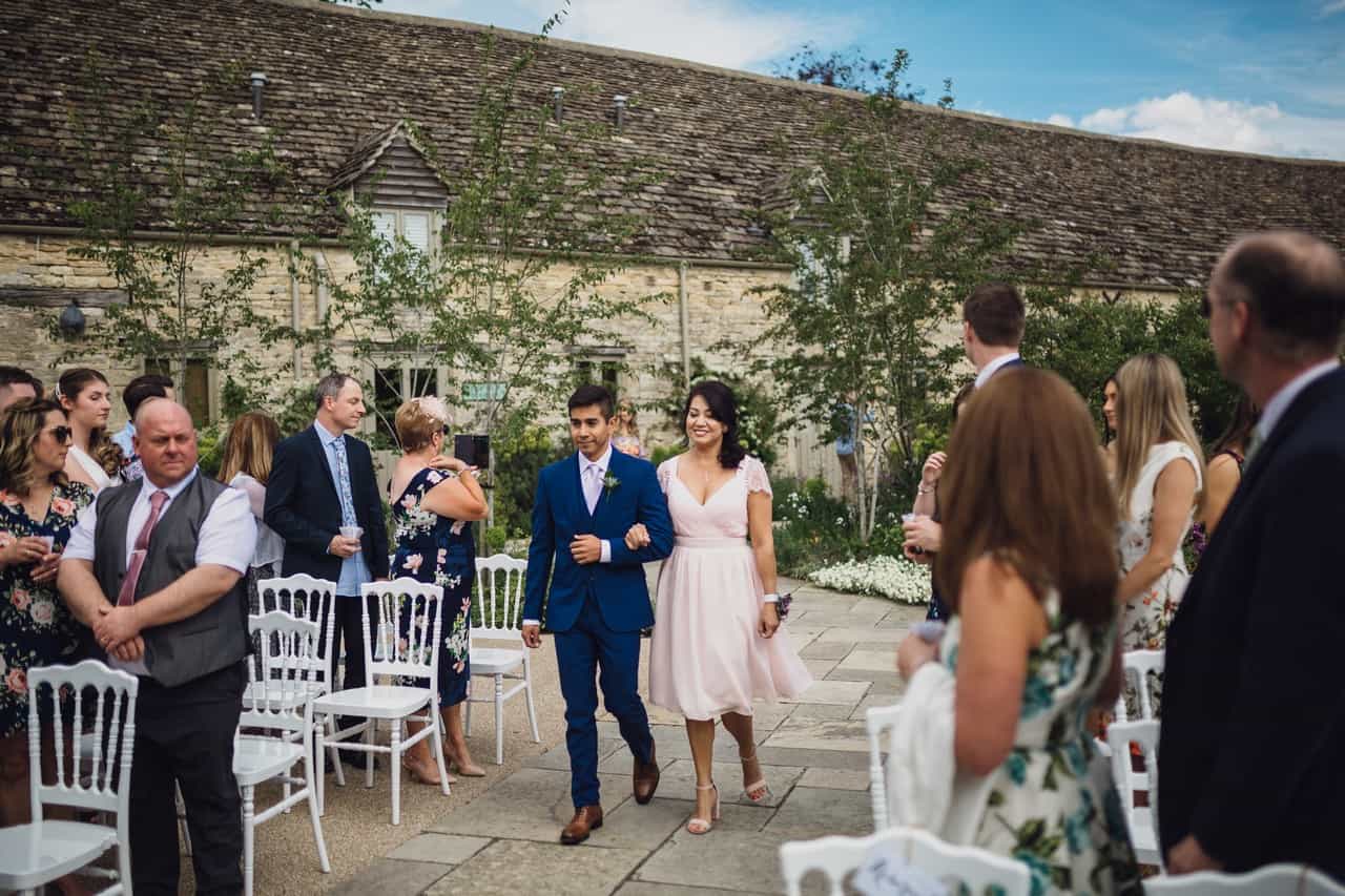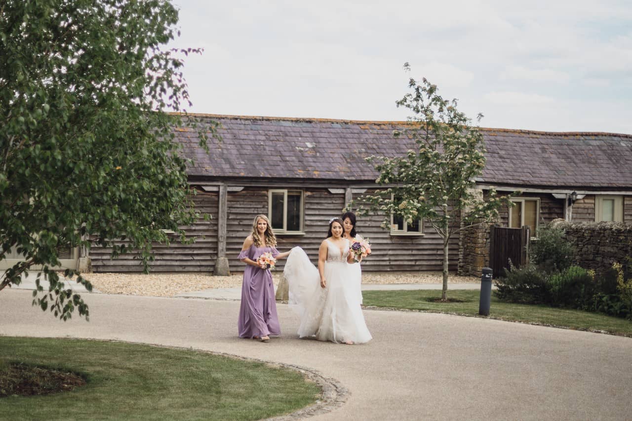 The wedding breakfast and speeches were set in the barn which looked really lovely, decked out in fairy lights and simple but elegant table decorations incorporating those pinks and peaches again. Aden and Valerie then did their first dance to “Earth Angels” by The Penguins before everyone got on the dancefloor for a boogie. The beautiful weather also meant that guests could stay outside to enjoy the spring evening with Aden and Valerie. The perfect ending to a perfect, personal day.