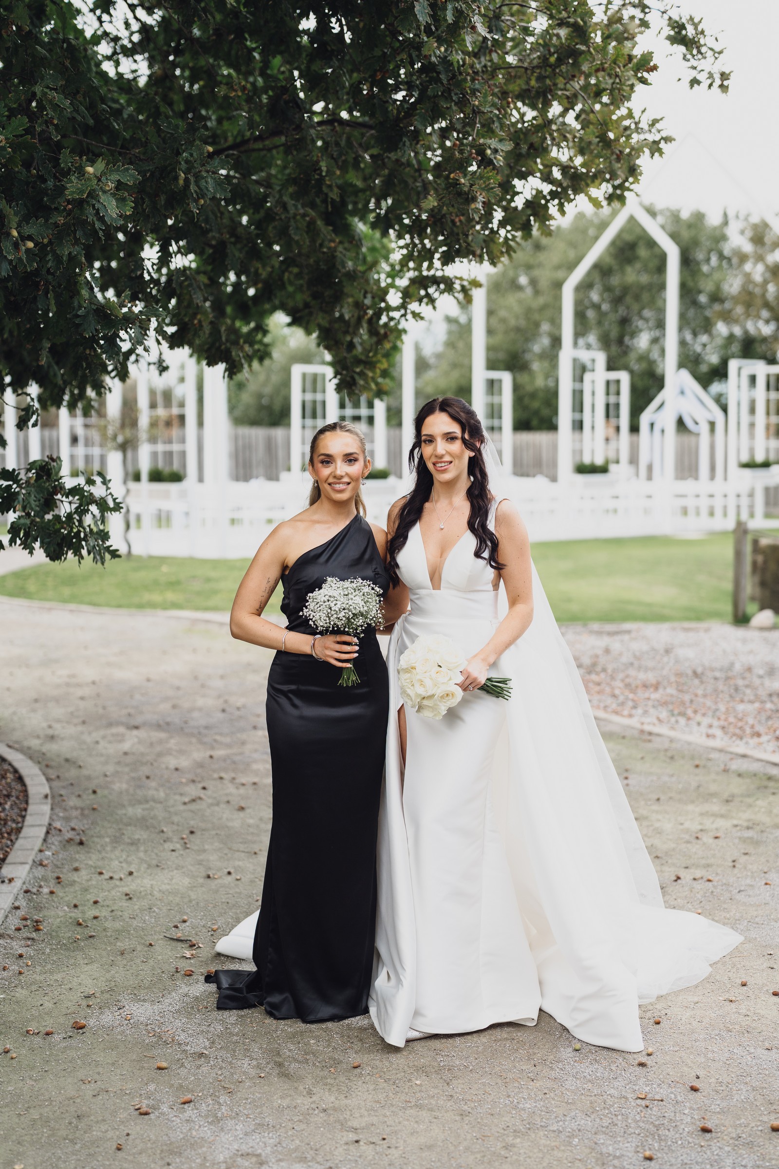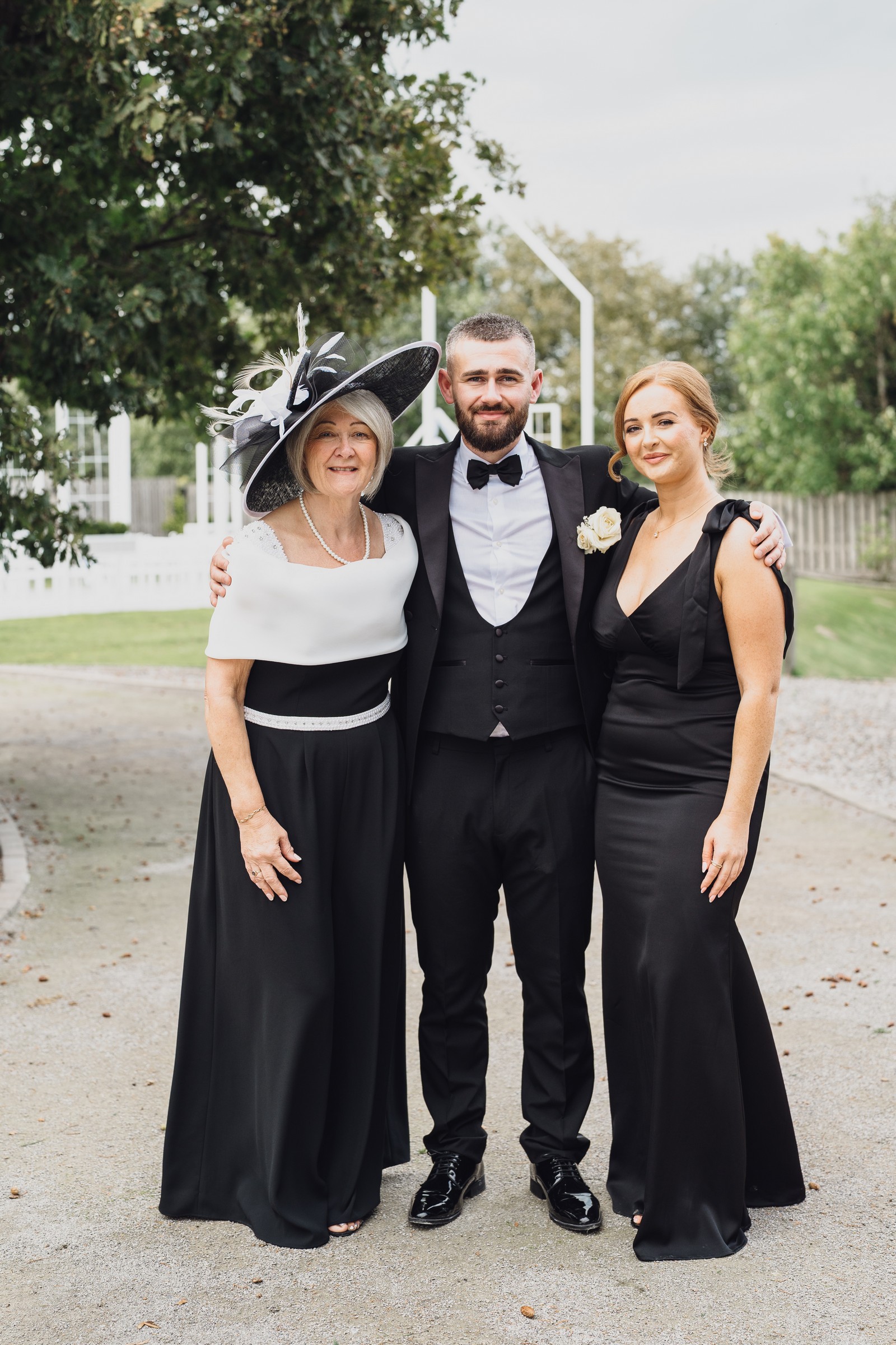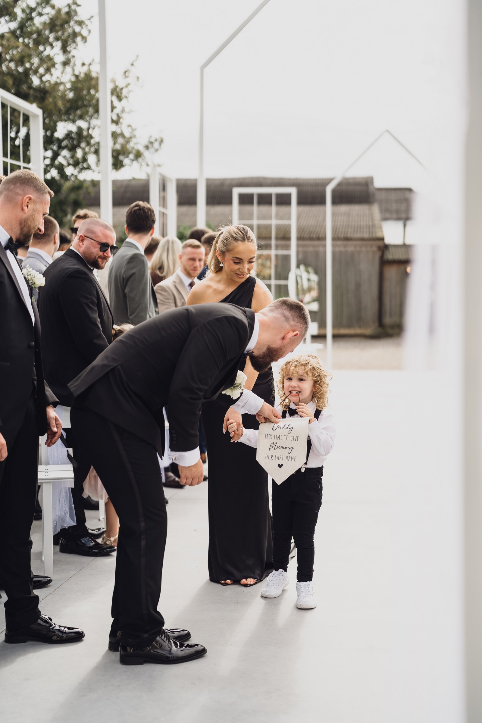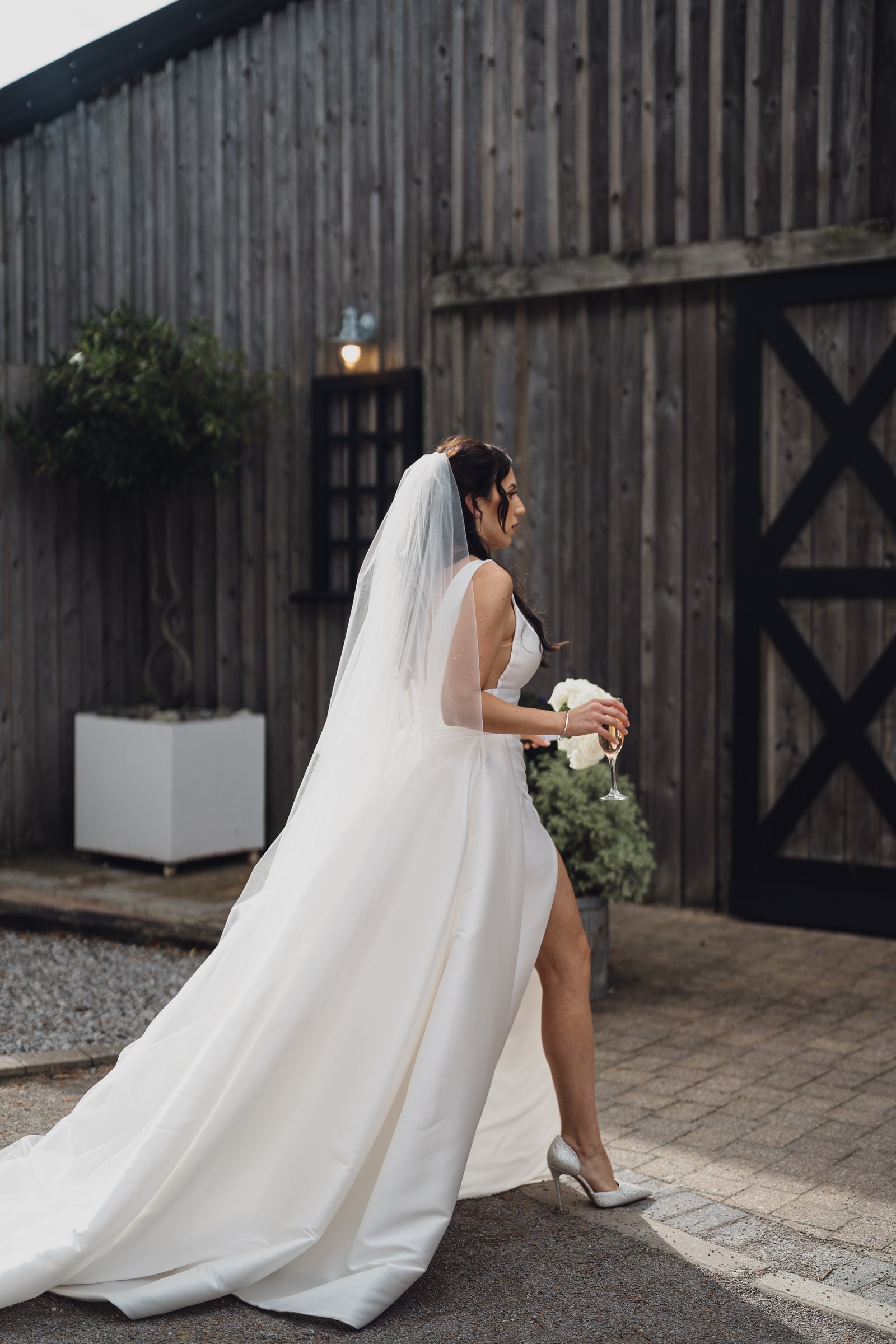 The black-tie theme added a luxurious polish to the day, pairing beautifully with Alcumlow Barn’s natural textures and countryside setting. Think sharp suits, sweeping gowns, crisp whites, and classic florals – all brought to life against weathered wood, stone paths, and open skies.