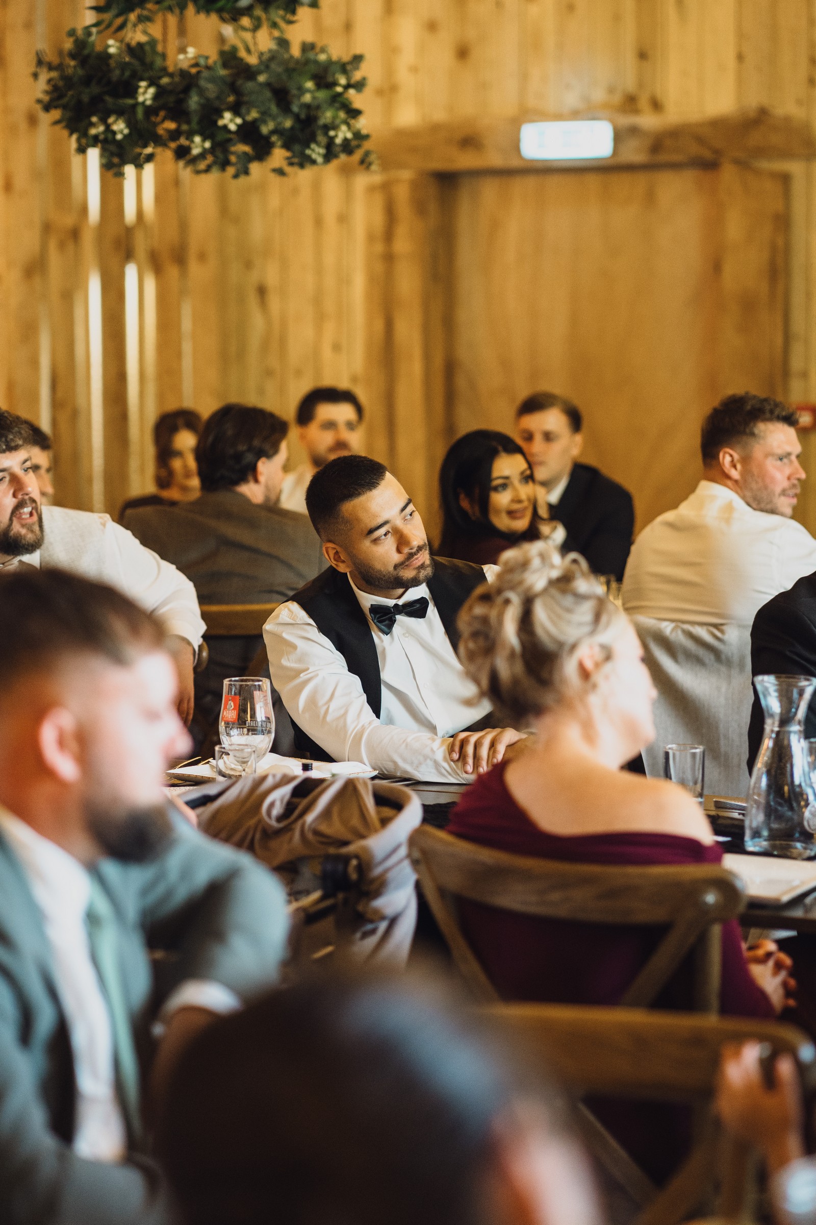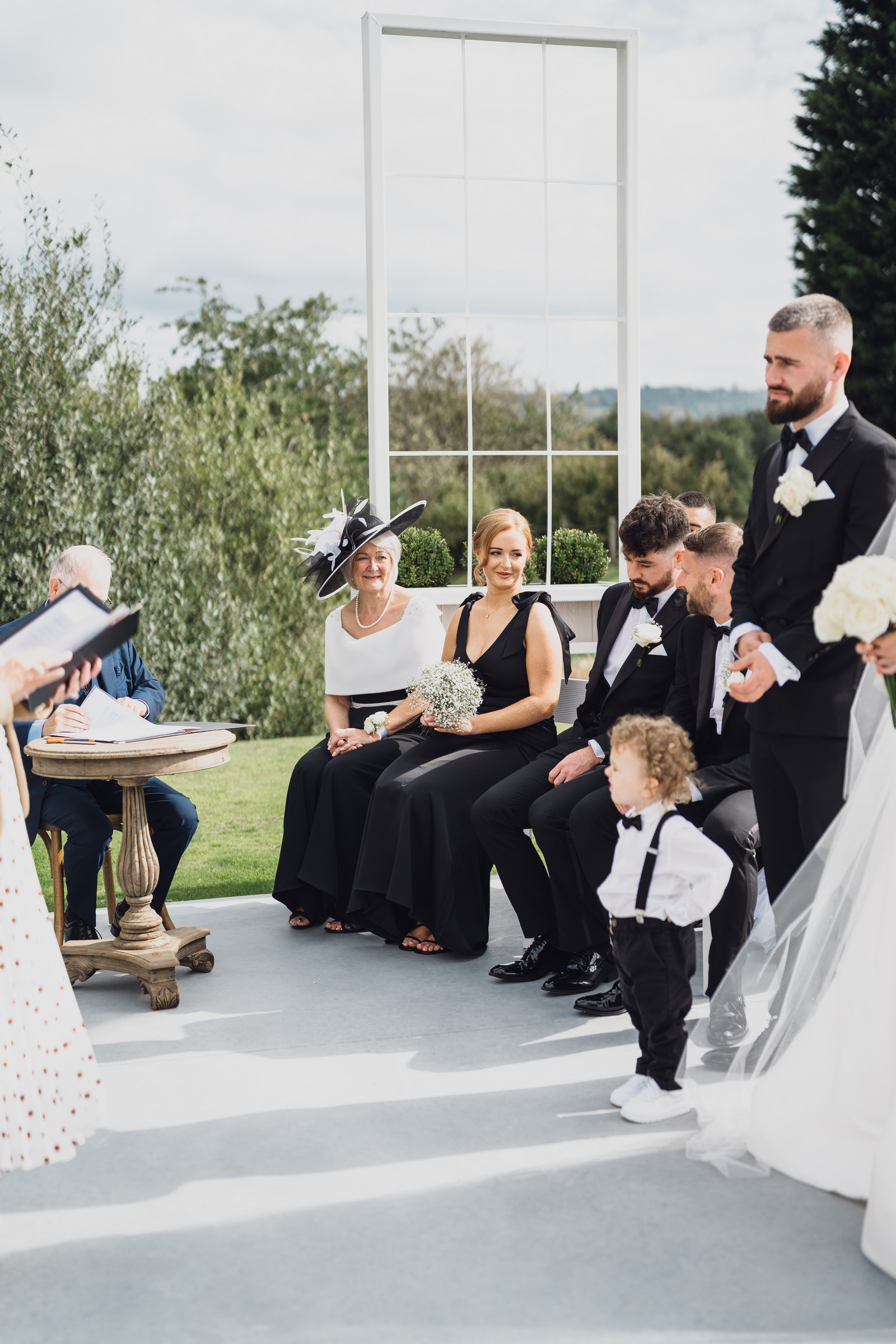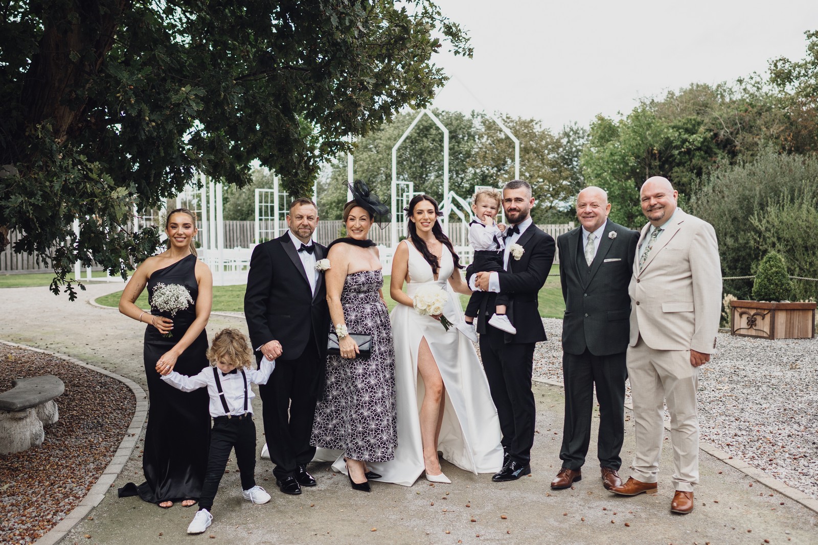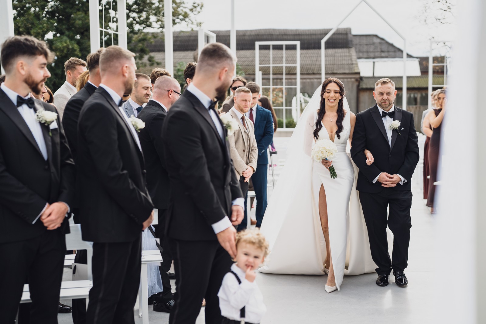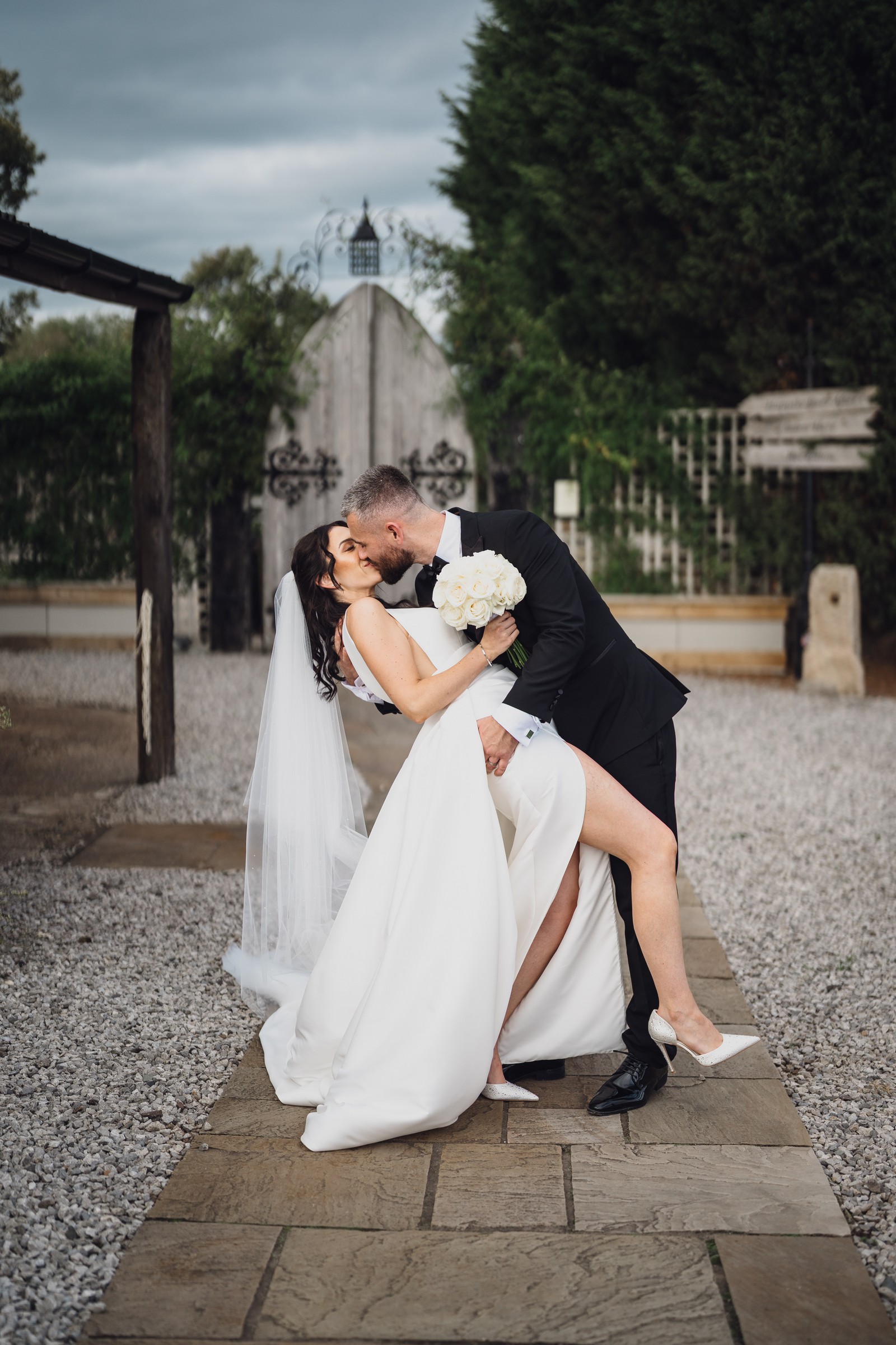 The black-tie theme added a luxurious polish to the day, pairing beautifully with Alcumlow Barn’s natural textures and countryside setting. Think sharp suits, sweeping gowns, crisp whites, and classic florals – all brought to life against weathered wood, stone paths, and open skies.