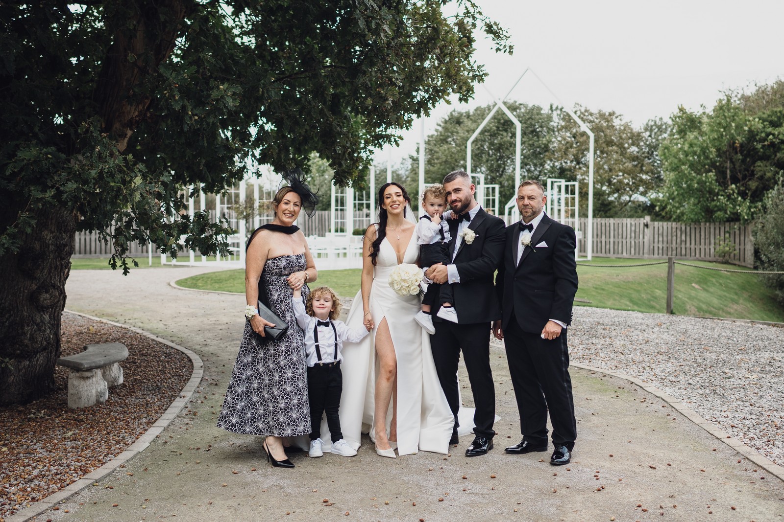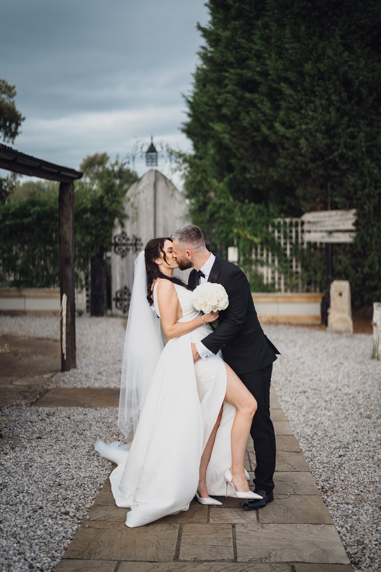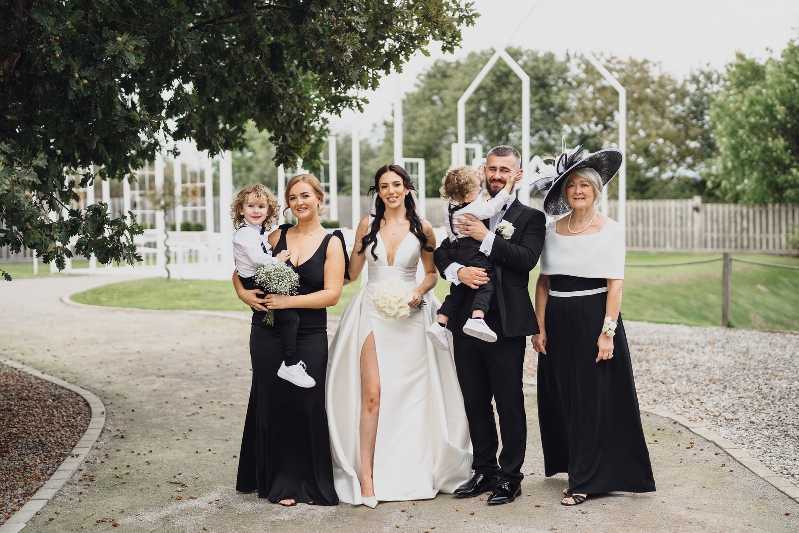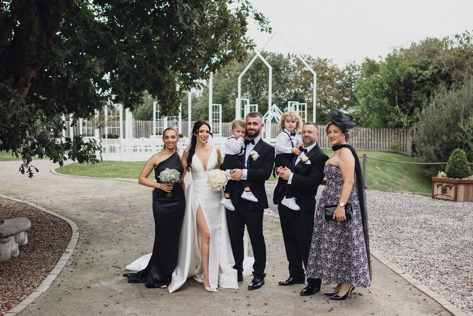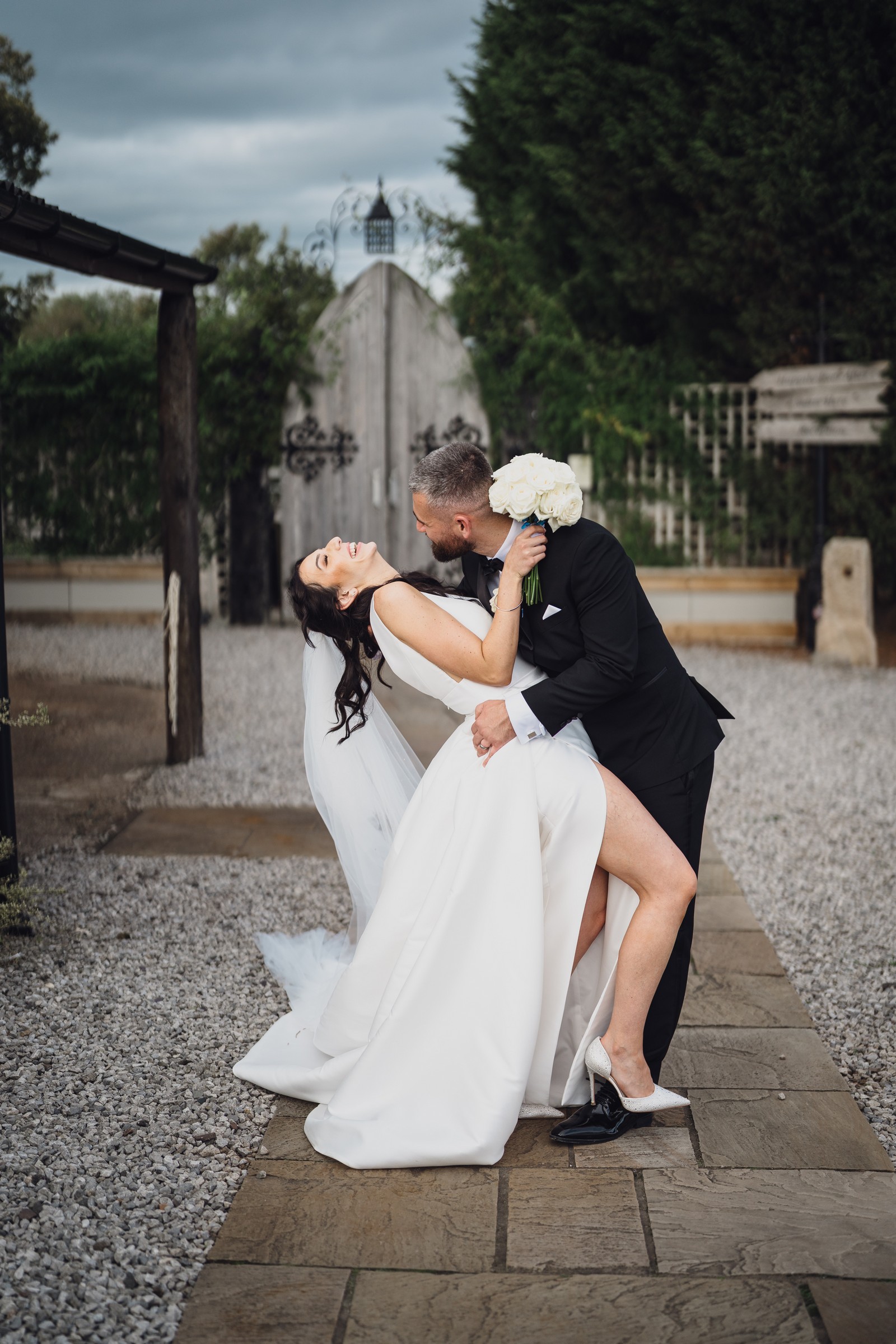 The black-tie theme added a luxurious polish to the day, pairing beautifully with Alcumlow Barn’s natural textures and countryside setting. Think sharp suits, sweeping gowns, crisp whites, and classic florals – all brought to life against weathered wood, stone paths, and open skies.