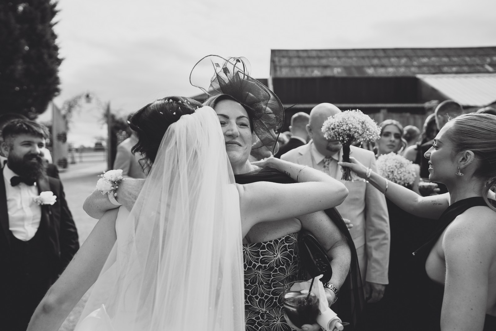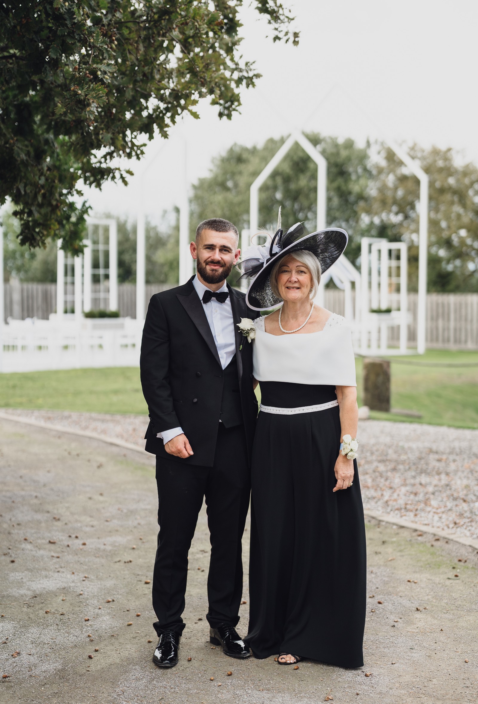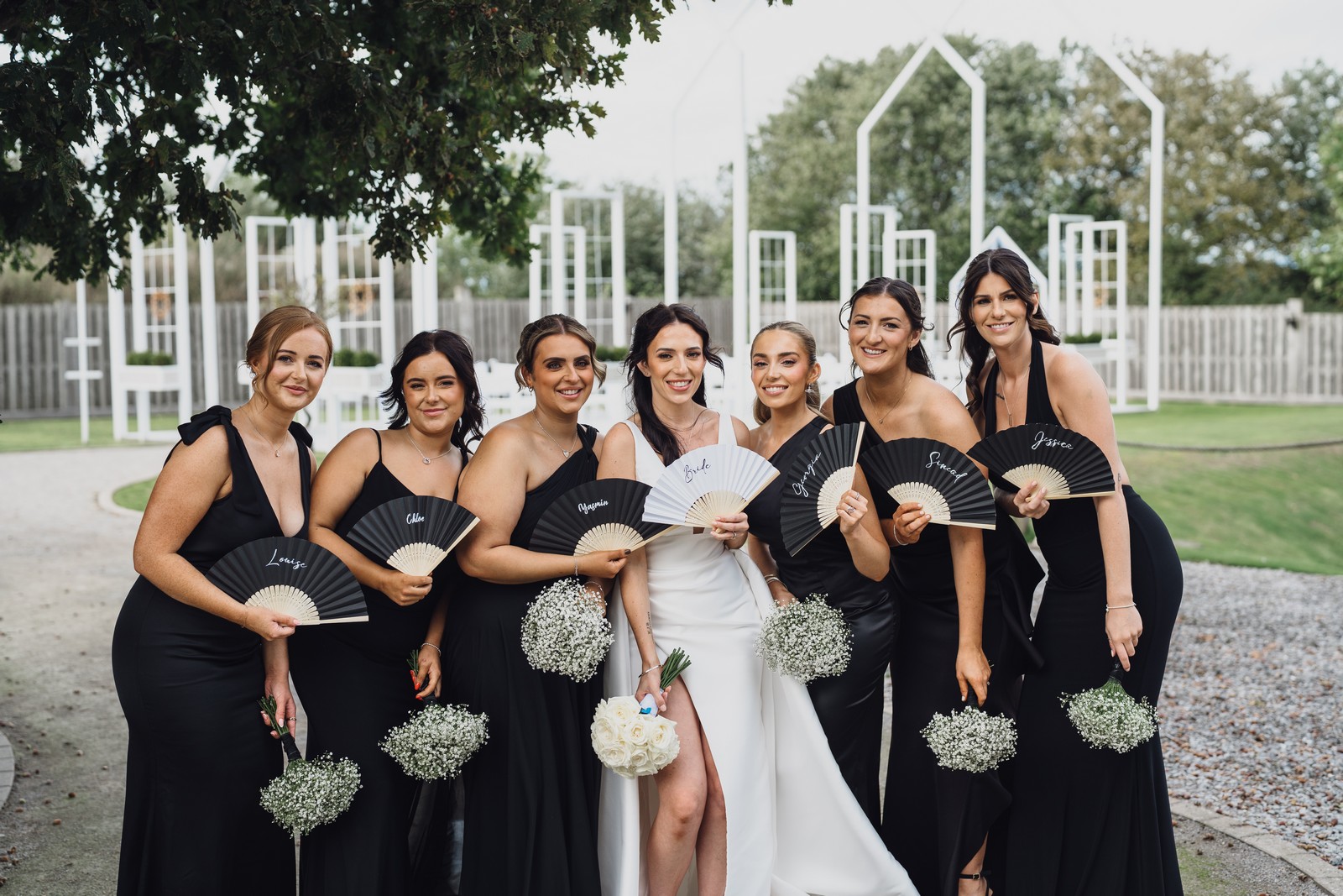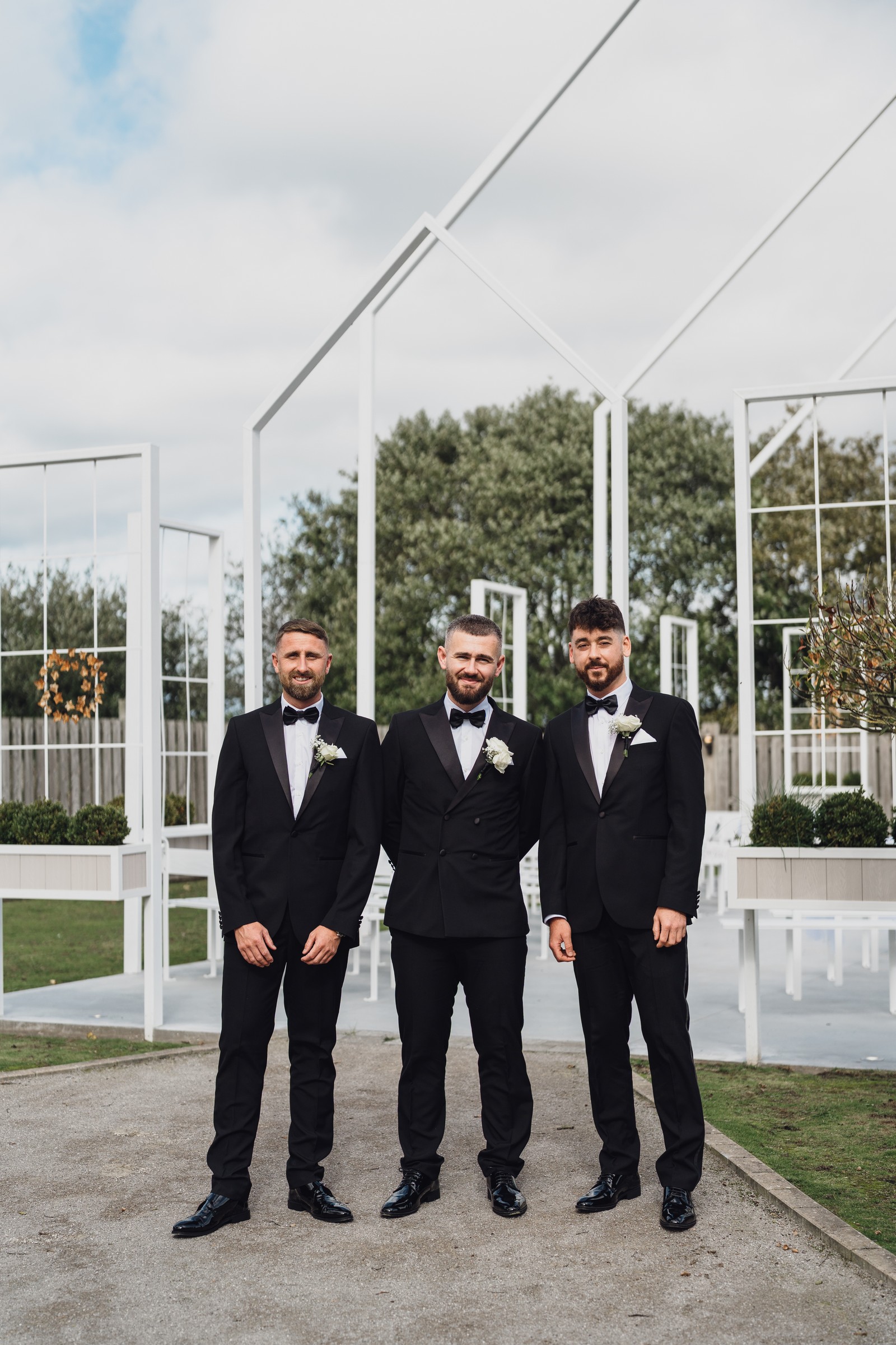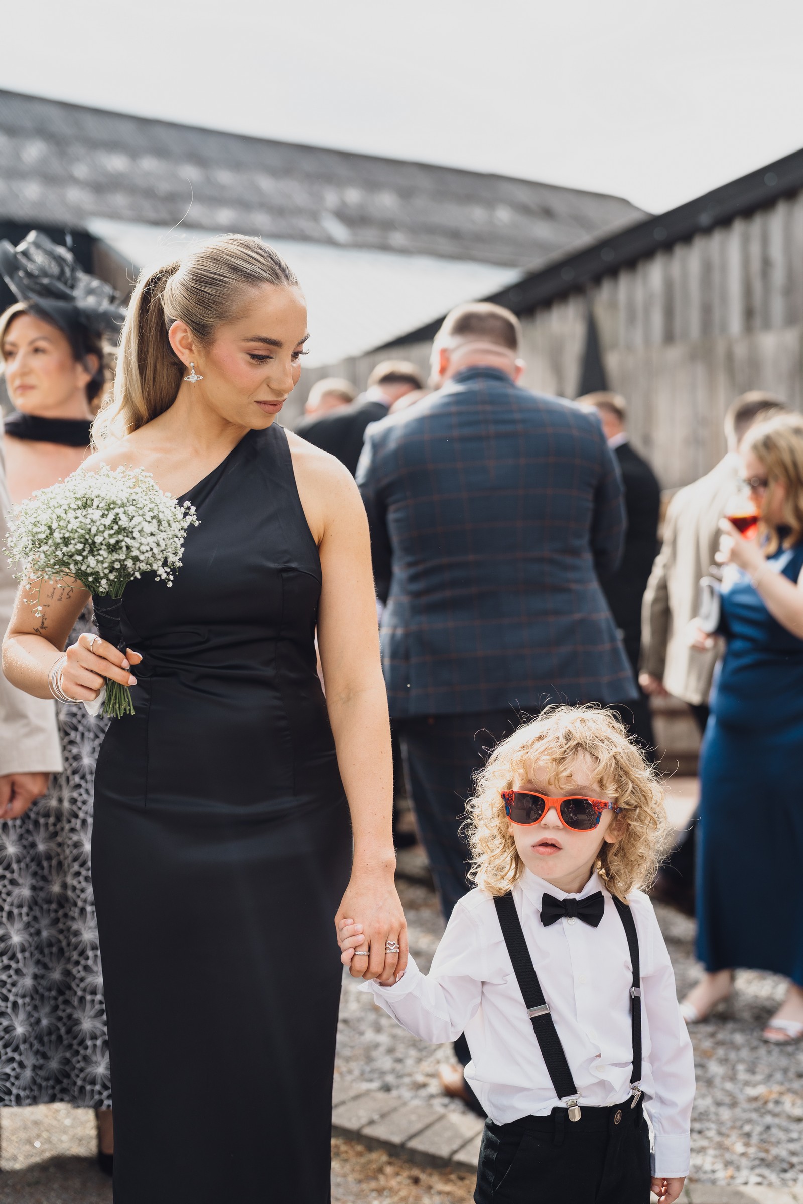 The black-tie theme added a luxurious polish to the day, pairing beautifully with Alcumlow Barn’s natural textures and countryside setting. Think sharp suits, sweeping gowns, crisp whites, and classic florals – all brought to life against weathered wood, stone paths, and open skies.