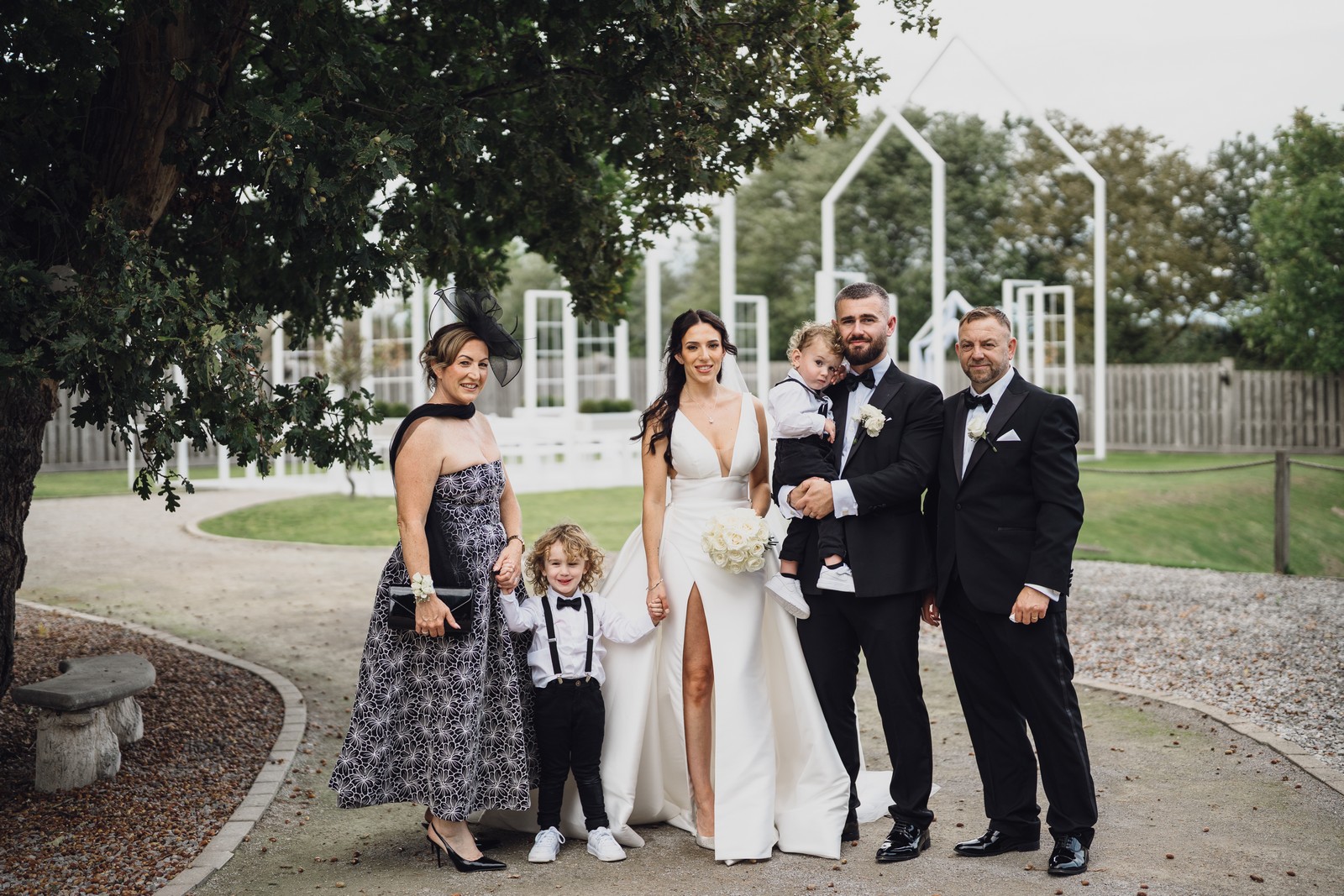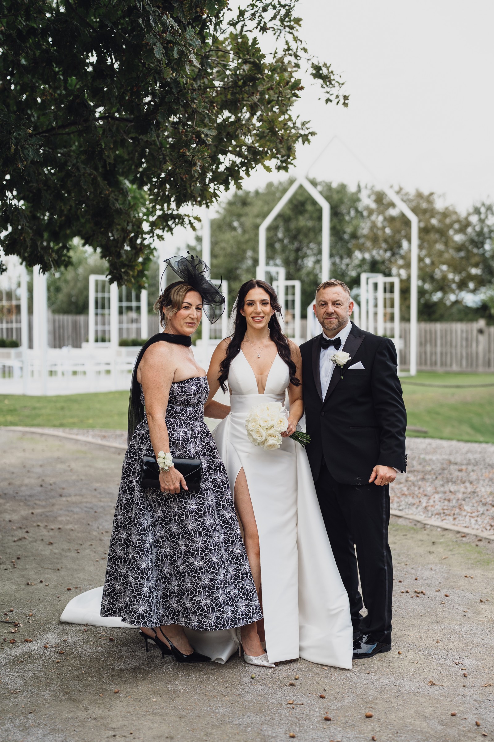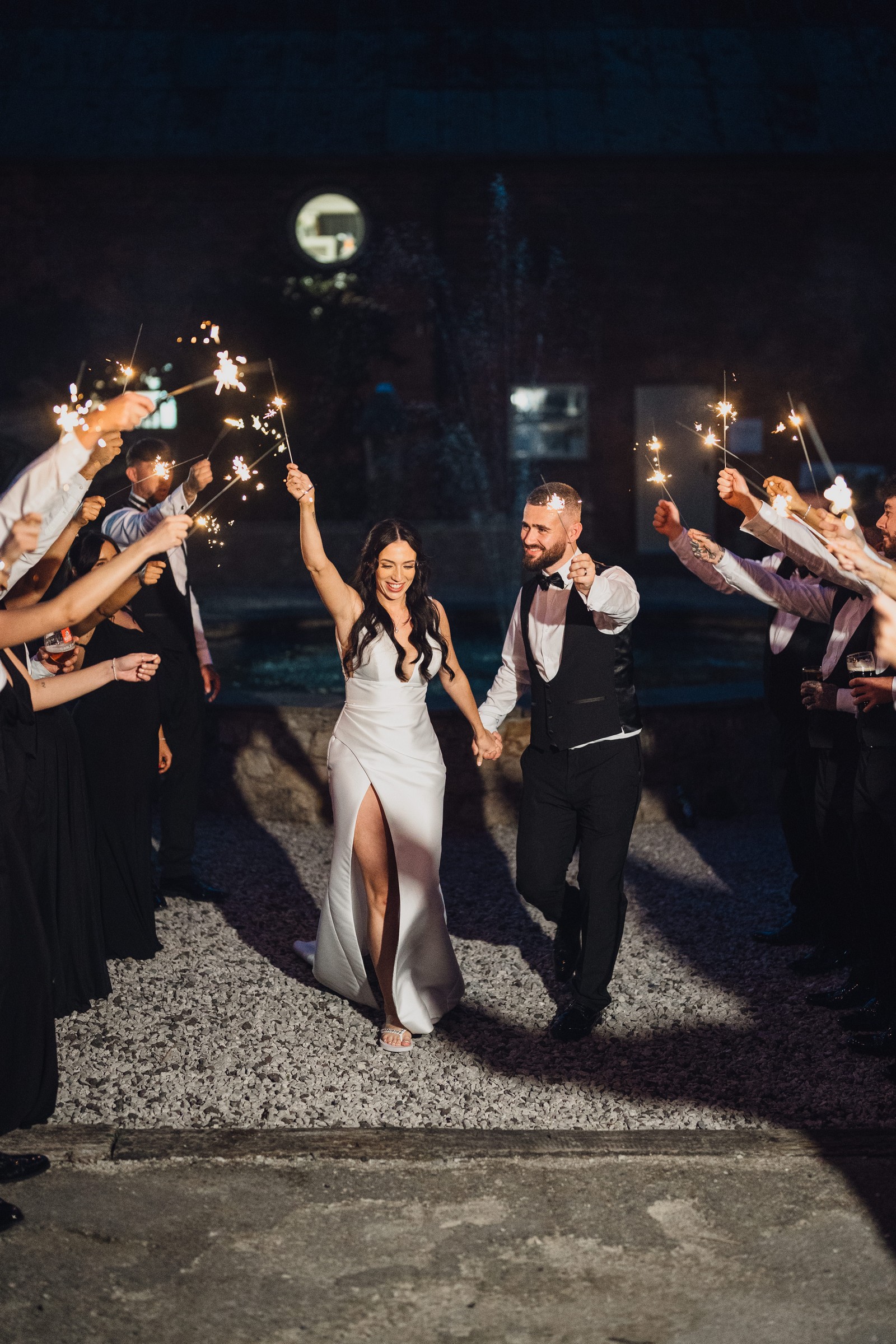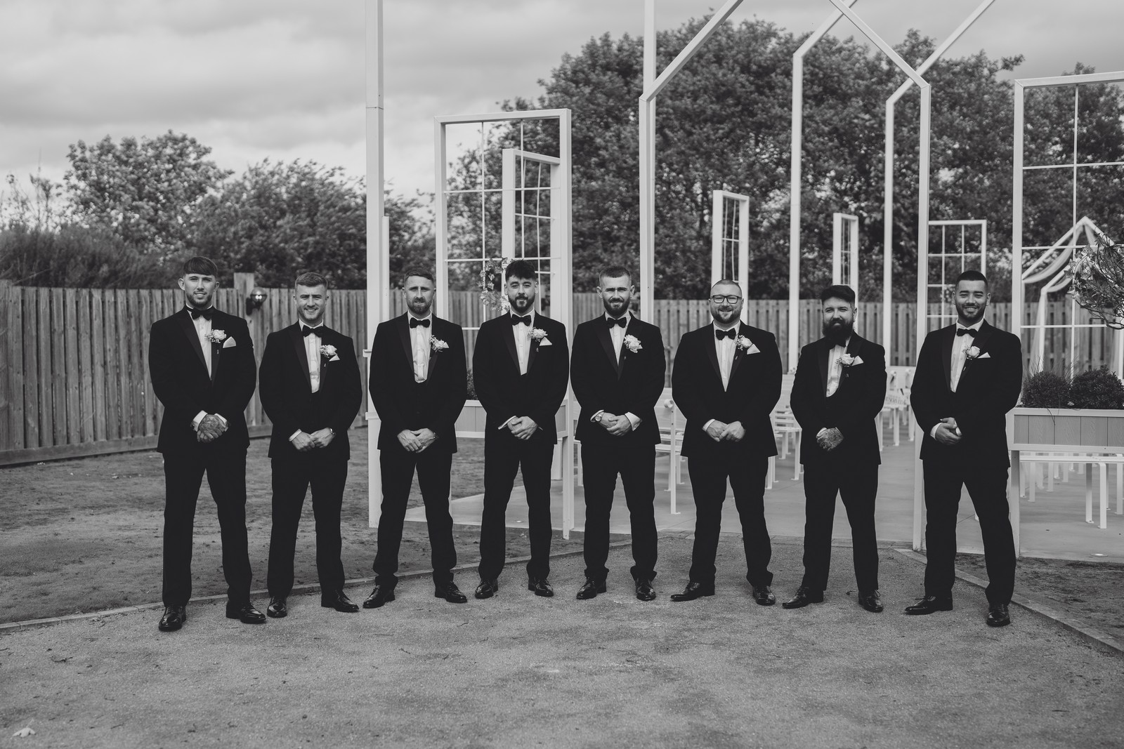 The black-tie theme added a luxurious polish to the day, pairing beautifully with Alcumlow Barn’s natural textures and countryside setting. Think sharp suits, sweeping gowns, crisp whites, and classic florals – all brought to life against weathered wood, stone paths, and open skies.