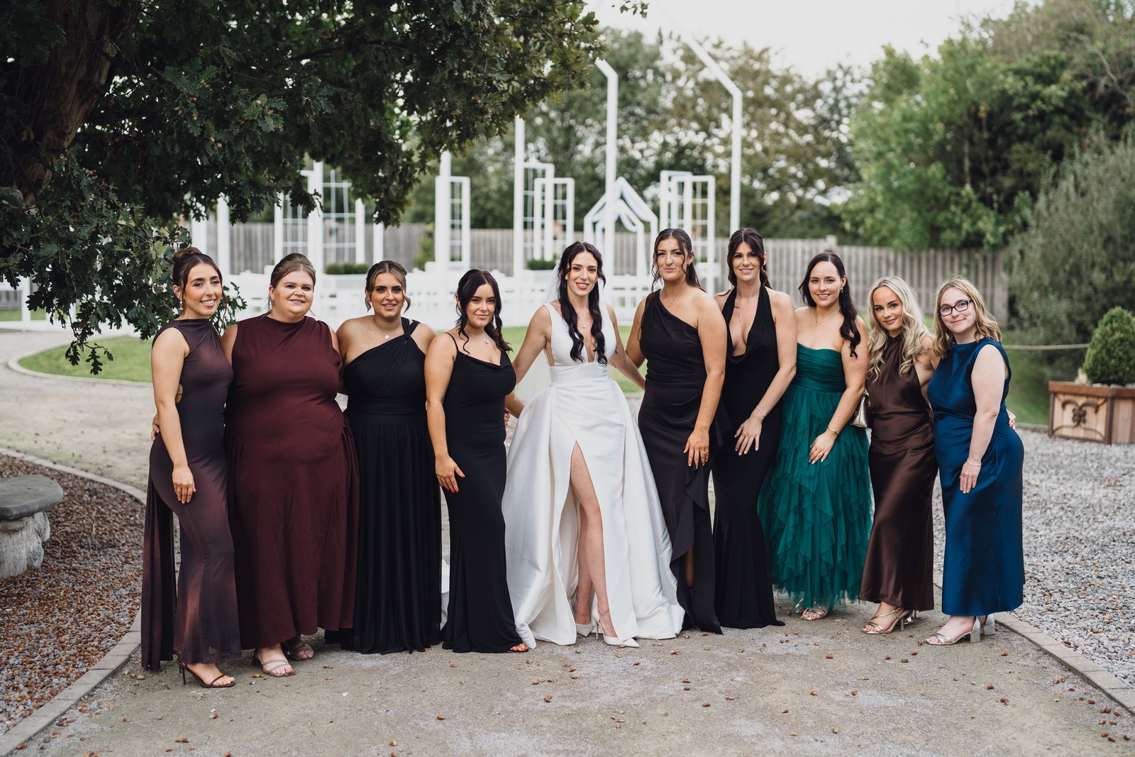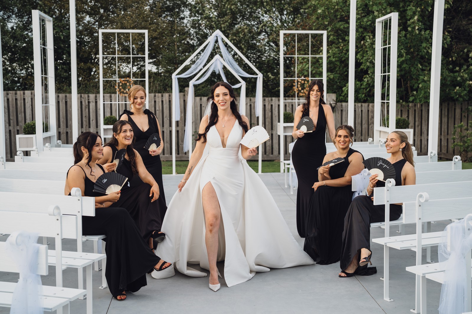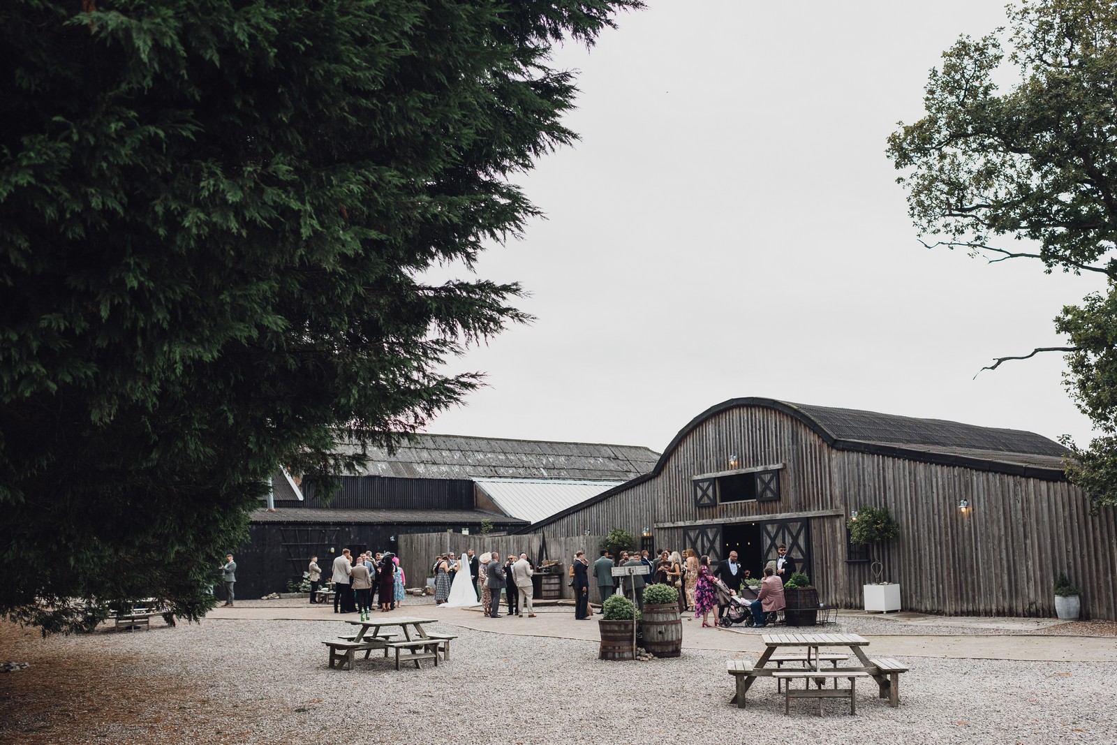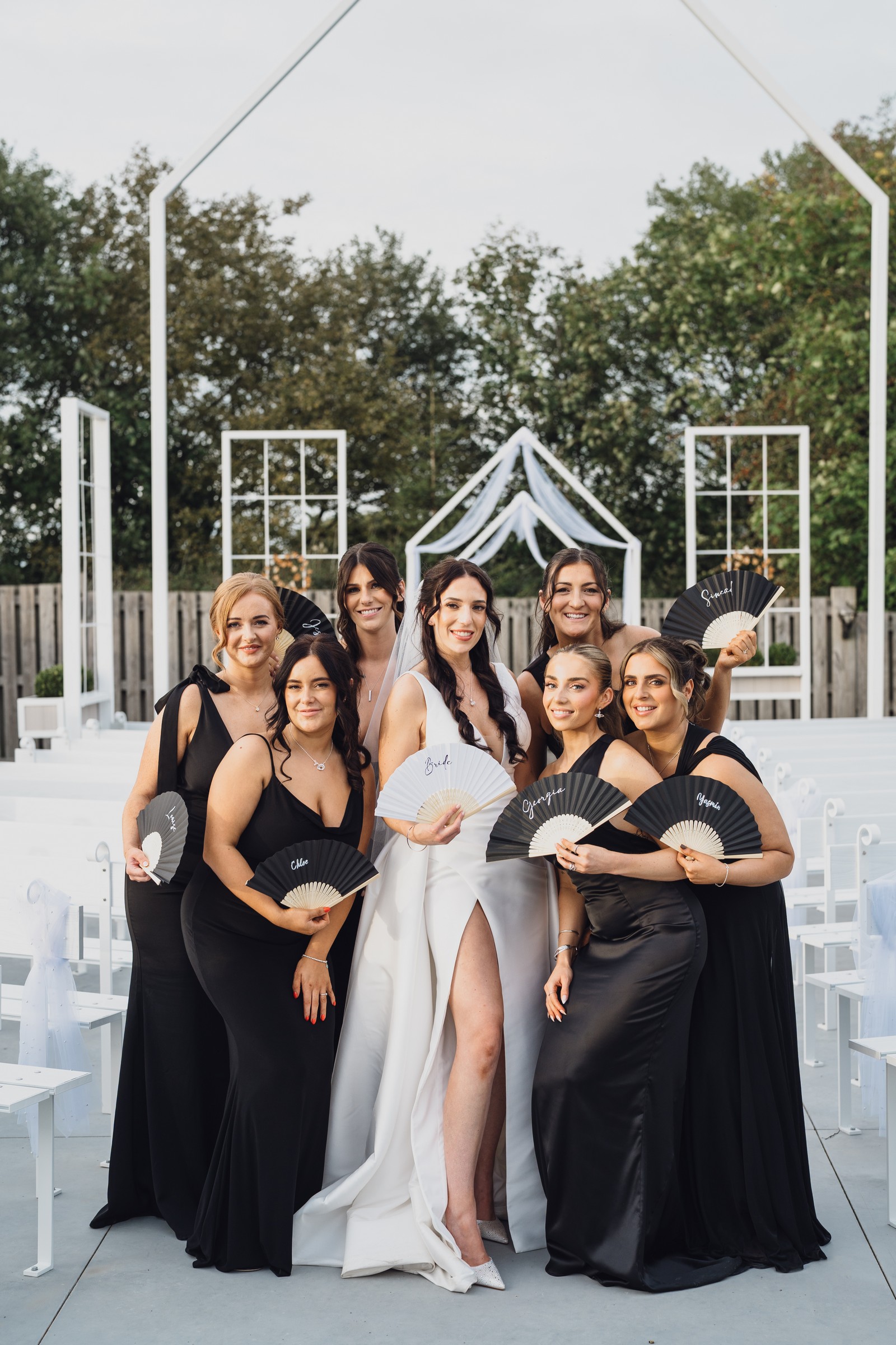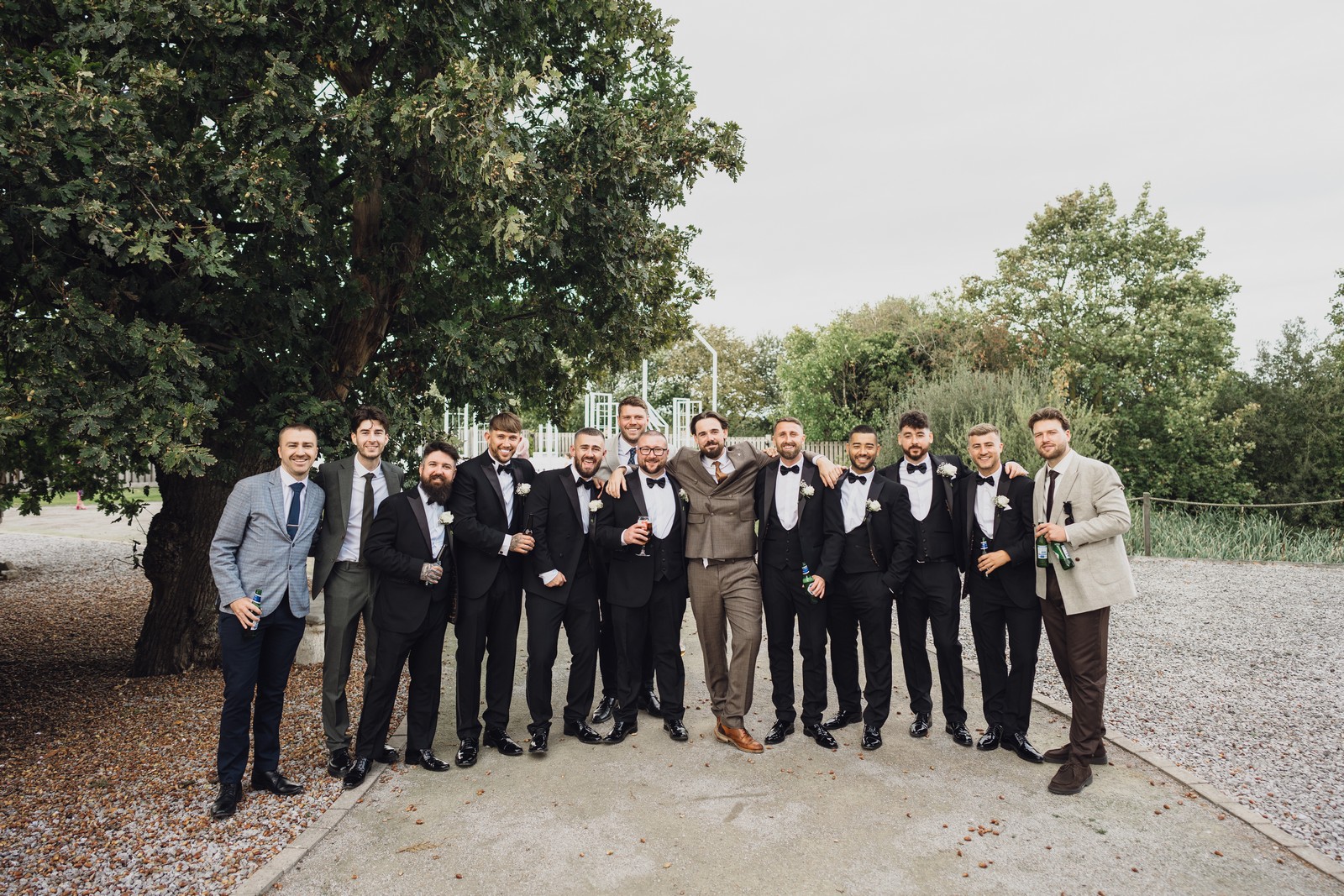 The black-tie theme added a luxurious polish to the day, pairing beautifully with Alcumlow Barn’s natural textures and countryside setting. Think sharp suits, sweeping gowns, crisp whites, and classic florals – all brought to life against weathered wood, stone paths, and open skies.