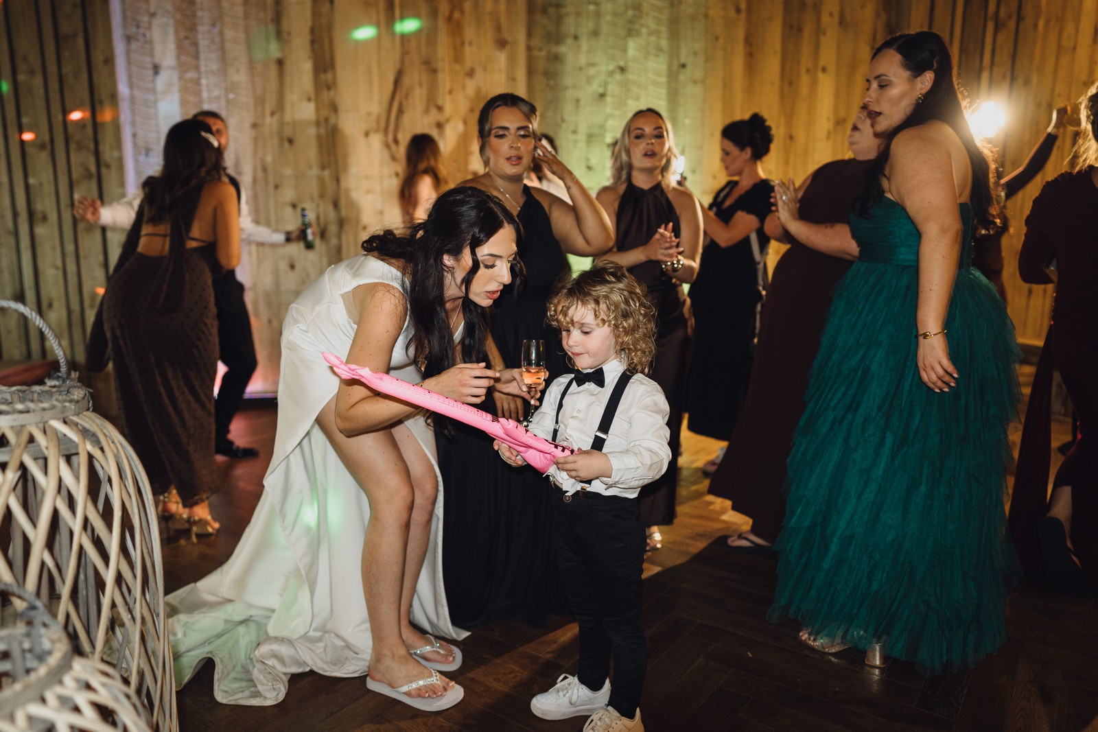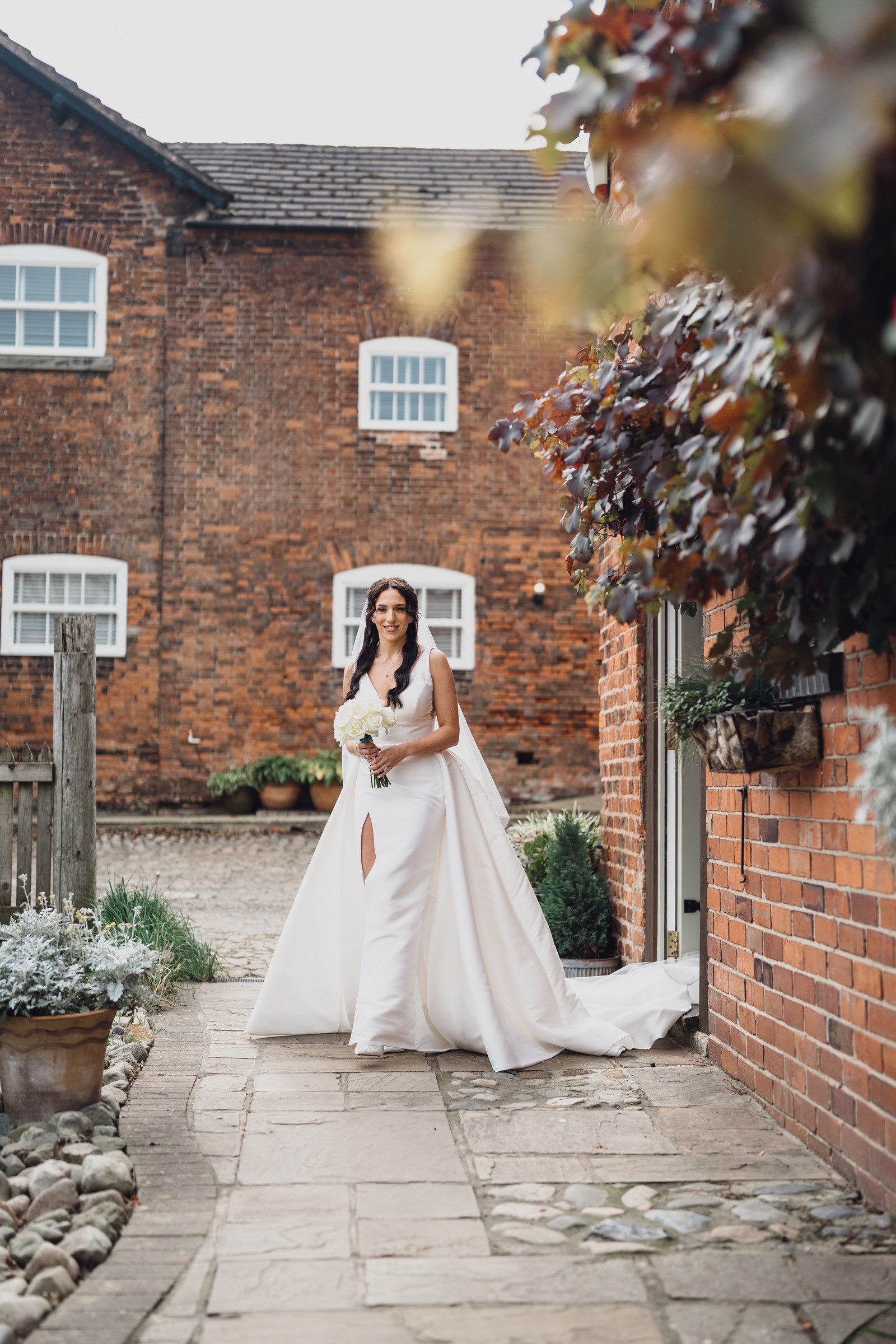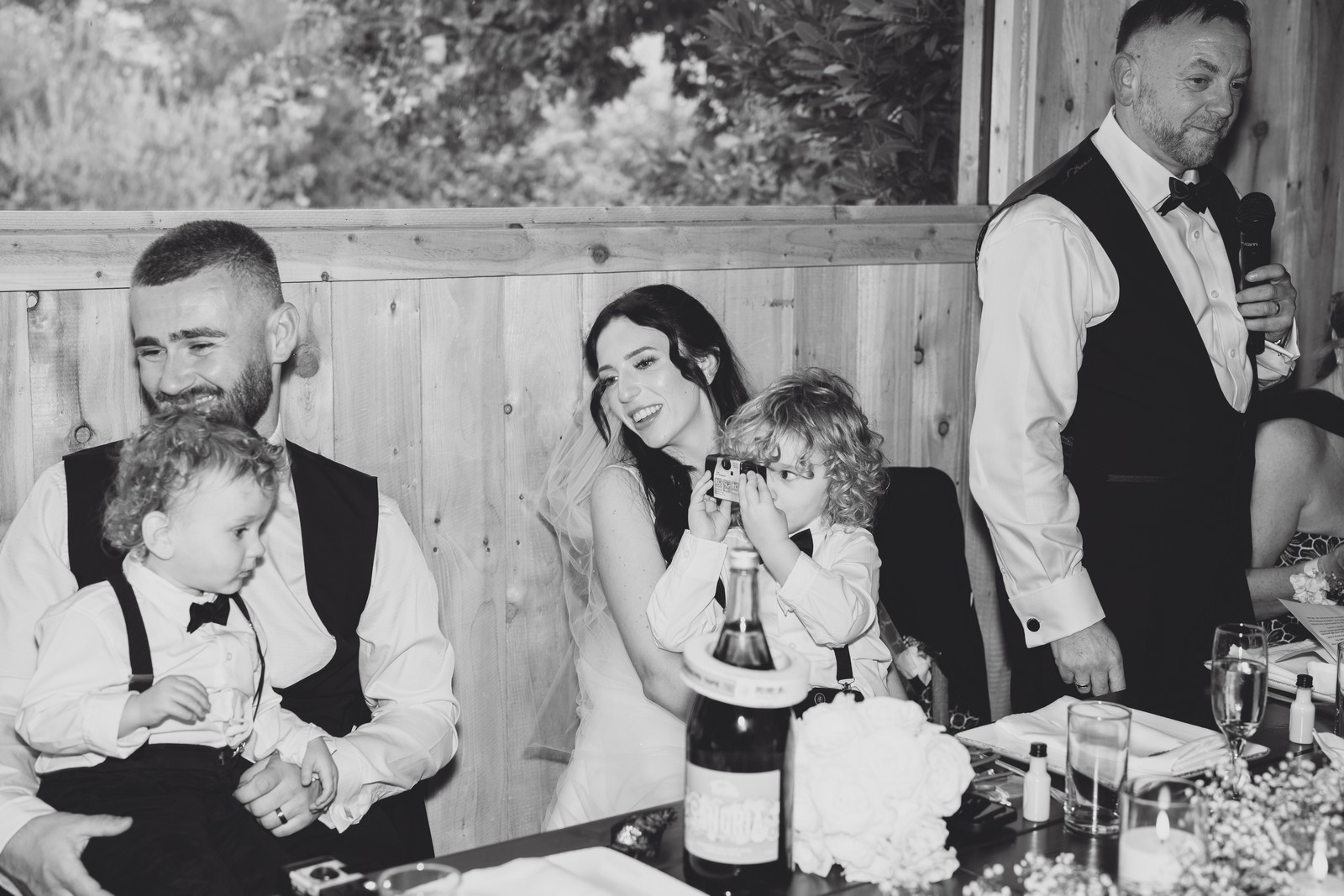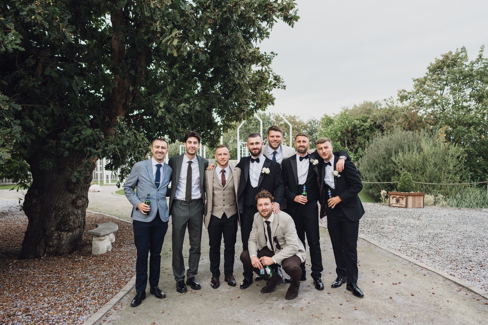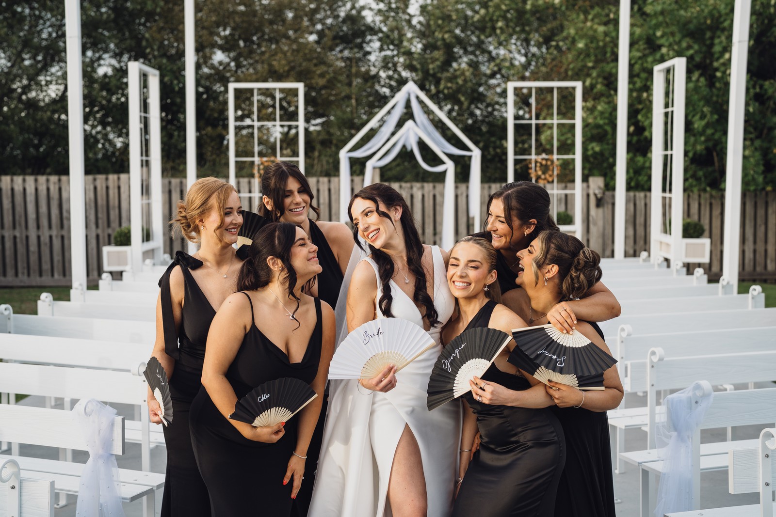 The black-tie theme added a luxurious polish to the day, pairing beautifully with Alcumlow Barn’s natural textures and countryside setting. Think sharp suits, sweeping gowns, crisp whites, and classic florals – all brought to life against weathered wood, stone paths, and open skies.