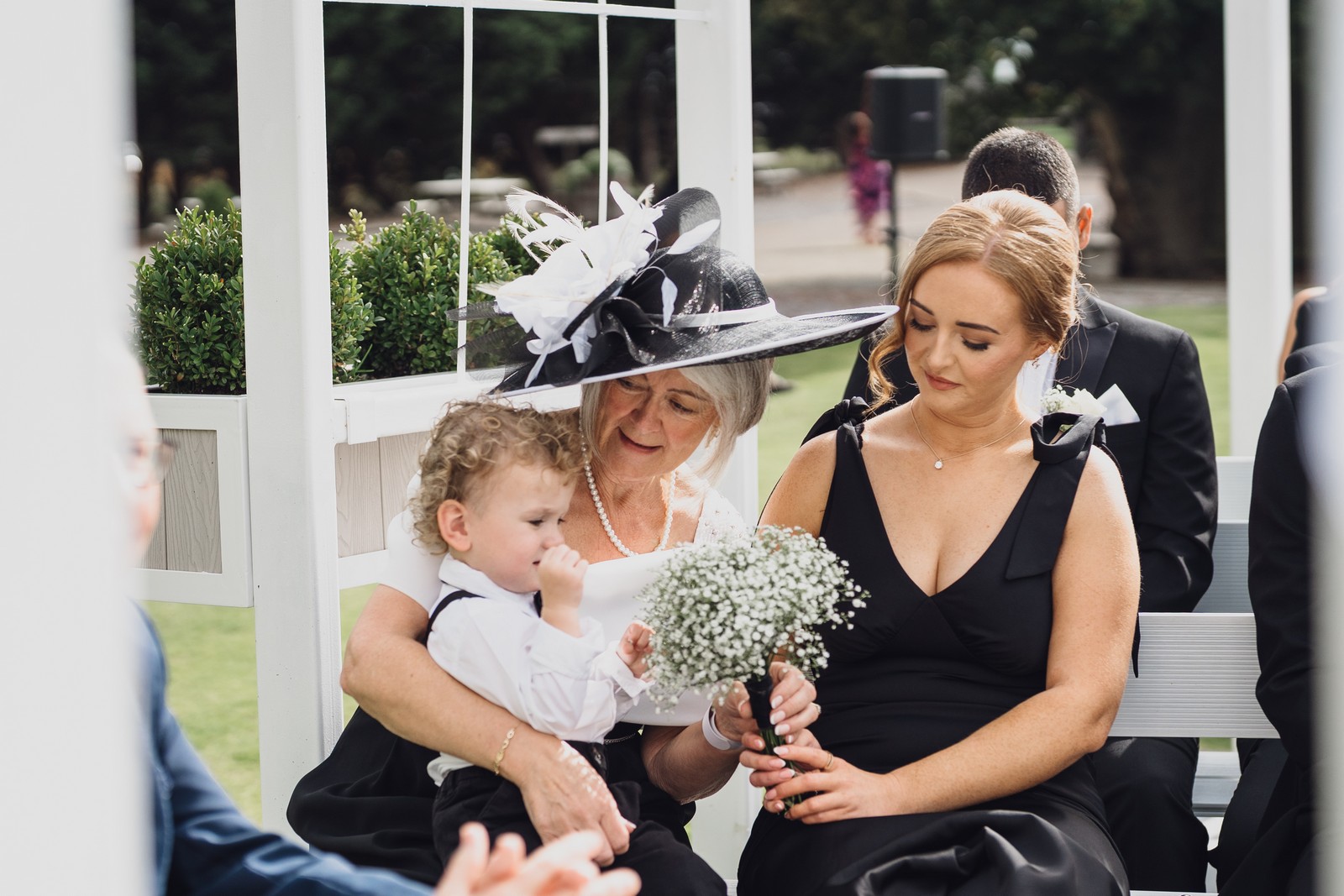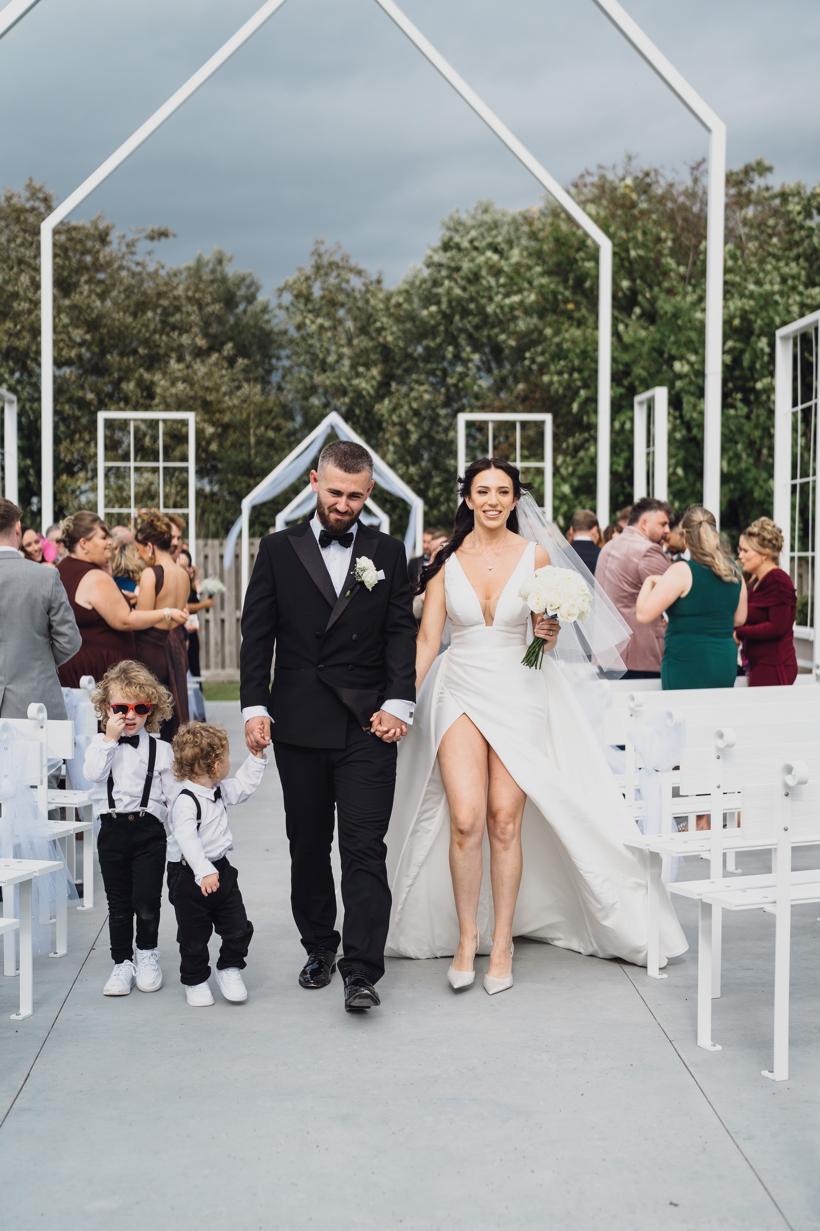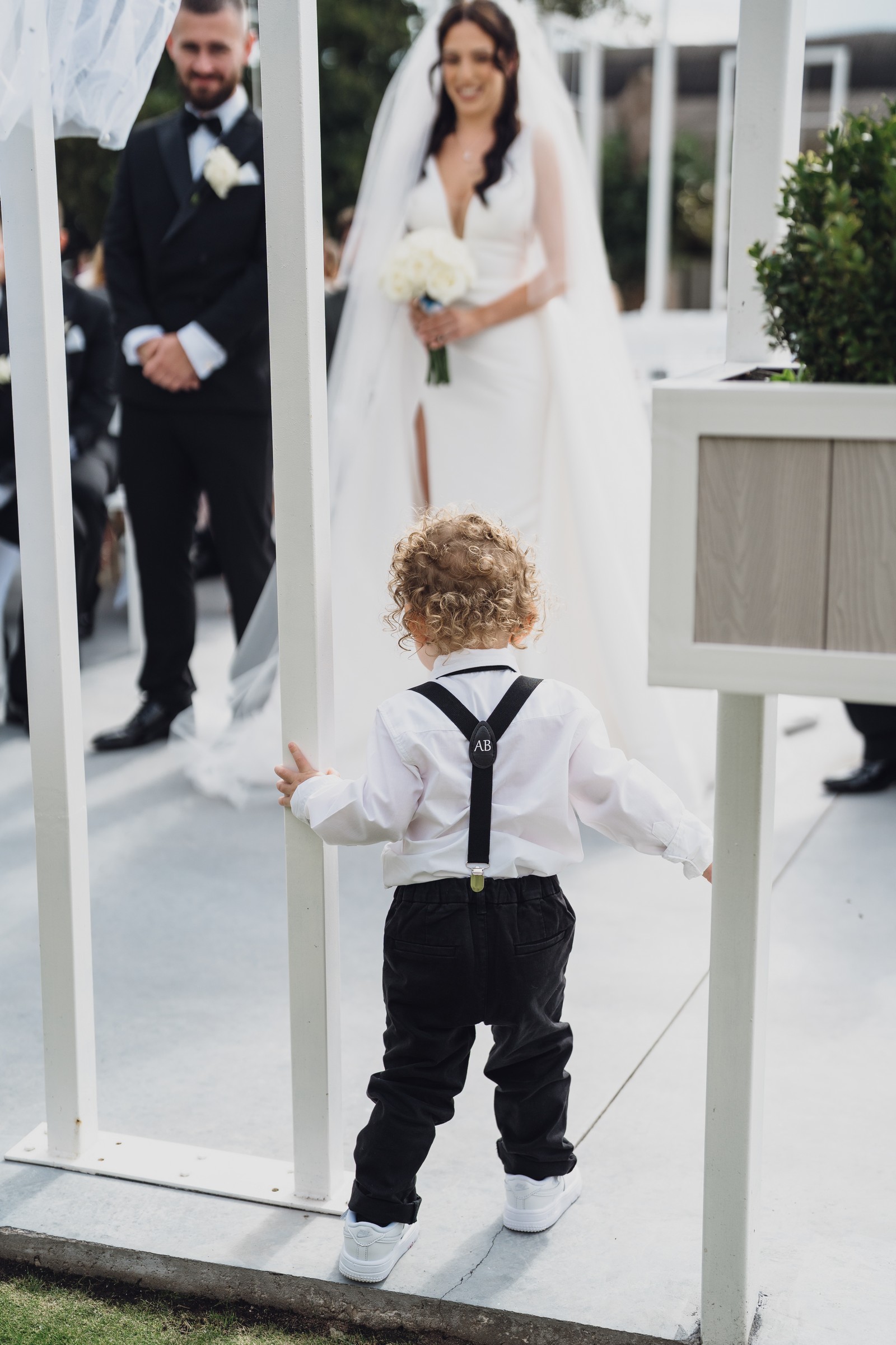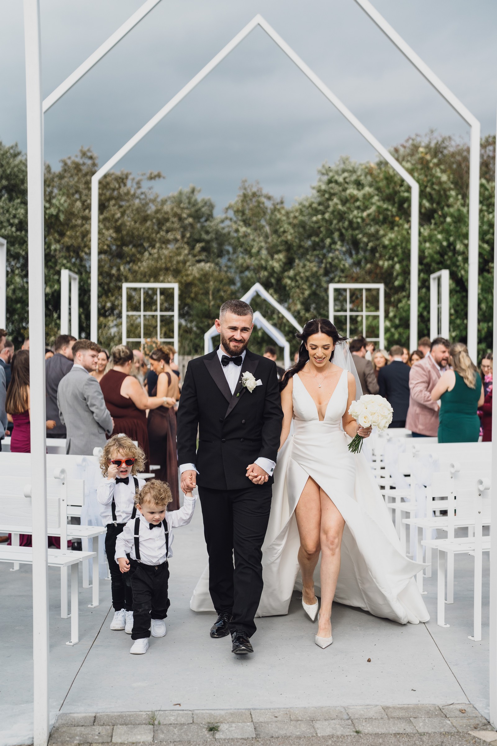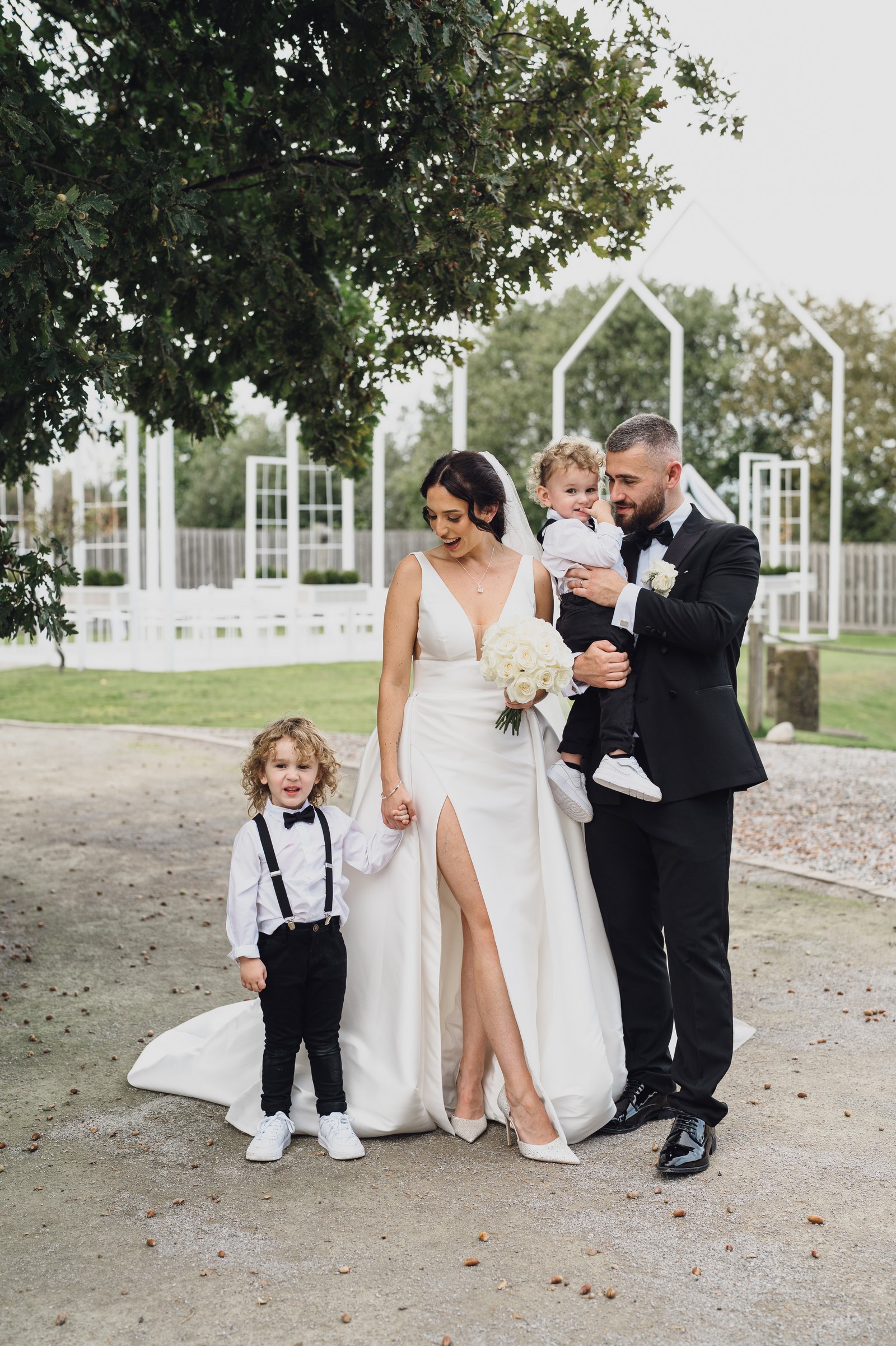 As the newlyweds stepped out hand-in-hand, guests lined the pathway, cheering and filling the air with fluttering petals. The images show pure joy – Chelsea laughing as confetti swirls around her, Elliot smiling proudly, and their little one holding their hands, taking in the excitement with adorable curiosity.