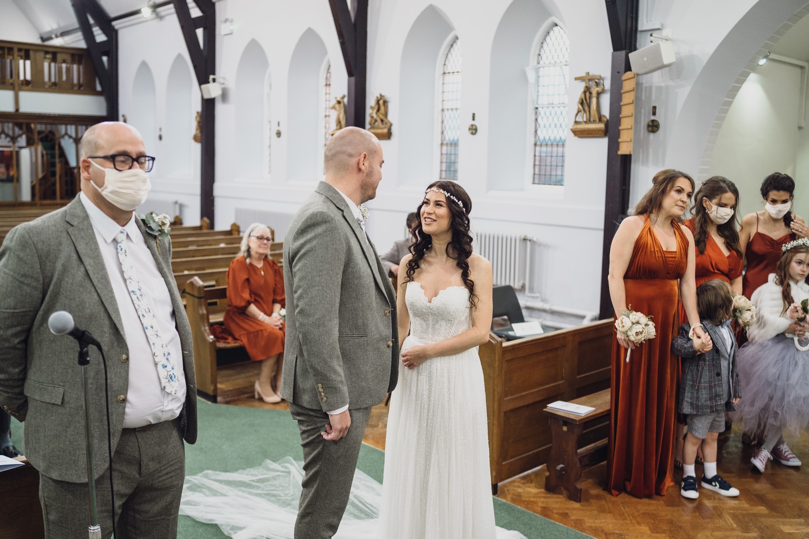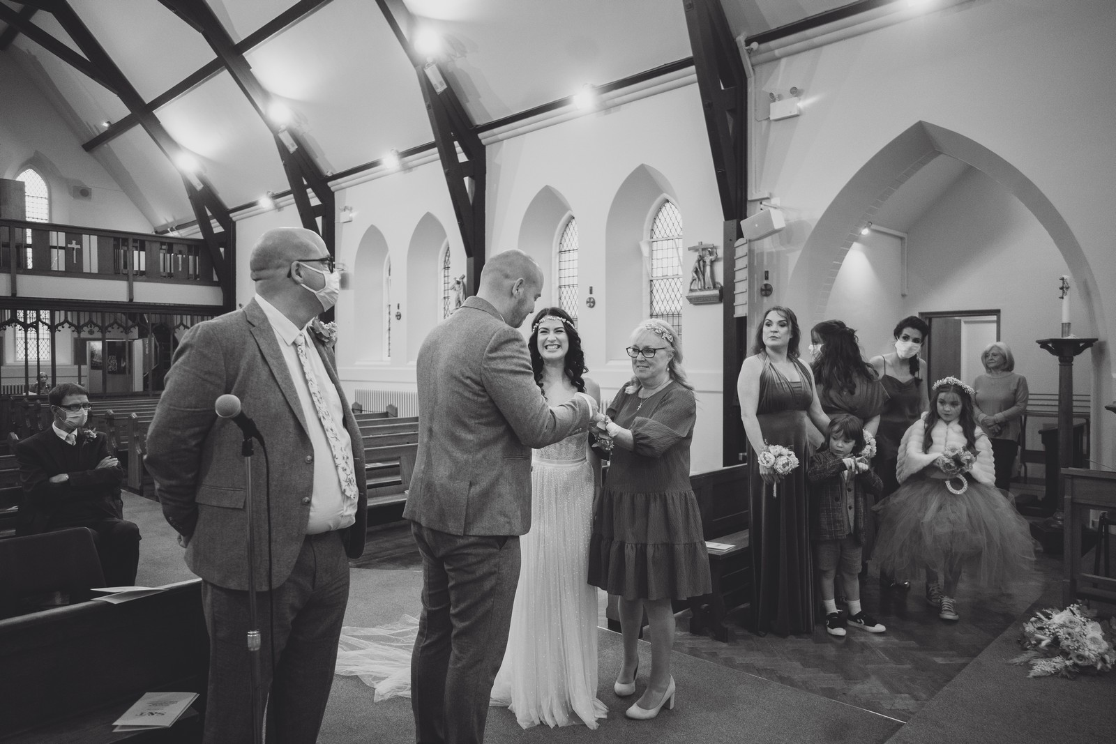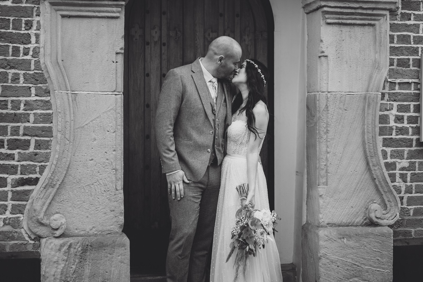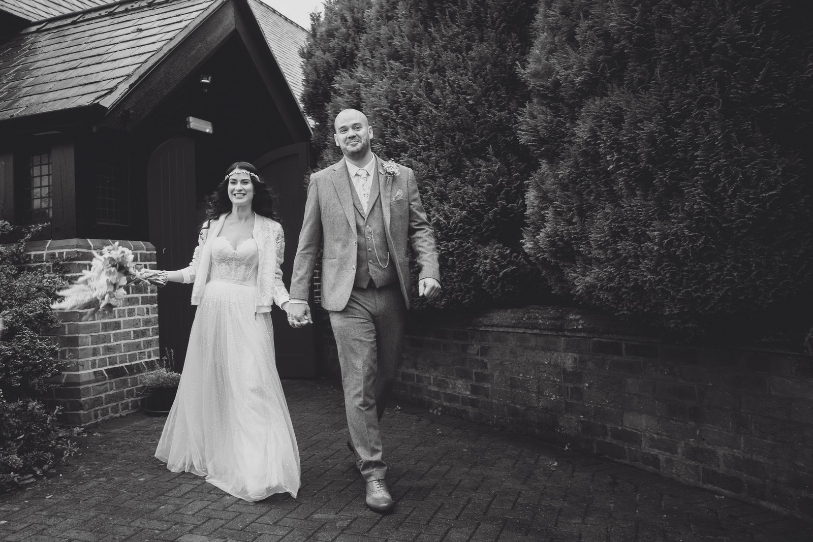 Cheshire wedding photographer covering the Northwest. I loved absolutely everything about Sophie and Tush’s wedding. It was small and intimate but so much fun! They didn’t let covid or the rain stop them and they married after 13 years together in their beautiful local church. Sophie had always longed for a Maid Marion wedding and she certainly didn’t disappoint! With the help of local suppliers Flossies and Lucinka Hodnett MUA she pulled off the look perfectly. The gorgeous bouquet filled with eucalyptus and pampas was the perfect accent to the beautiful make up and Sophie’s incredible dress. She wore flowers in her hair and donned an elegant but modern bridal jacket which I LOVED! Her veil was long and covered in tiny pearls which looked just stunning.