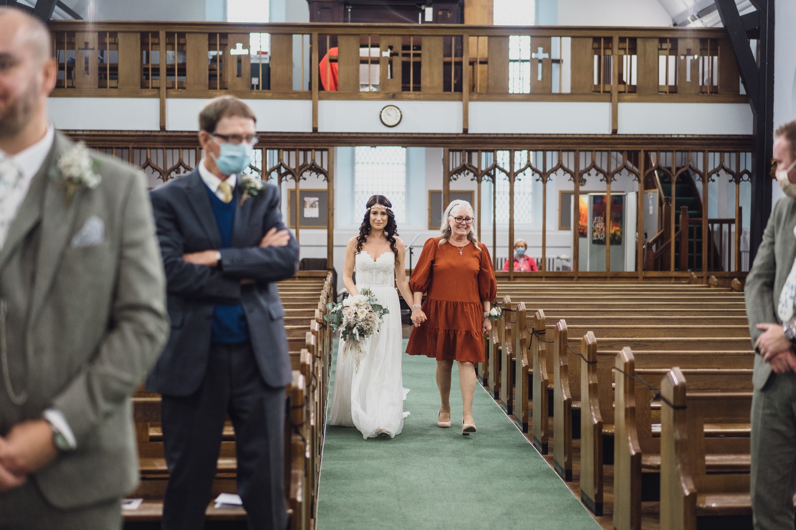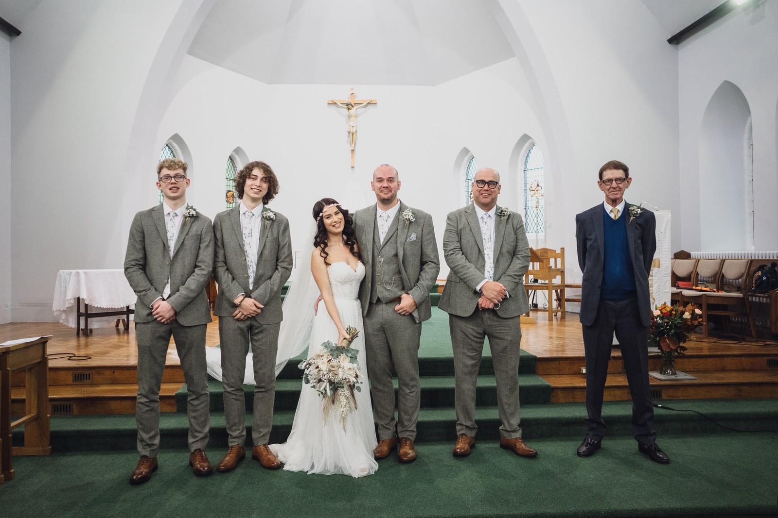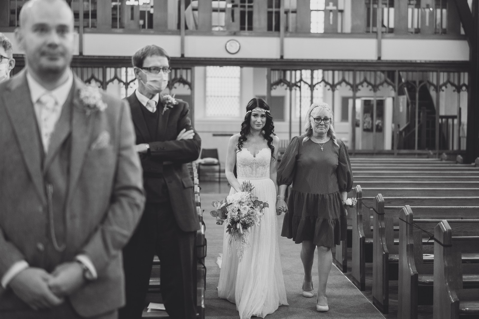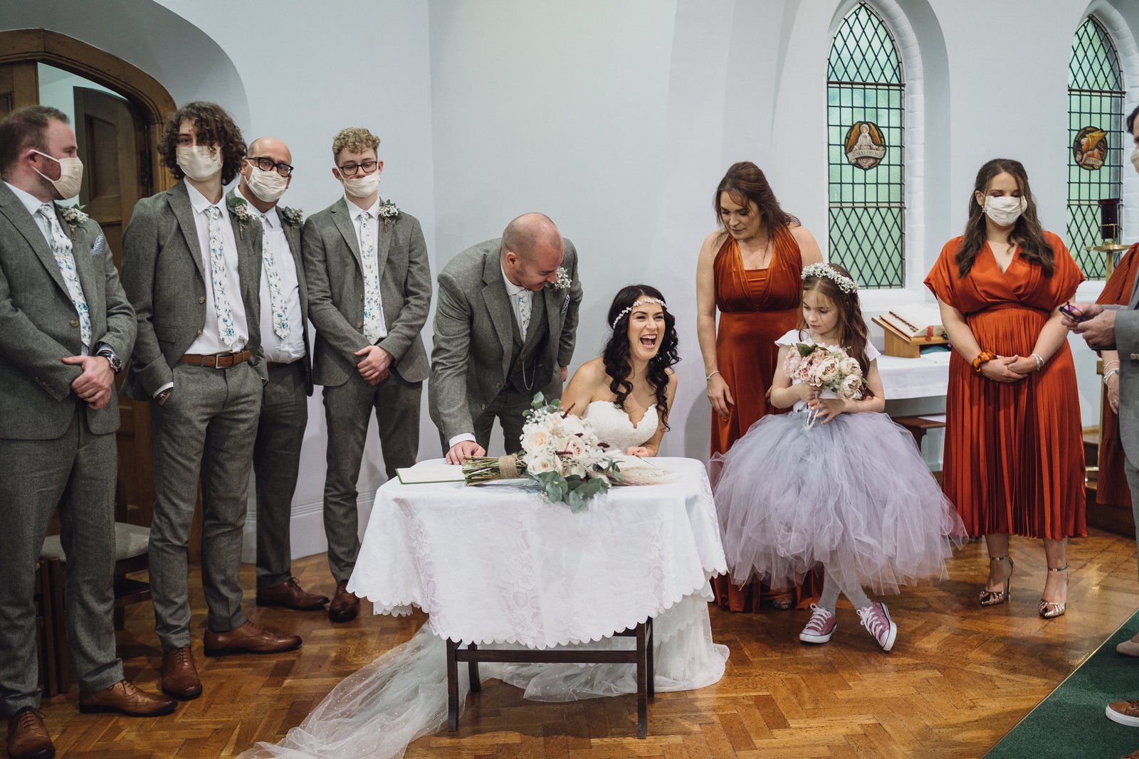 Cheshire wedding photographer covering the Northwest. I loved absolutely everything about Sophie and Tush’s wedding. It was small and intimate but so much fun! They didn’t let covid or the rain stop them and they married after 13 years together in their beautiful local church. Sophie had always longed for a Maid Marion wedding and she certainly didn’t disappoint! With the help of local suppliers Flossies and Lucinka Hodnett MUA she pulled off the look perfectly. The gorgeous bouquet filled with eucalyptus and pampas was the perfect accent to the beautiful make up and Sophie’s incredible dress. She wore flowers in her hair and donned an elegant but modern bridal jacket which I LOVED! Her veil was long and covered in tiny pearls which looked just stunning.