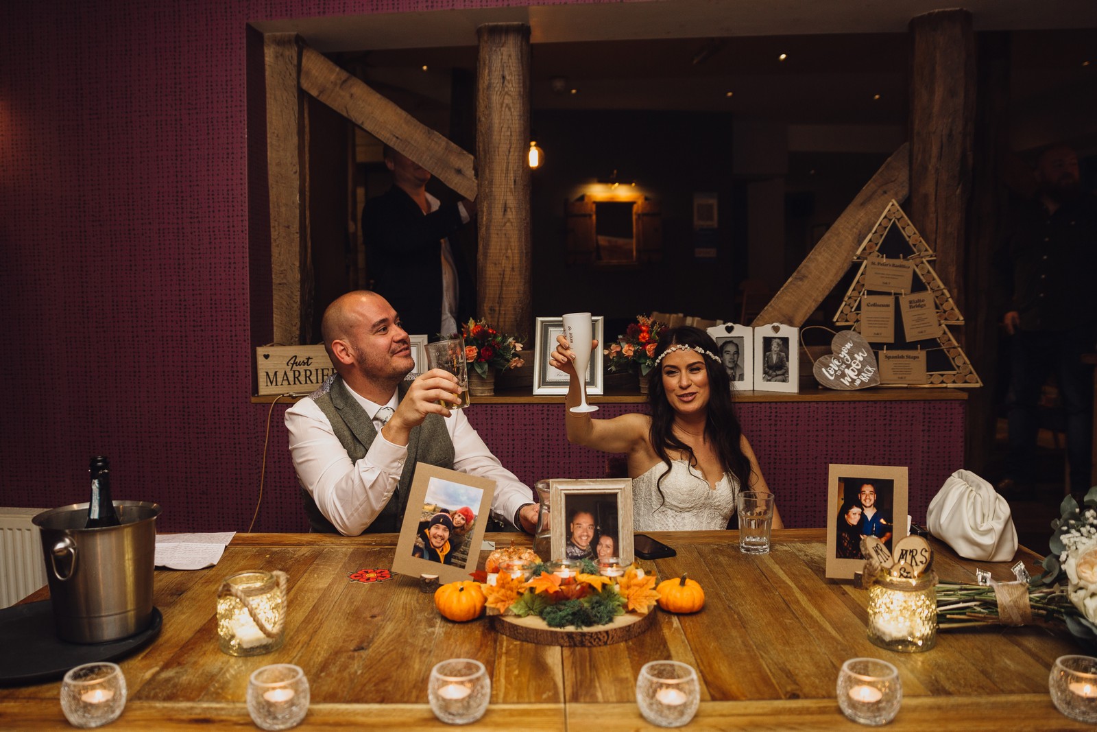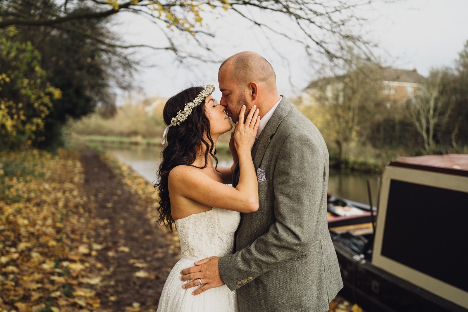 After the ceremony we headed over to local pub The White Bear for some amazing grub with their nearest and dearest. These guys were so much fun and you could just tell they were made for each other. We took full advantage of the canal side location for some autumnal couple’s portraits and then it was back for speeches and to cut the delicious looking naked cake.