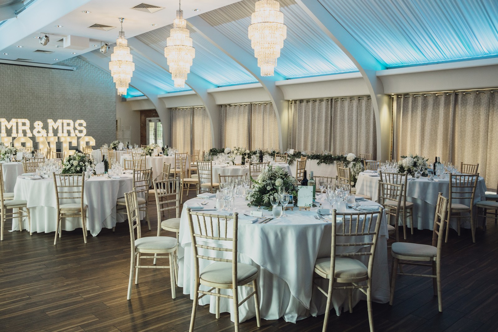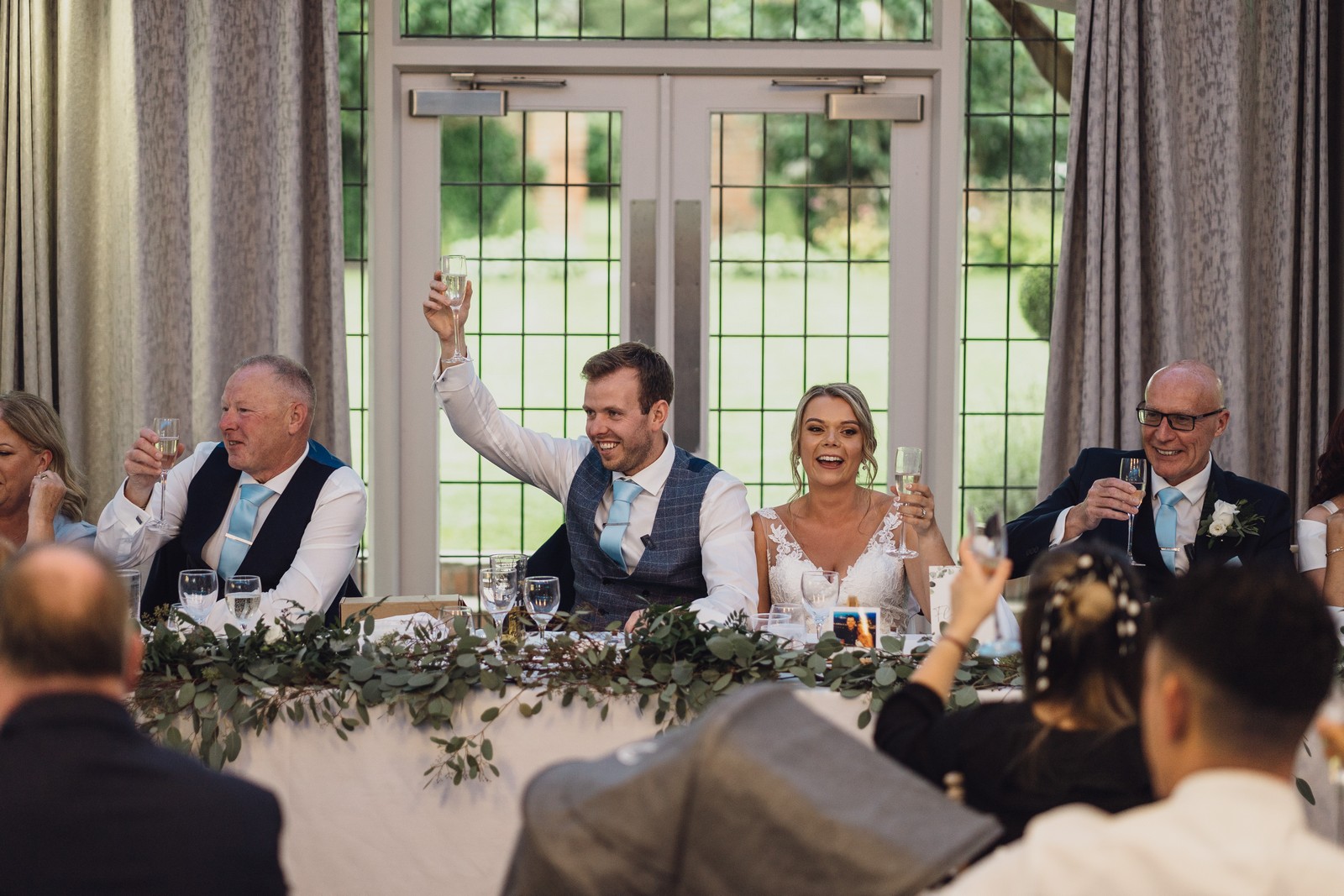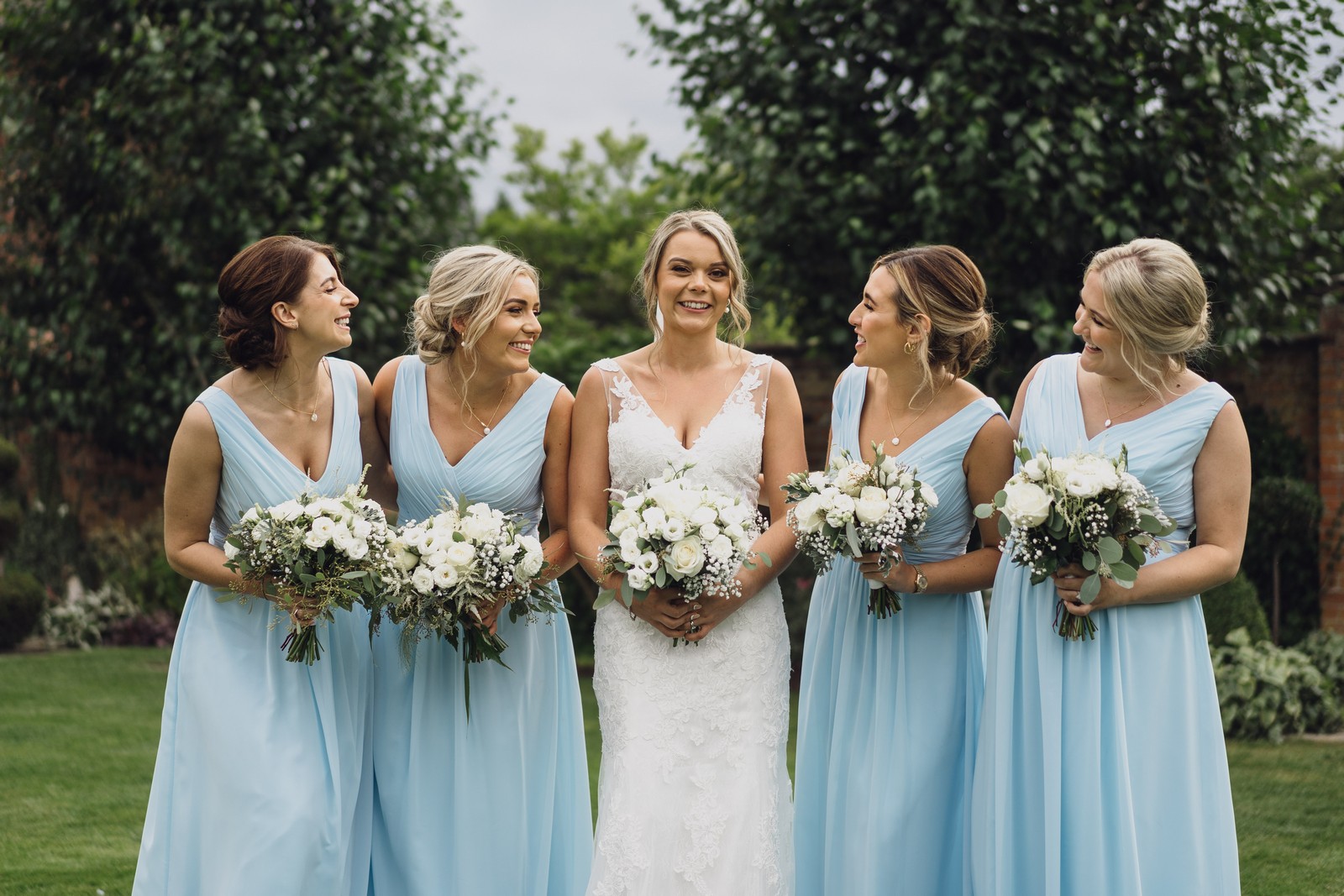 We wanted a timeless, relaxed day so we chose lots of greens, whites and pastel colours that we didn’t think would date too quickly. I always knew I wanted pastel blue bridesmaid dresses but it was so much harder than I thought to find that colour on a dress, luckily I found a local bridal shop where you could order dresses based on a range of swatches and they paired perfectly with the eucalyptus style greenery of the flowers and ceremony room. It was amazing to see everything come together on the day after so many years of planning.