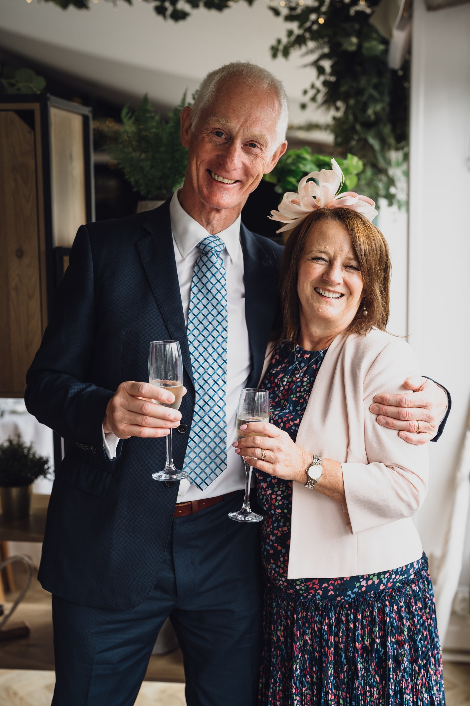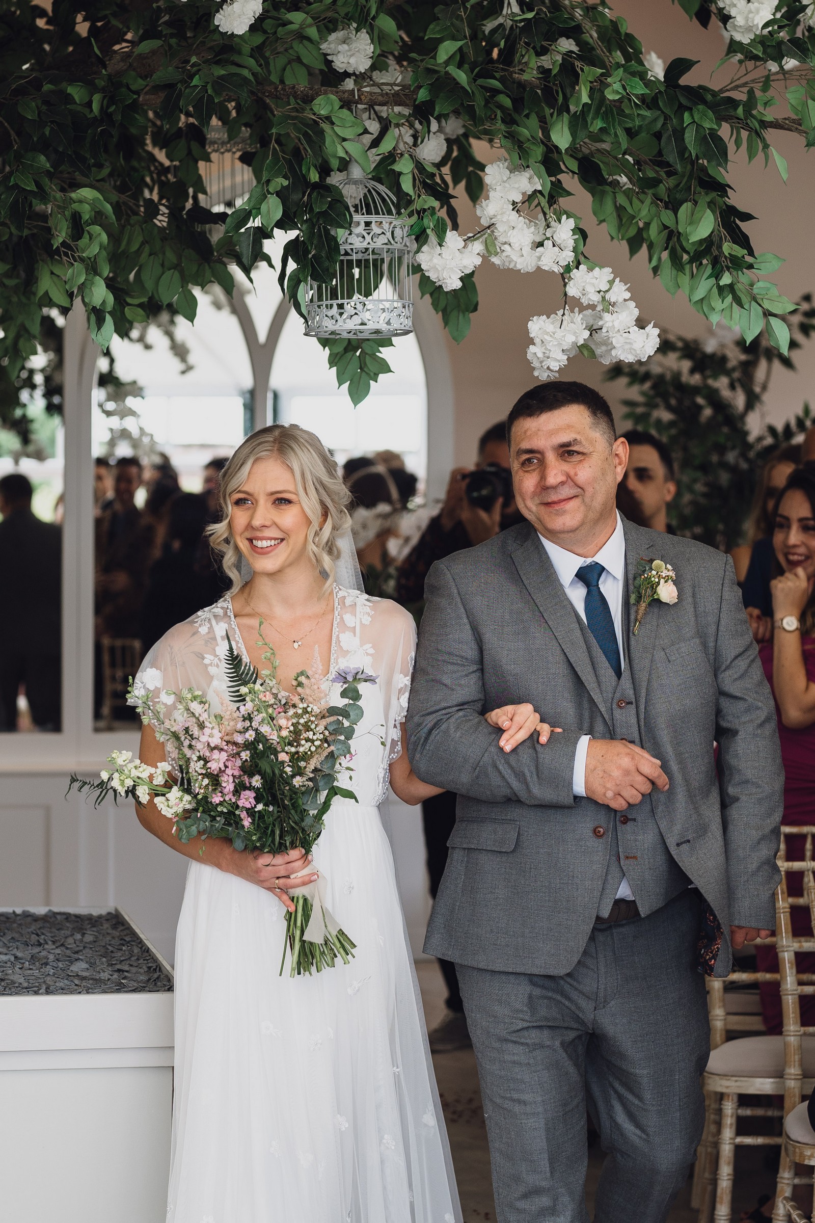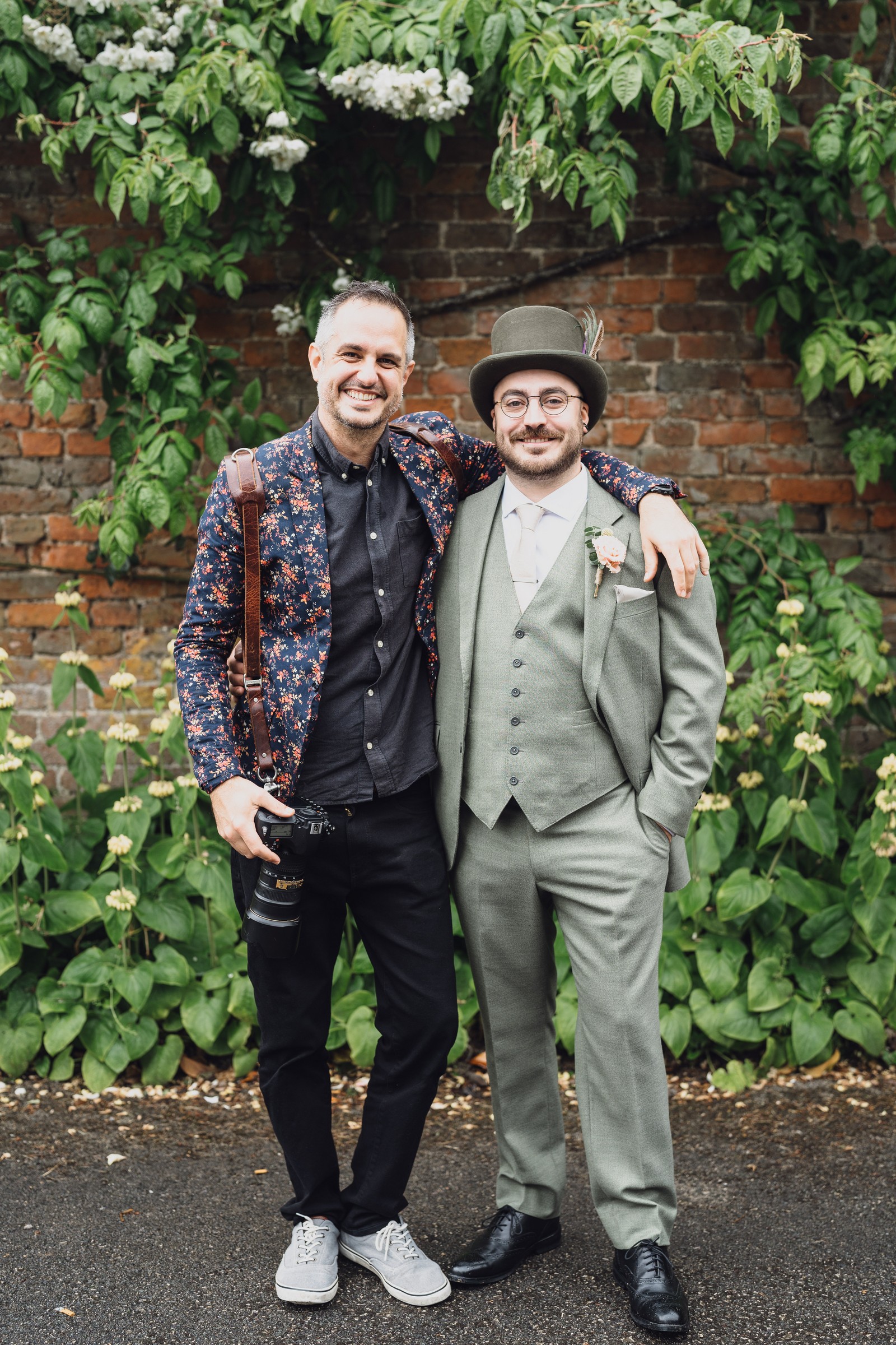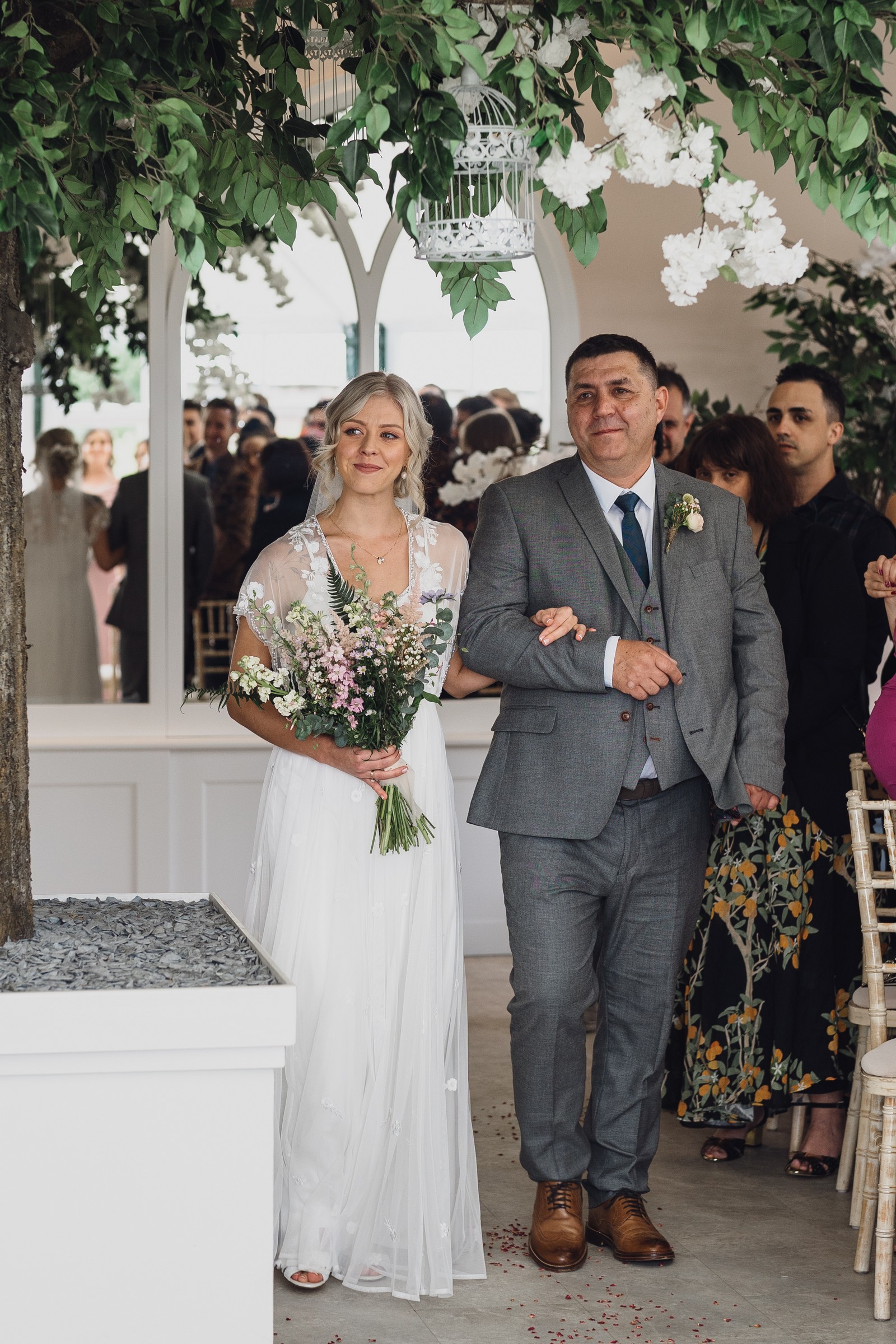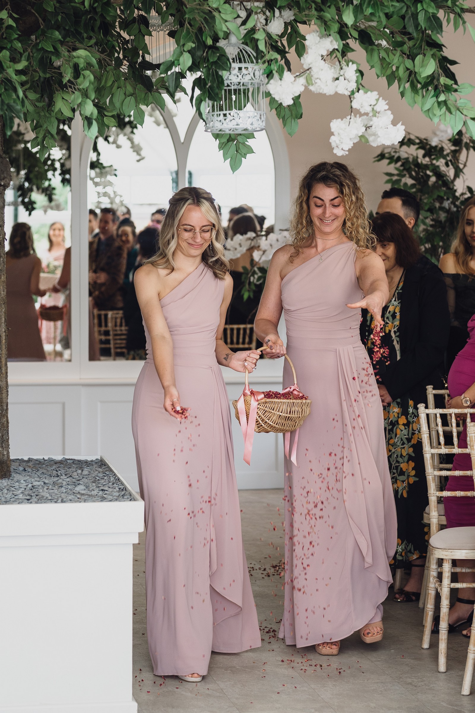The couple exchanged vows in the enchanting Glasshouse, a sunlit space filled with natural beauty and charm. Ewa looked radiant in a timeless gown, while Sam was dapper in a classic suit, complemented by his groomsmen, who sported stylish top hats—adding a touch of sophistication to the occasion. Their guests, dressed in elegant attire, created a picture-perfect scene as they gathered to witness the heartfelt ceremony.
