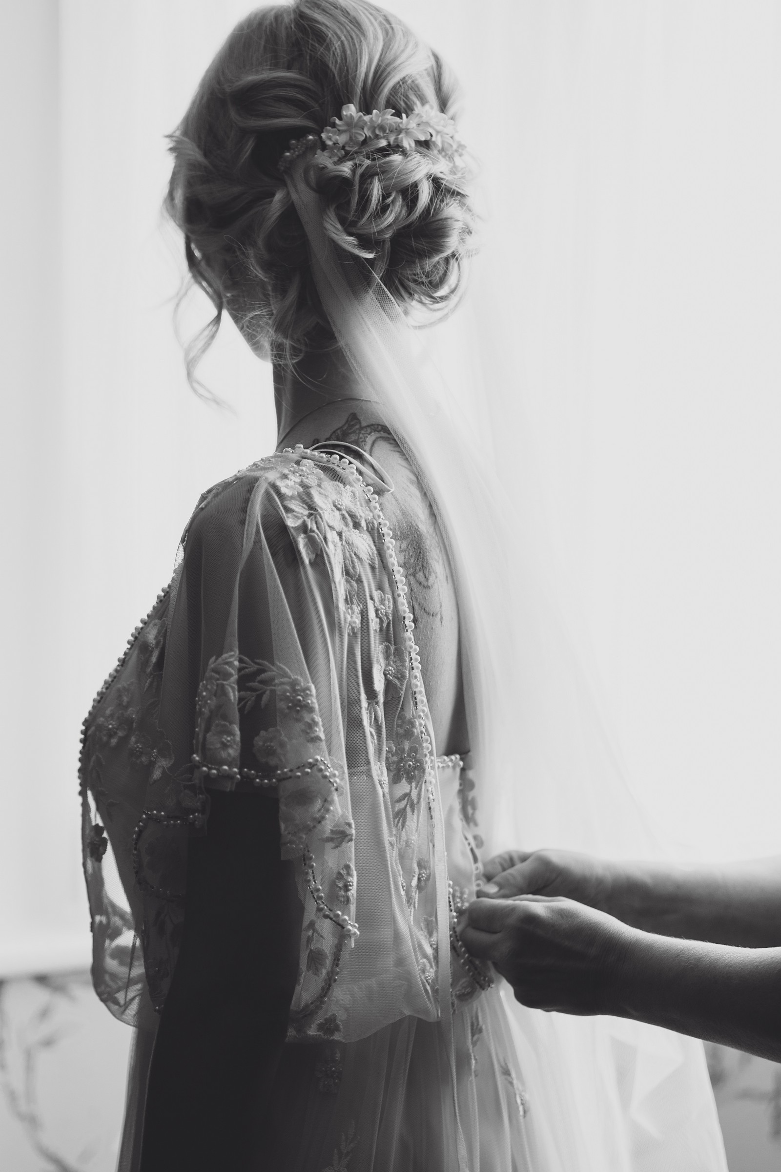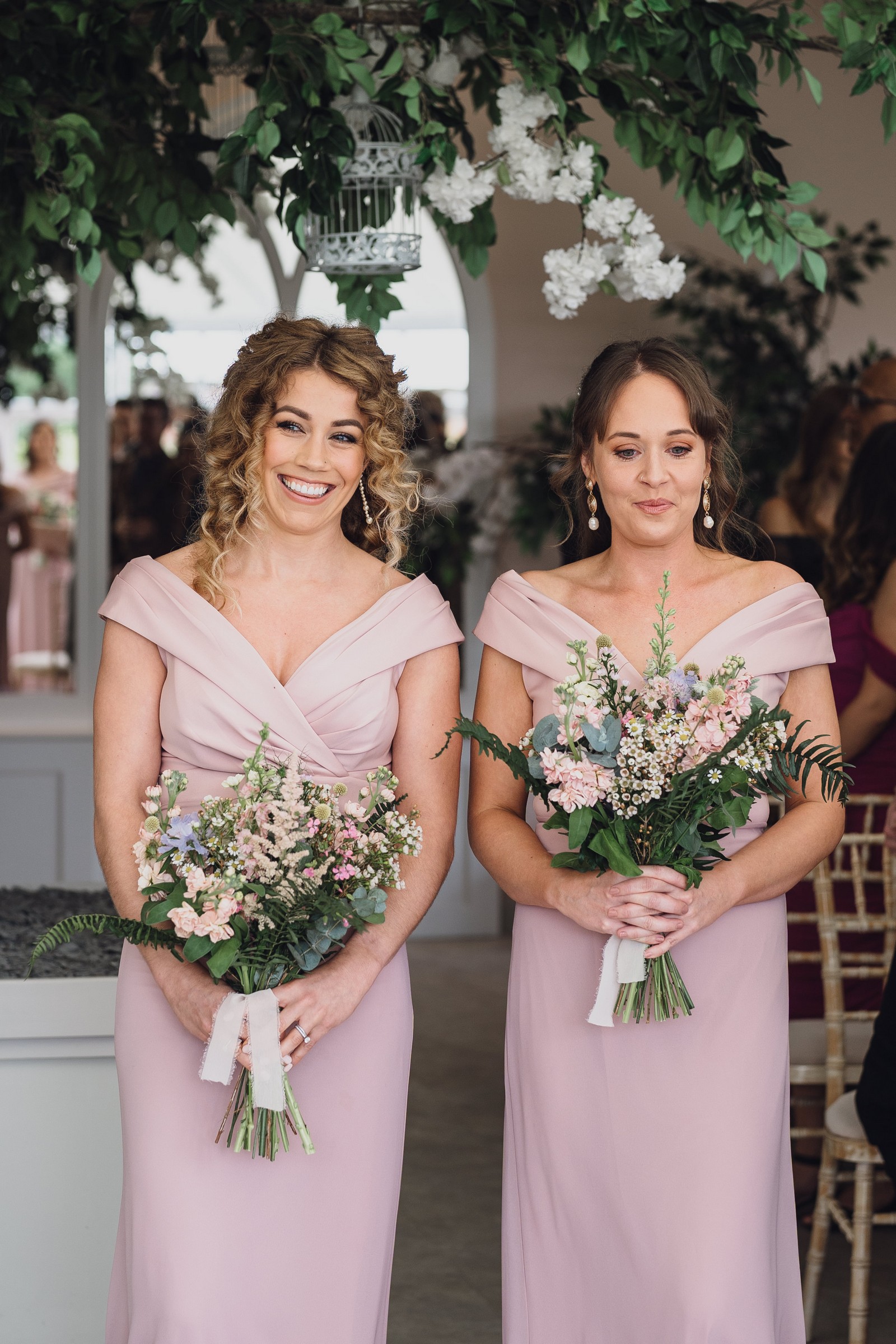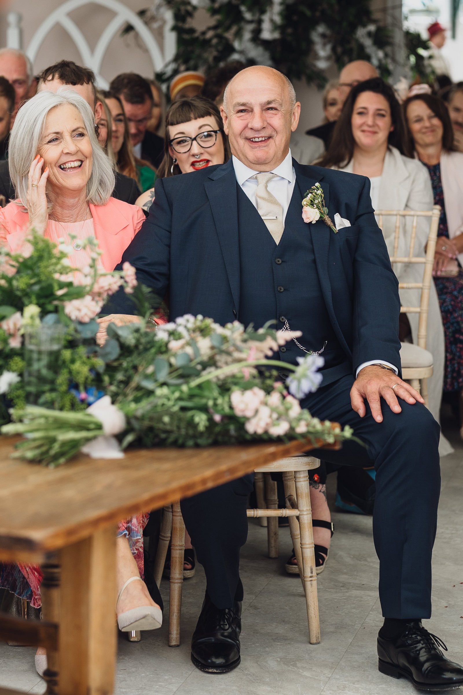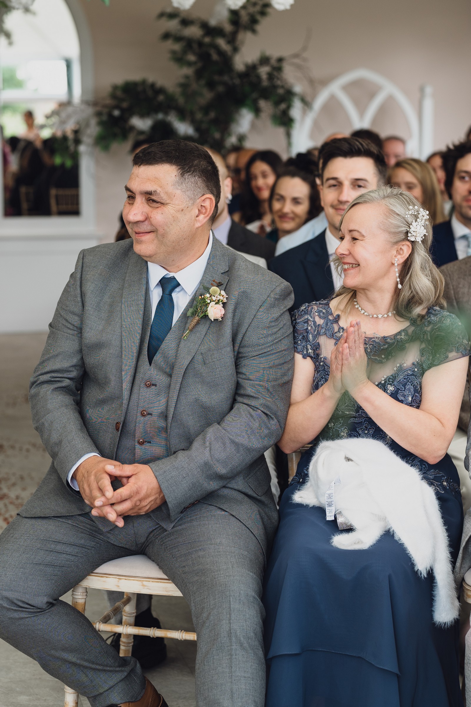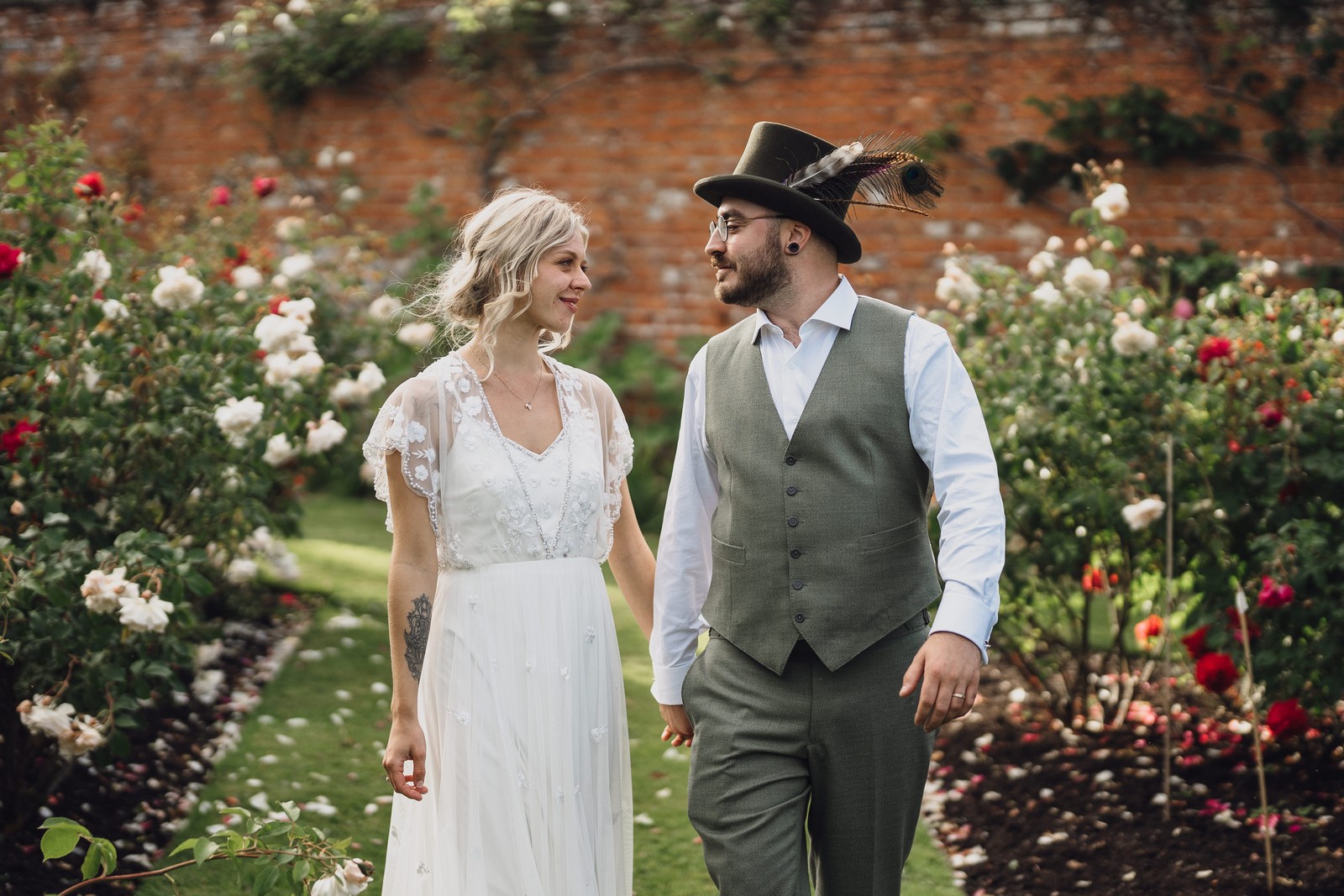 The couple exchanged vows in the enchanting Glasshouse, a sunlit space filled with natural beauty and charm. Ewa looked radiant in a timeless gown, while Sam was dapper in a classic suit, complemented by his groomsmen, who sported stylish top hats—adding a touch of sophistication to the occasion. Their guests, dressed in elegant attire, created a picture-perfect scene as they gathered to witness the heartfelt ceremony.