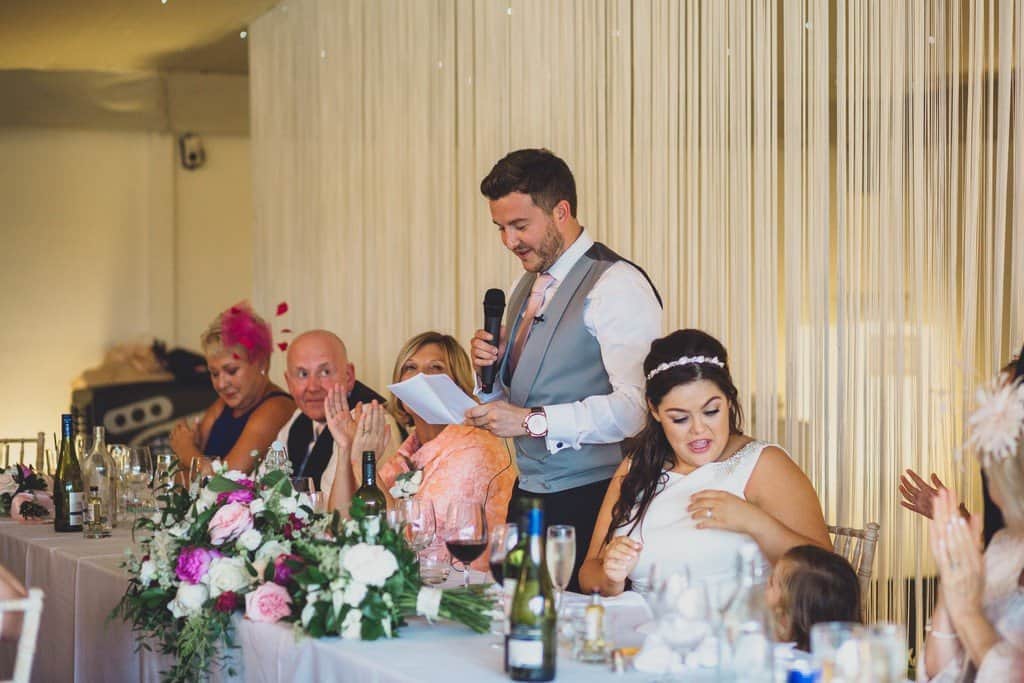 From their home we headed to their local church where they married in front of over 100 guests. Through the confetti line the couple and their little girl headed over to the exclusive Shropshire wedding venue; Combermere Abbey. Greeted by their guests they had drinks and canapes in the glass house whilst the marquee was being set up for the wedding breakfast.