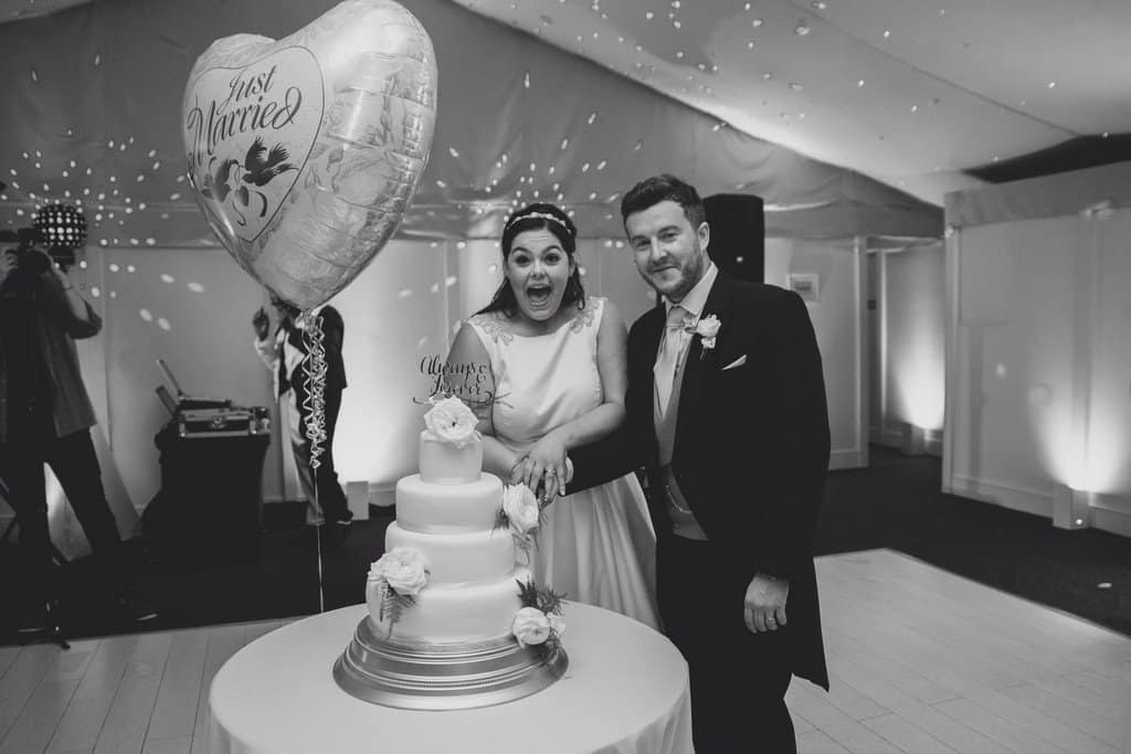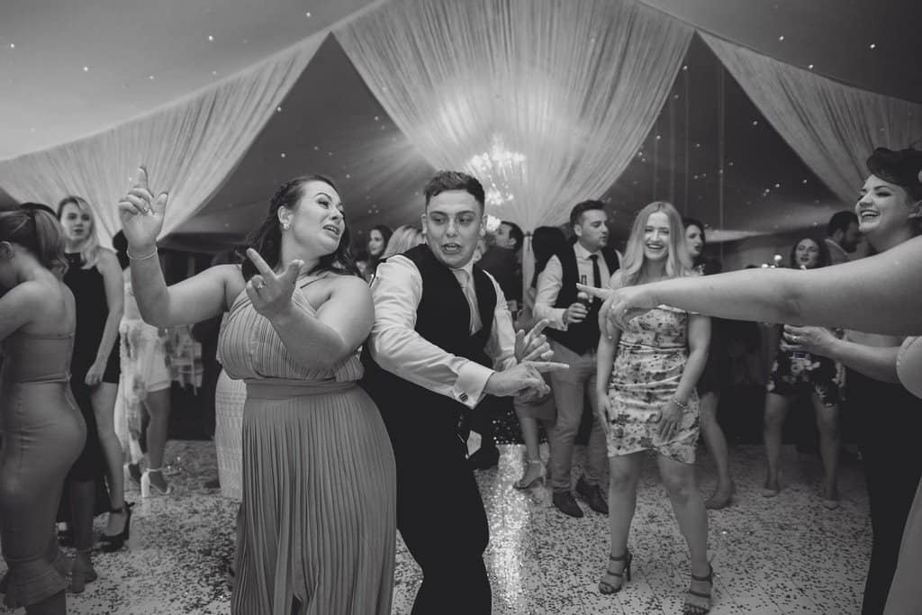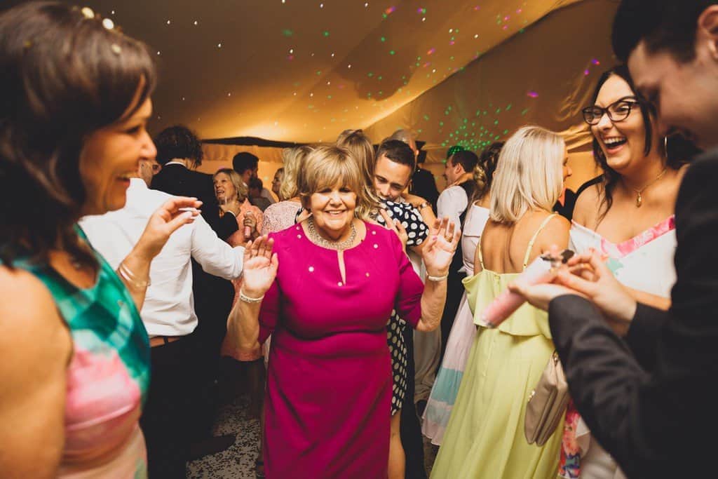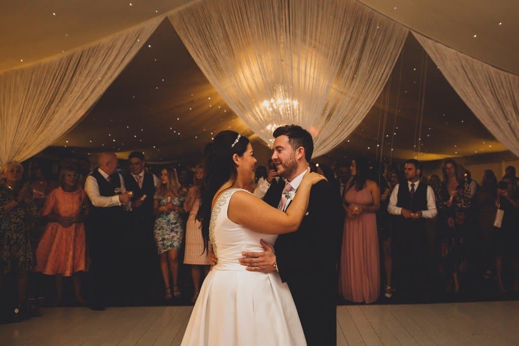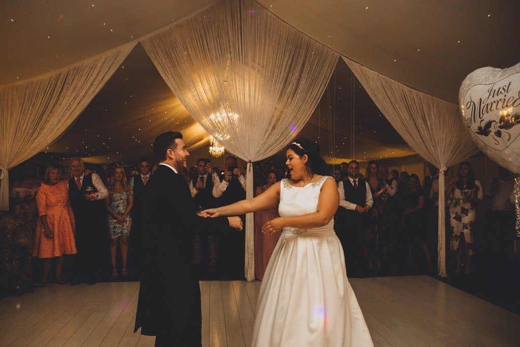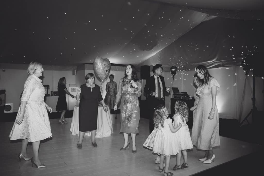 Their cutting of the cake and first dance proceeded at the back of the marquee and everyone was up from their chairs having a great time/