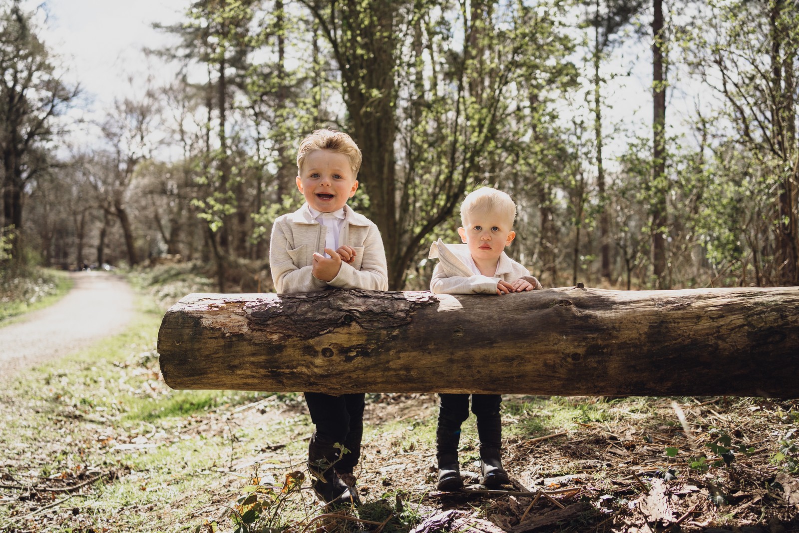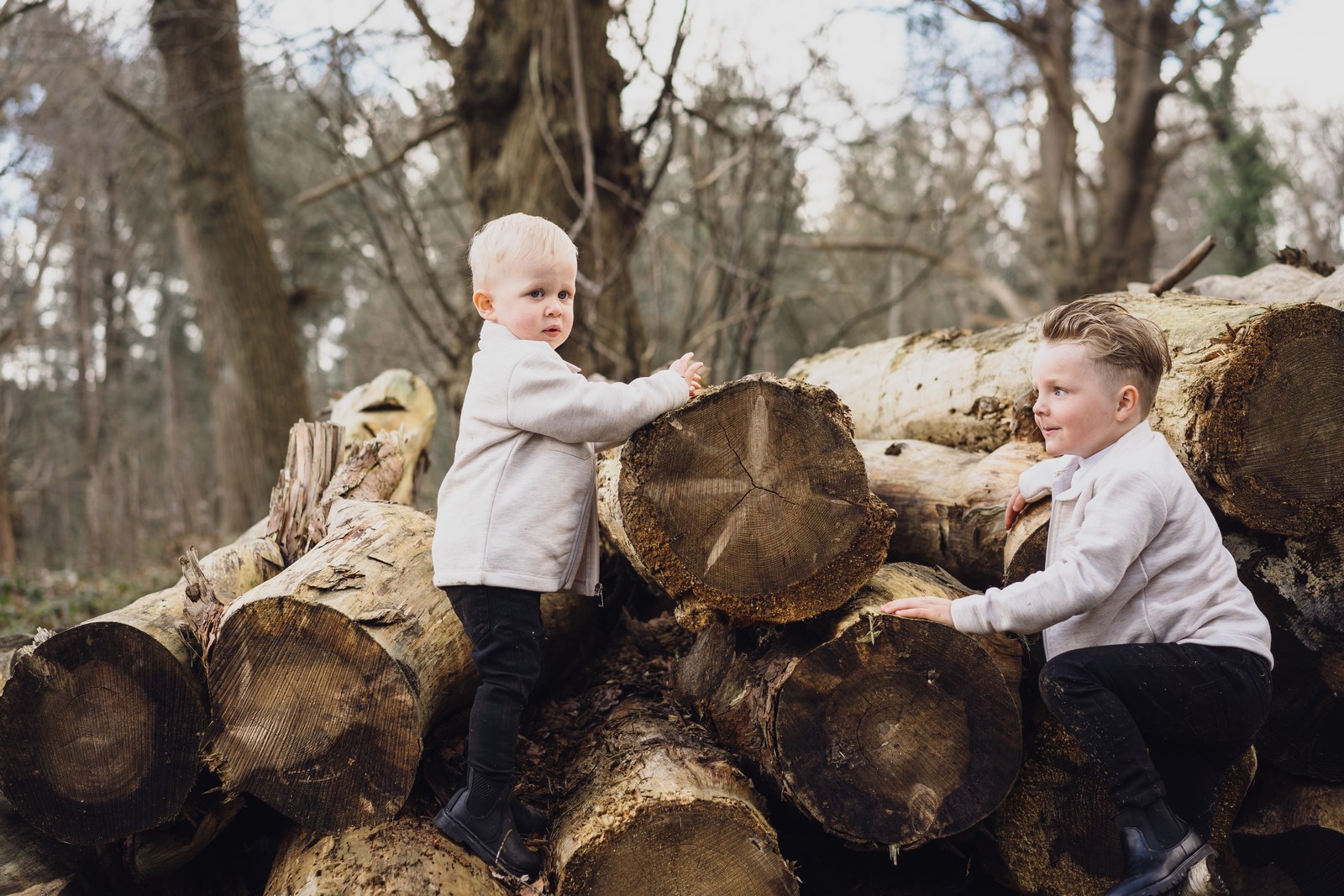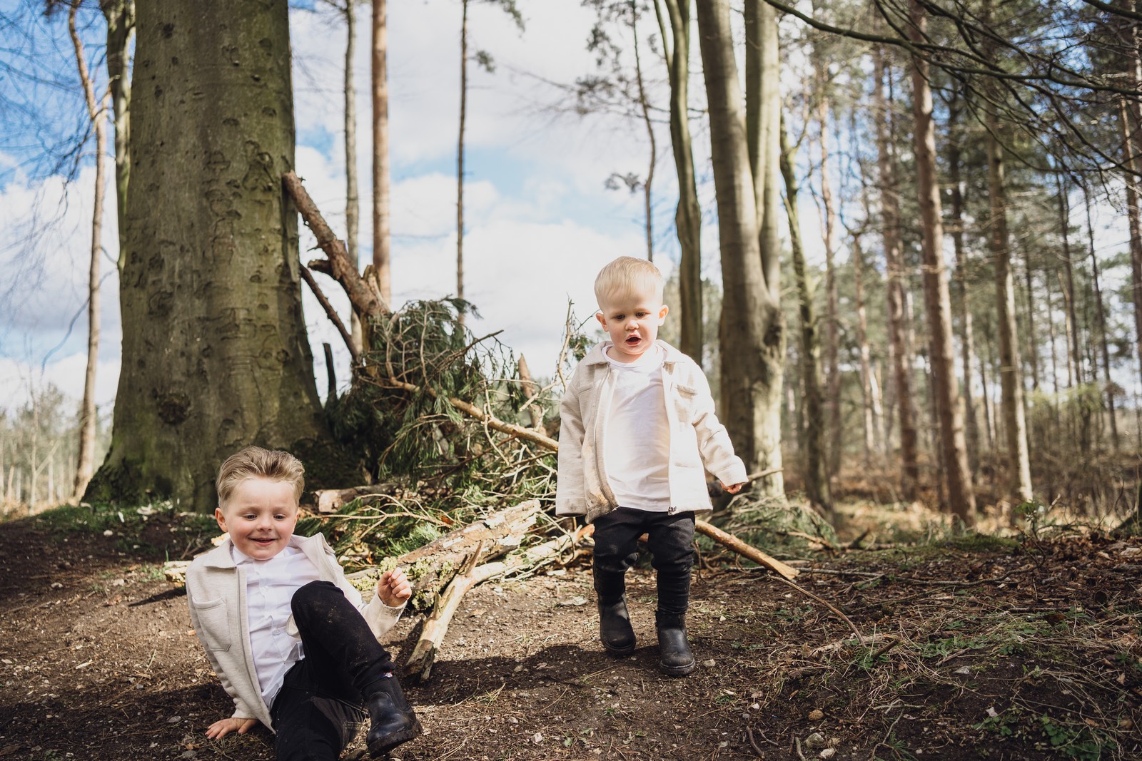 Cousins in matching smart outfits! Aren’t they just adorable. I’ve got a great bond with my two brothers and we love hanging out as a big family, so I loved it when Stacey and her brother brought their two little ones Henry and Noah out to Delamere forest to get some lovely pictures for their Nana’s birthday. They had a great time playing together in and out of the trees as I wandered round with them getting some lovely natural shots of them having fun.
