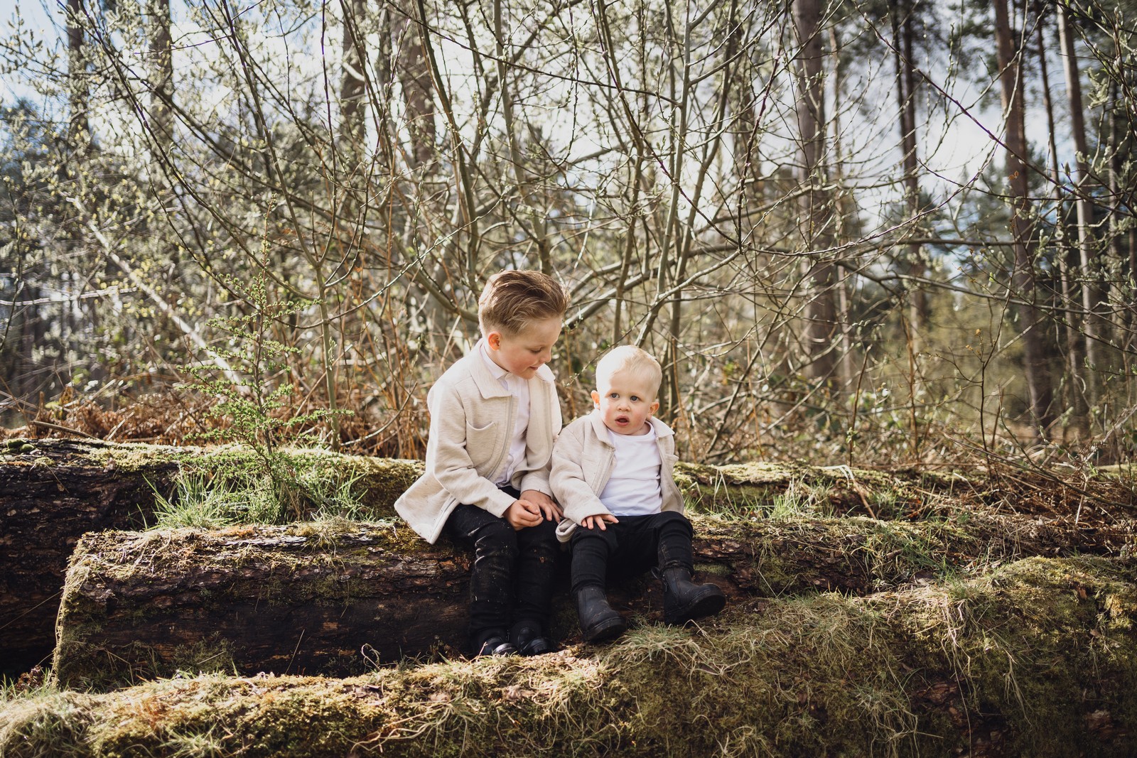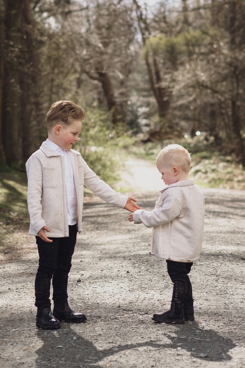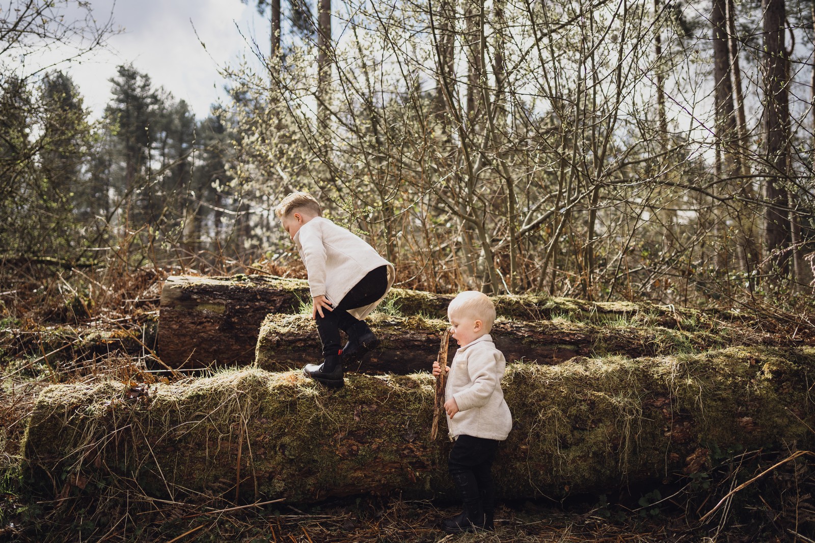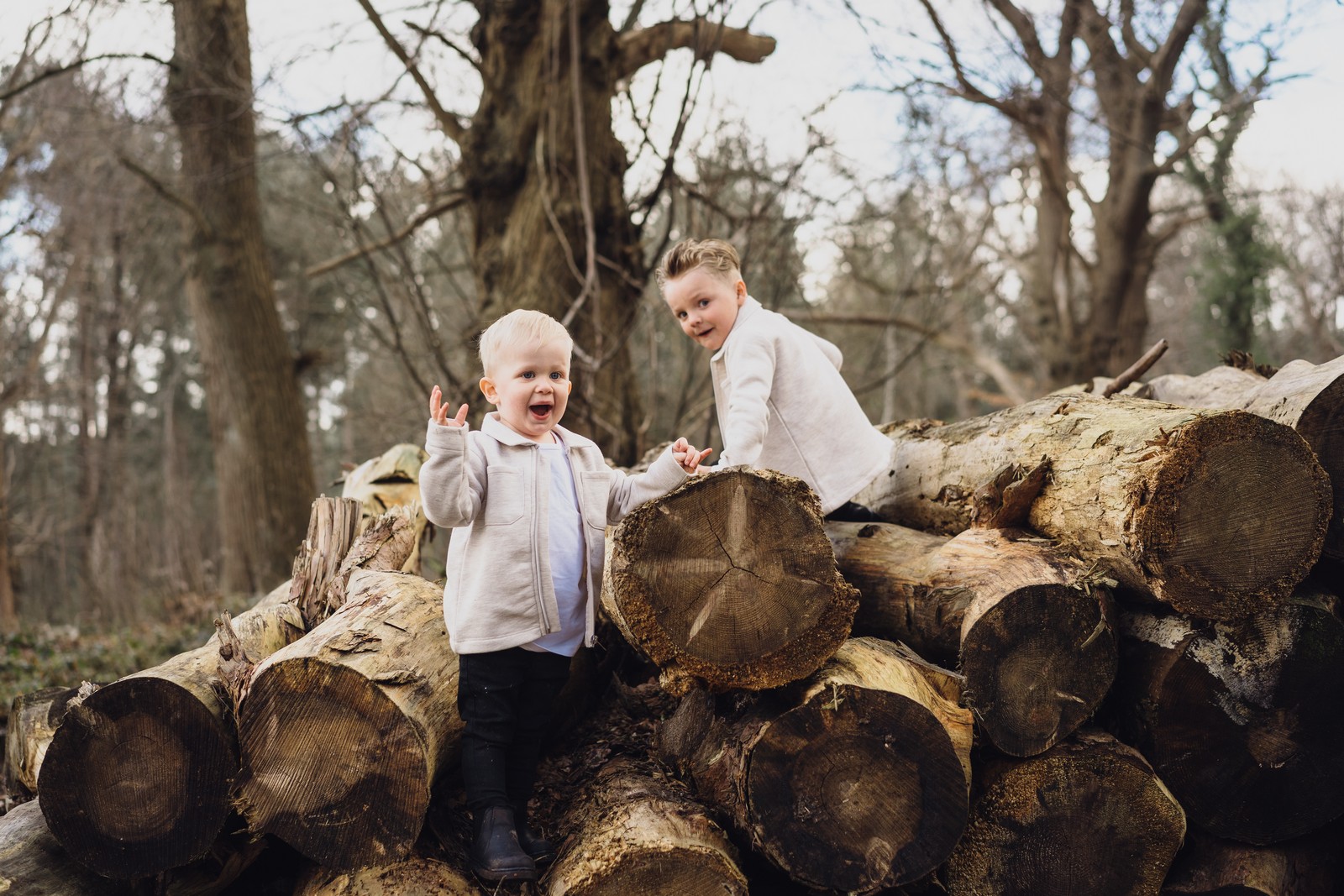 Cousins in matching smart outfits! Aren’t they just adorable. I’ve got a great bond with my two brothers and we love hanging out as a big family, so I loved it when Stacey and her brother brought their two little ones Henry and Noah out to Delamere forest to get some lovely pictures for their Nana’s birthday. They had a great time playing together in and out of the trees as I wandered round with them getting some lovely natural shots of them having fun.