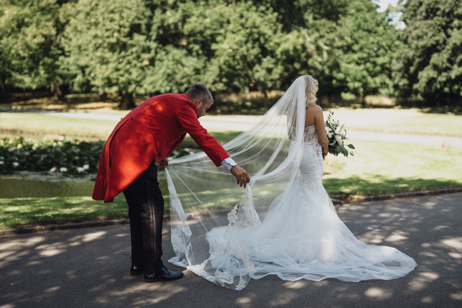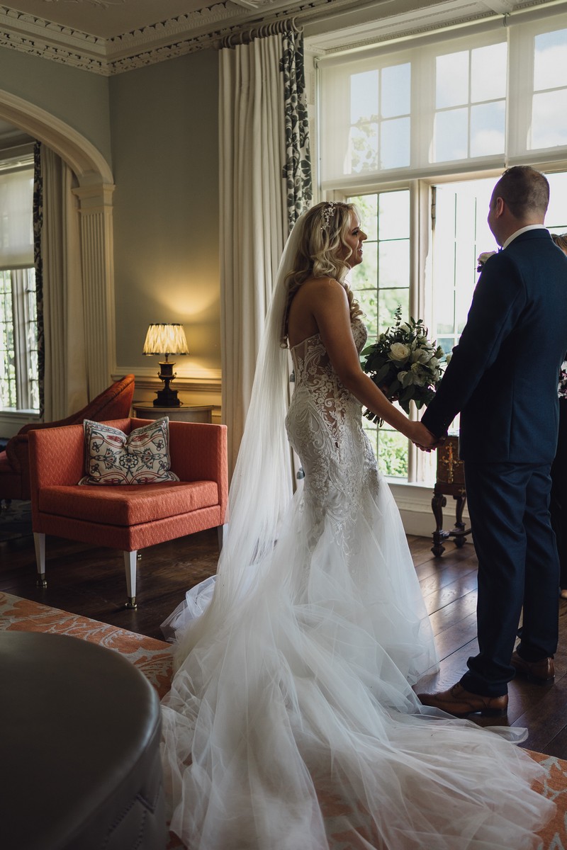 The Hall itself is incredible. Its grand architecture and historic features provide a stunning backdrop. From the period features and antiques to the modern art and furnishings, every detail of the venue has been carefully thought through. The parkland estate also offers a huge array of beautiful, natural settings for wedding photographs. The picturesque lakes and woodlands are fab for a more rural vibe or the landscaped lawn to the rear of the Hall is great for some romantic couple portraits. There is just such a variety of places to work with and I’m never short of ideas when I’m there.