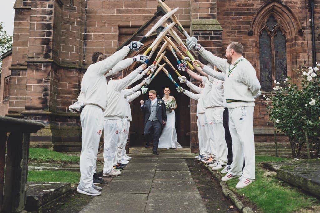 The pair were married at church in Tarporley, where Natalie walked down the aisle with her mum. Natalie looked just totally breathtaking, I absolutely adore her stunning sweetheart dress. They make such a cute couple and the church service was perfect. And a total first for me was getting to photograph a cricket bat archway as the new Mr and Mrs Williamson exited the church!