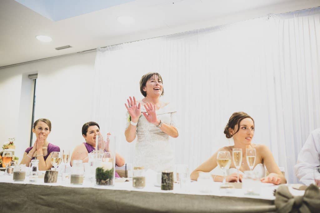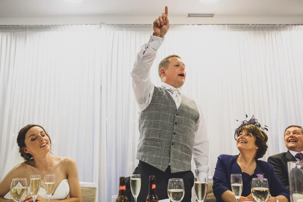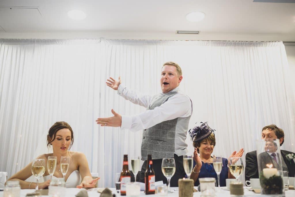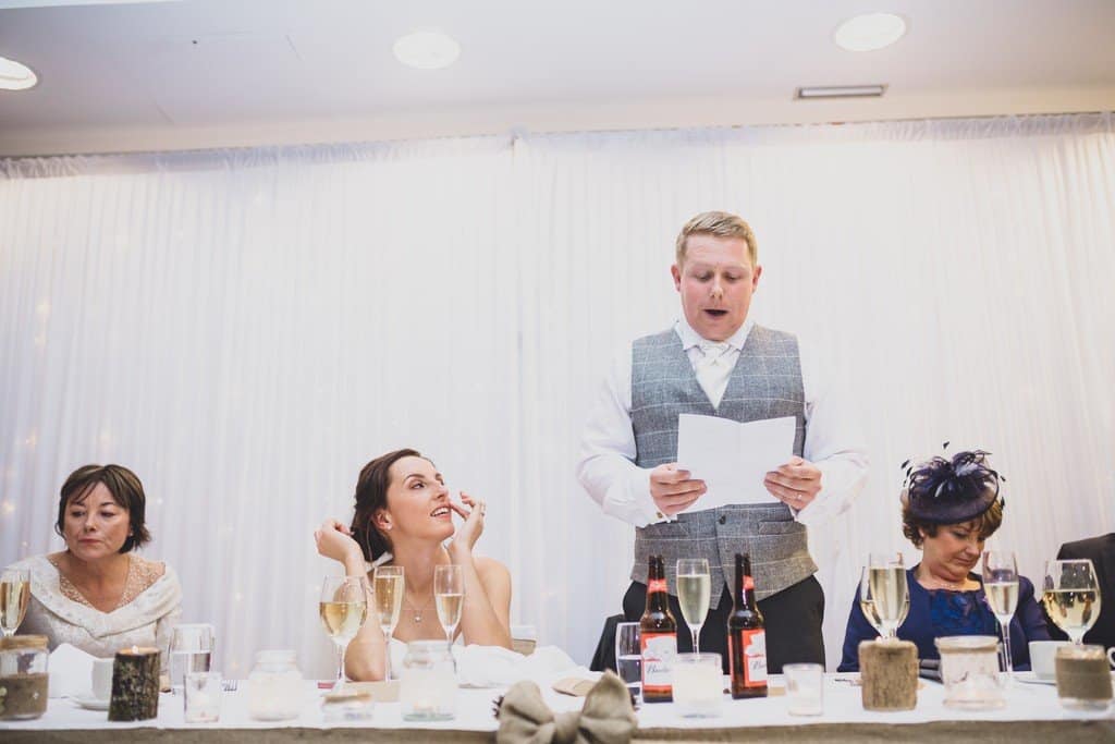We managed to get a handful of great photos outside at the Hilton but Storm Brian was really in full swing by this stage. We took Natalie’s umbrella basically getting trashed and blown away off somewhere into the storm as a sign that maybe it was time to move back indoors! With Storm Brian raging outside, it made for such a lovely cosy atmosphere indoors as everyone settled in for the rest of the celebrations. The speeches were emotional, humorous and a bit raucous in equal measure, the perfect balance.