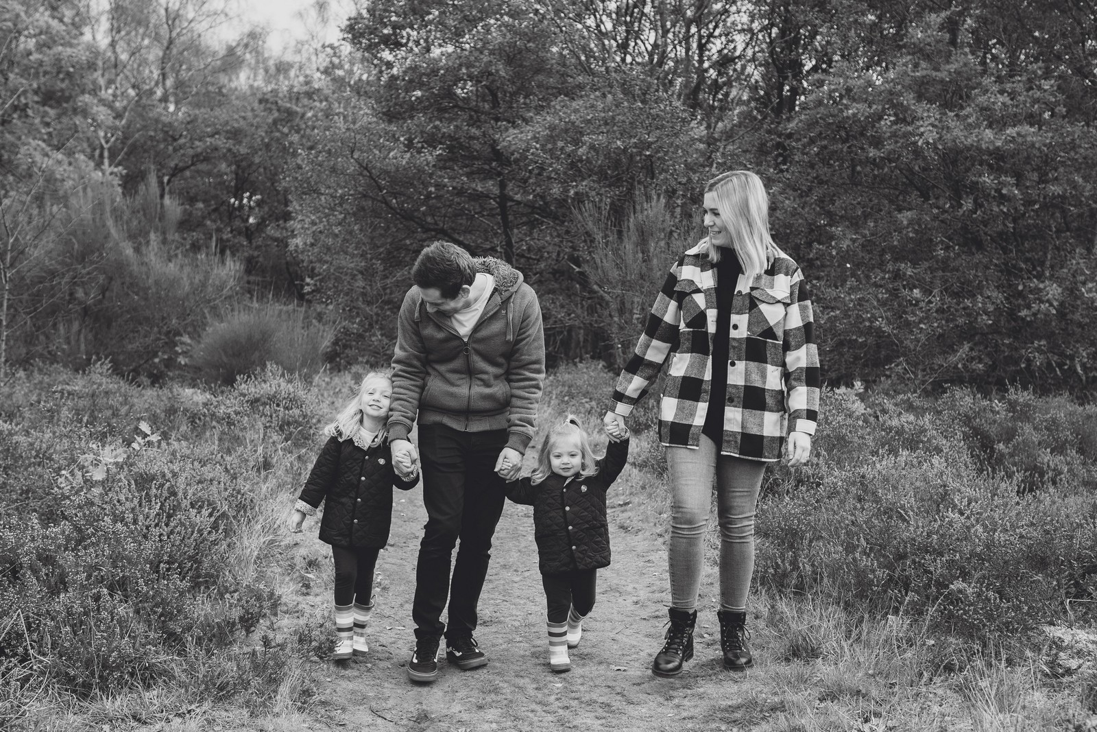 Family photographer in the woods with The Kemp family. The woods is a secluded Cheshire location with a gorgeous woodland and open area for the children to run and be free. Jenna booked me for a family shoot with her girls, she wanted up to date pictures of the girls and as a family together. It’s quite daunting to get in front of the camera but we try to make the sessions as fun as possible, to keep the girls engaged and get those gorgeous natural smiles.
