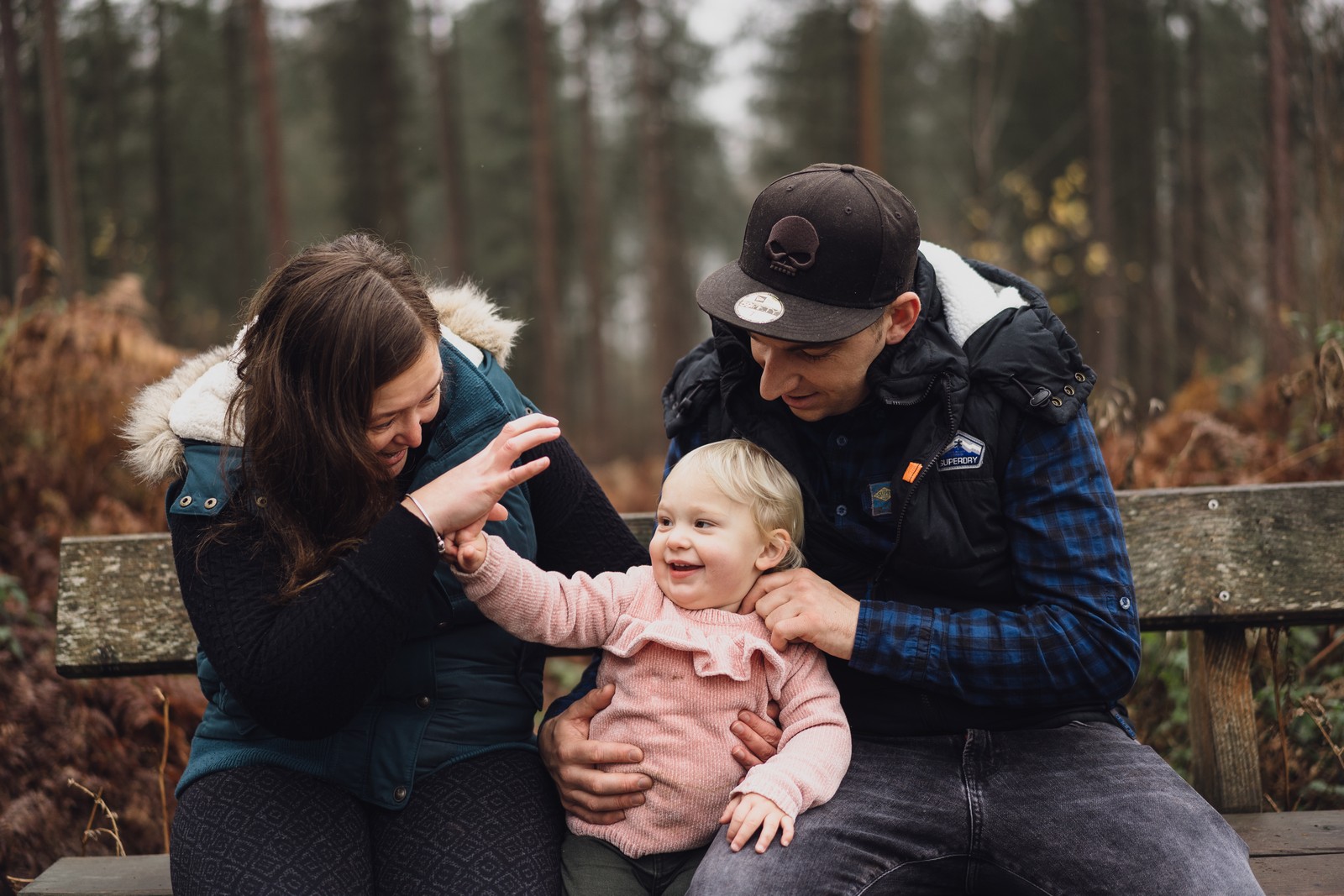 Forest shoot in the forest. Look at Gabriella’s gorgeous little smile. I could just feel the love oozing out of this family and they look so cute together. This was one of my mini shoots in Delamere forest and Shelley who happens to be an old school friend got in touch to book in to get some pictures of her lovely little family of three. I was originally supposed to be capturing their wedding this year but as covid had other plans they’ve had to postpone until next year. So they thought a mini shoot would be perfect to take their minds off their postponed wedding and get some lovely memories with their little girl Gabriella.