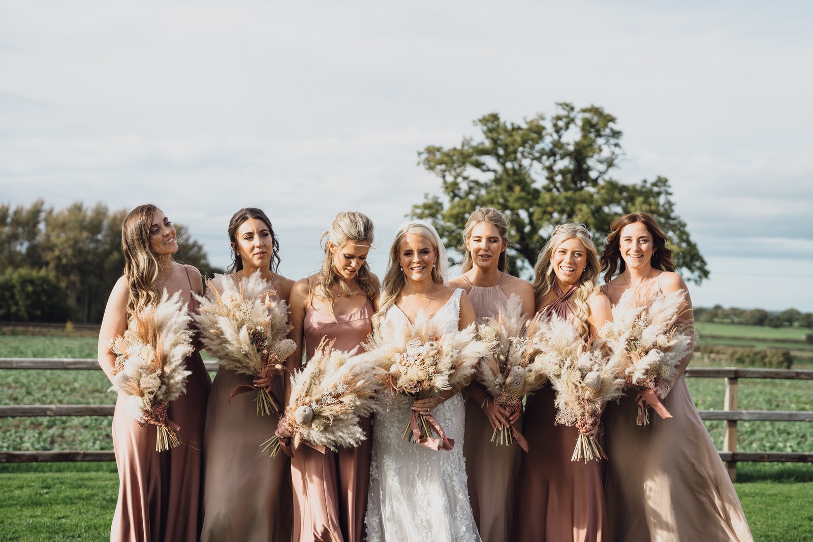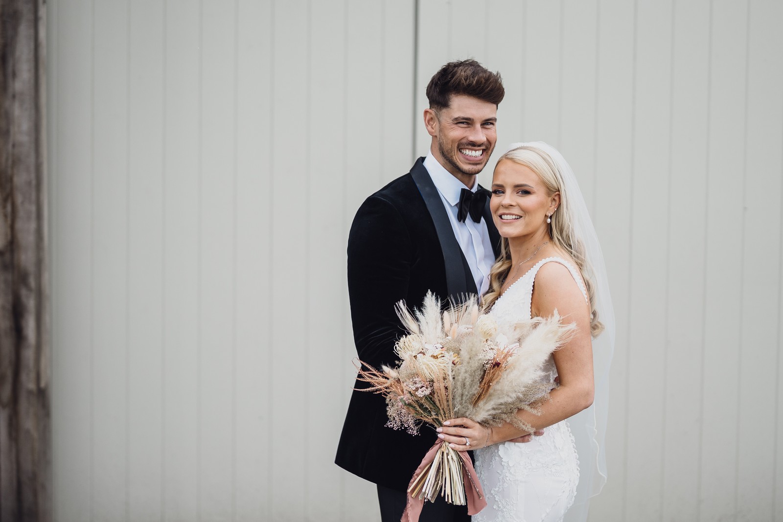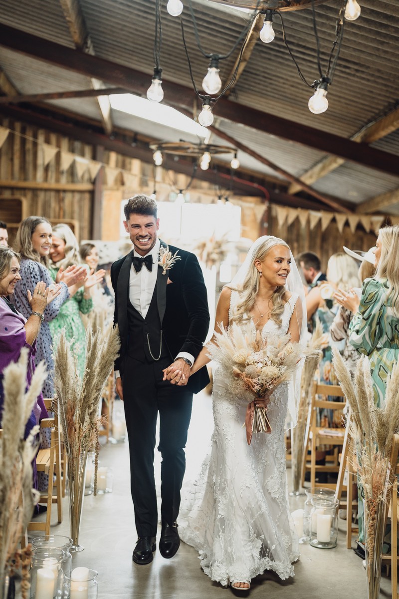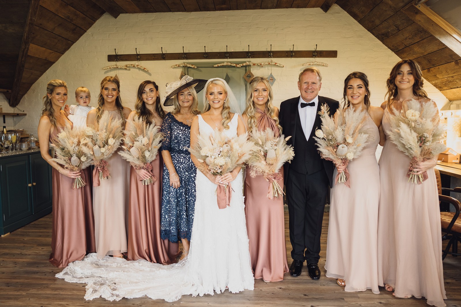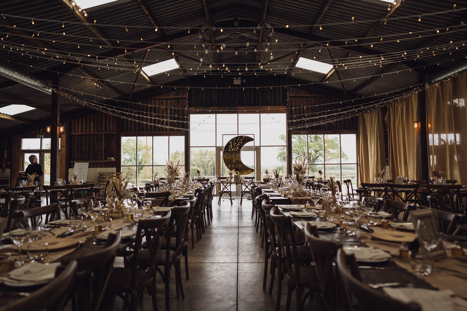 We wanted the day to be fun and relaxed. Grange barn was a perfect venue because it’s rustic and didn’t feel too formal. I really love the look of the pampas grass and dried flowers and think this went really well with the venue and suited the time of year too. The fairy lights at Grange Barn and the ‘to the moon and back’ sign we rented from ido hire helped to make the venue feel really magical!