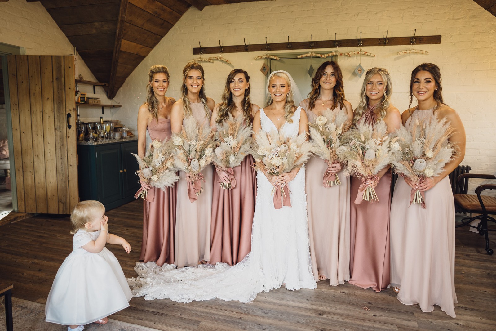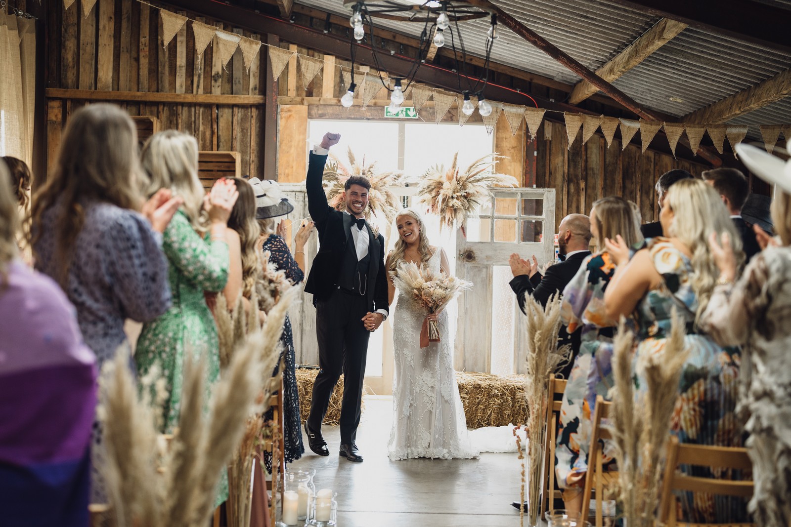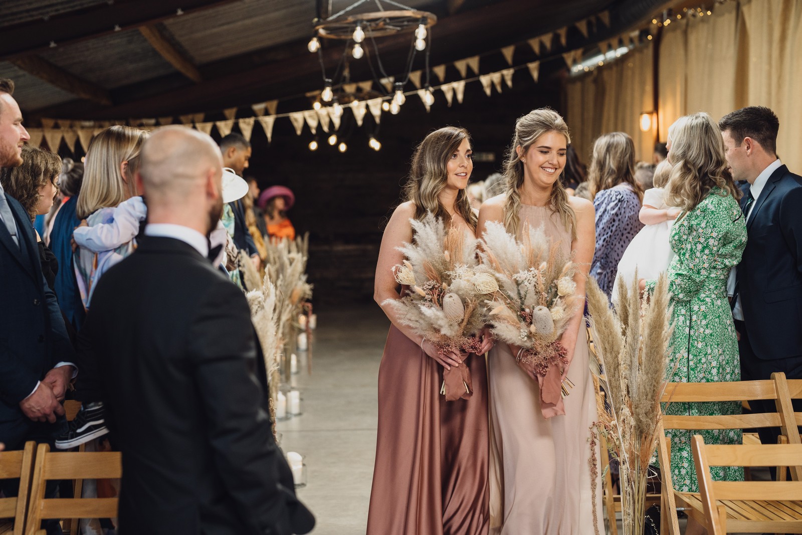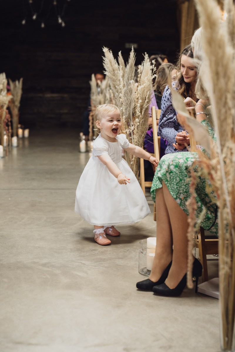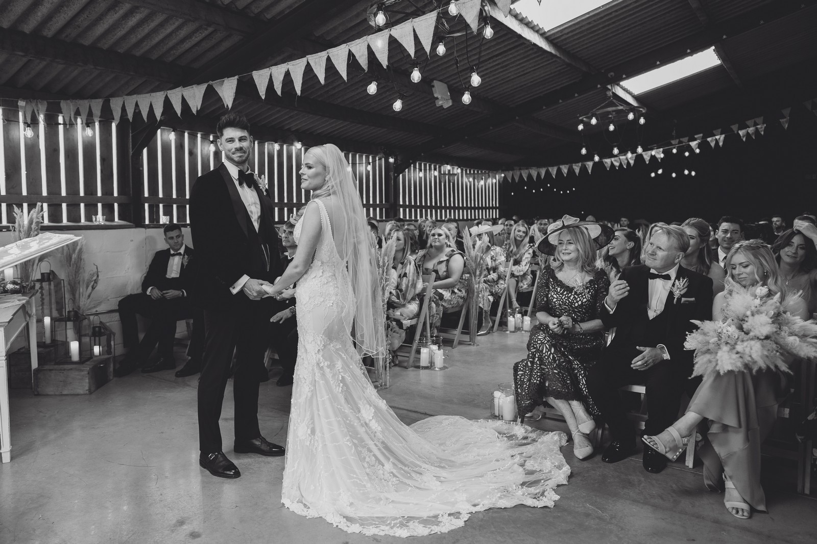 We wanted the day to be fun and relaxed. Grange barn was a perfect venue because it’s rustic and didn’t feel too formal. I really love the look of the pampas grass and dried flowers and think this went really well with the venue and suited the time of year too. The fairy lights at Grange Barn and the ‘to the moon and back’ sign we rented from ido hire helped to make the venue feel really magical!