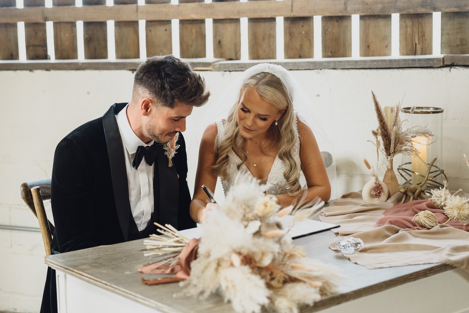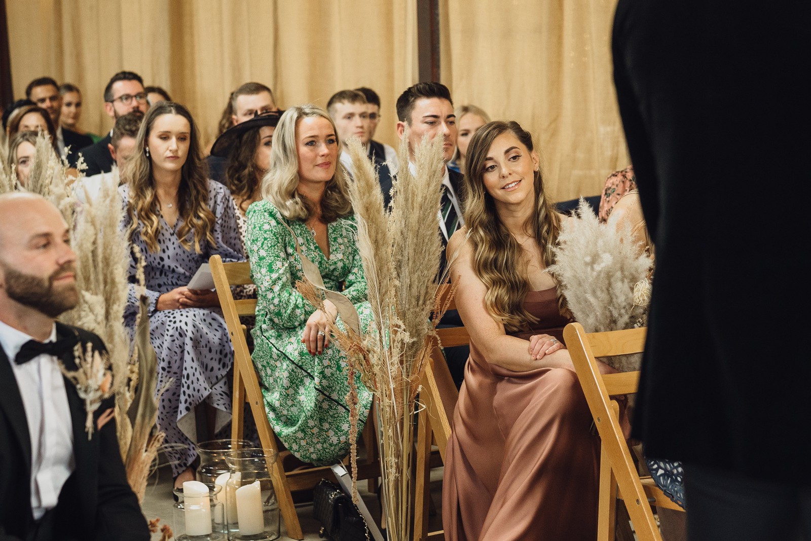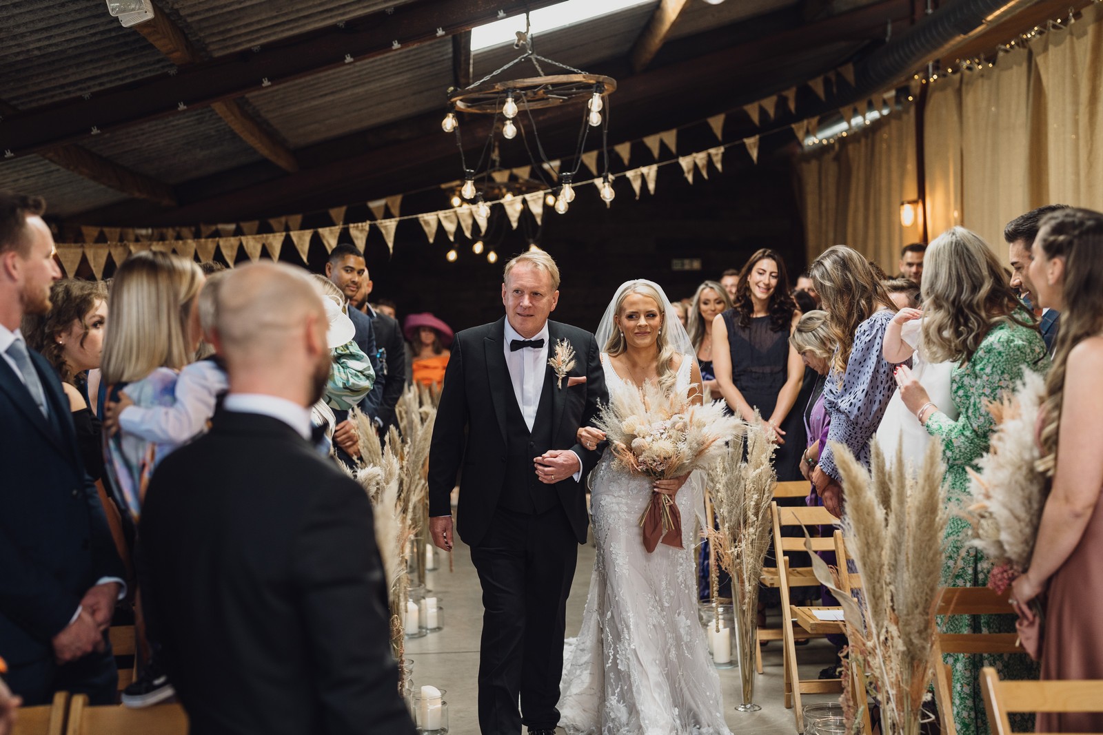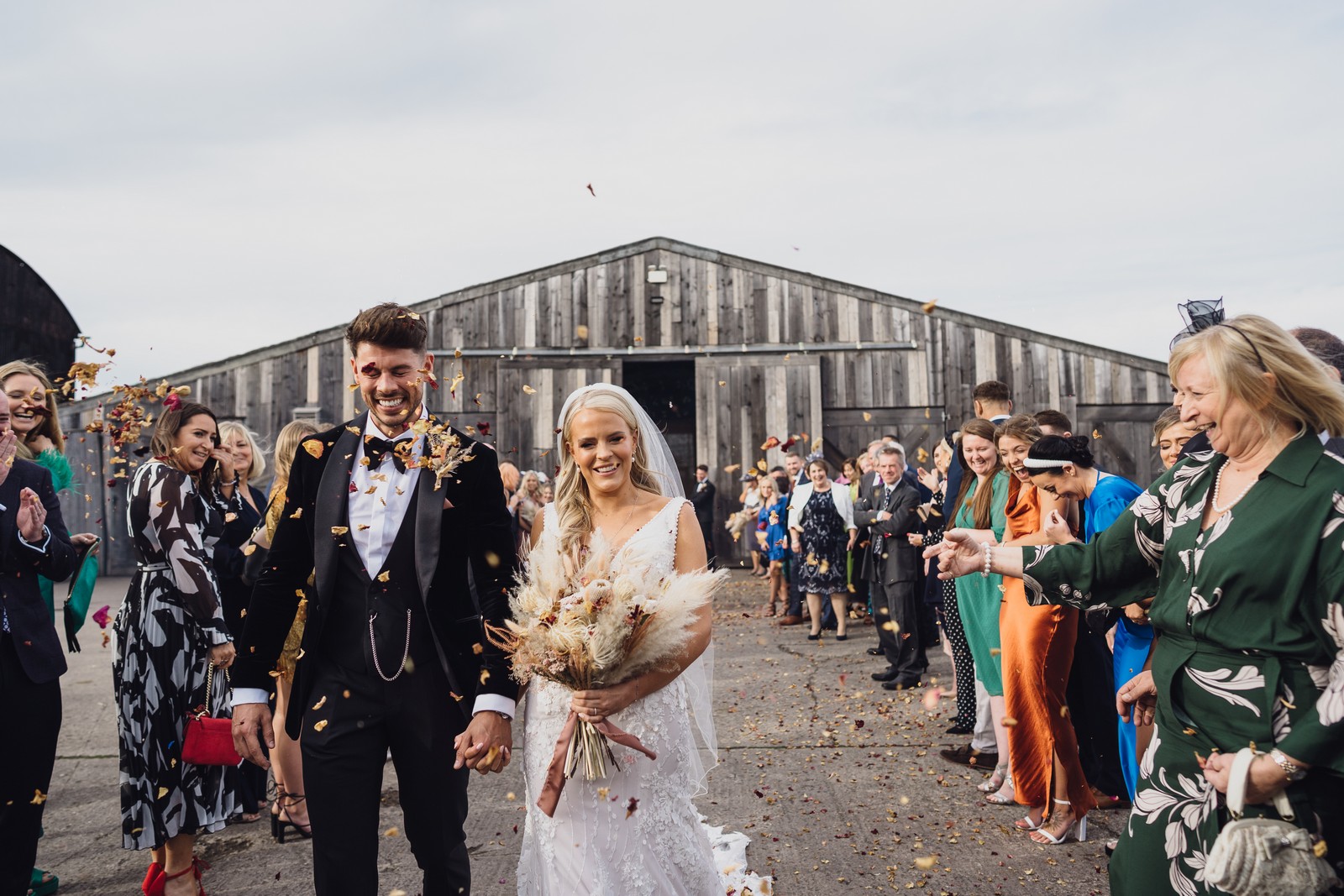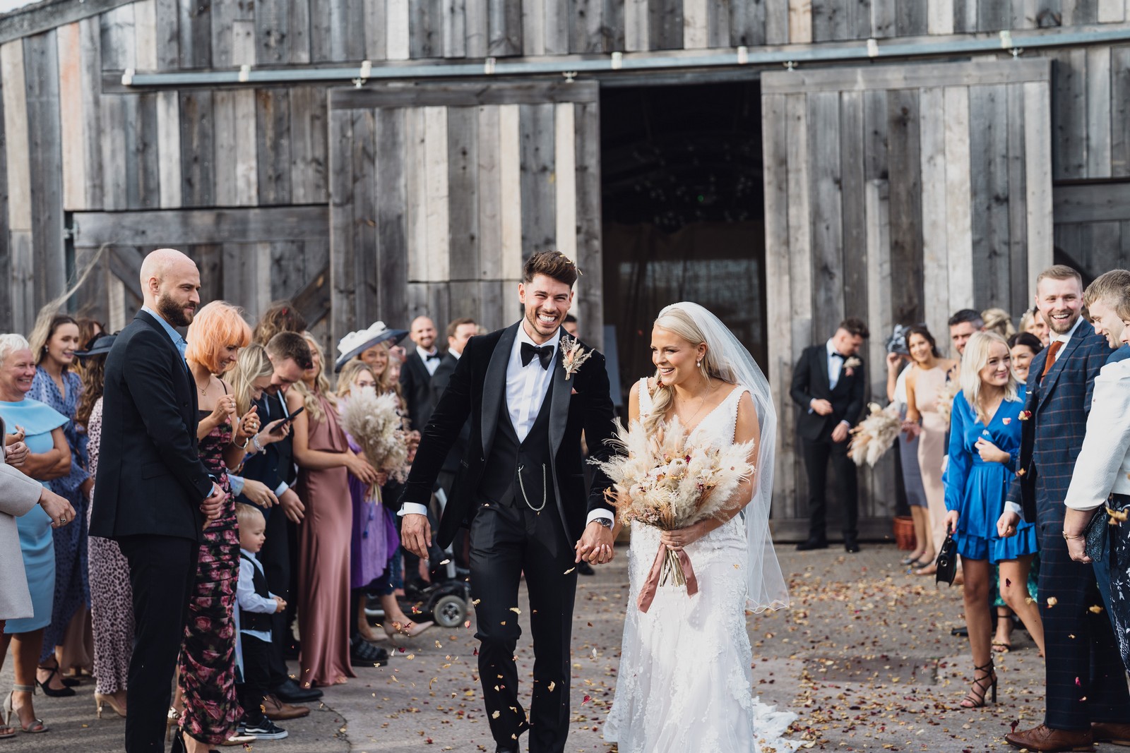 We wanted the day to be fun and relaxed. Grange barn was a perfect venue because it’s rustic and didn’t feel too formal. I really love the look of the pampas grass and dried flowers and think this went really well with the venue and suited the time of year too. The fairy lights at Grange Barn and the ‘to the moon and back’ sign we rented from ido hire helped to make the venue feel really magical!