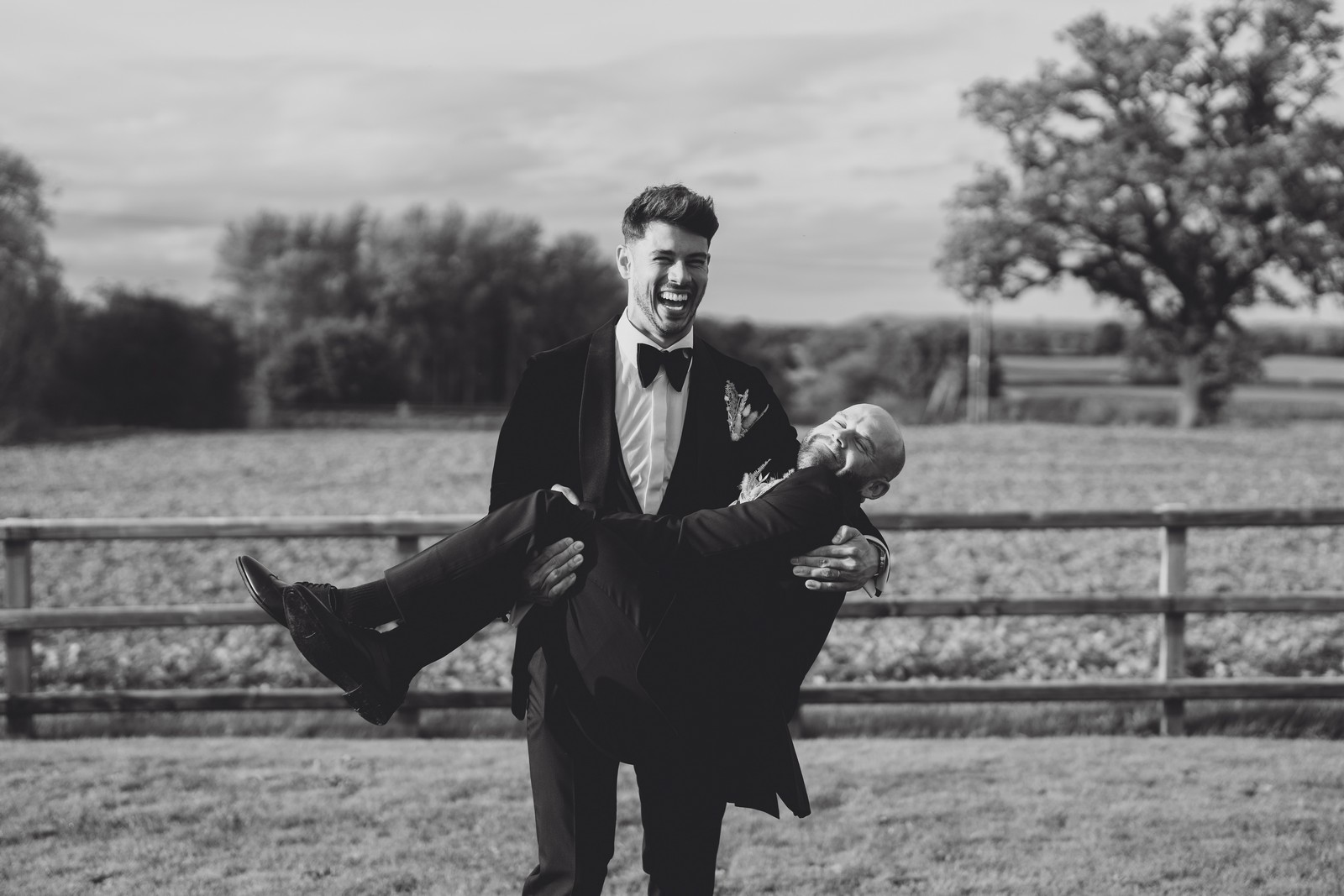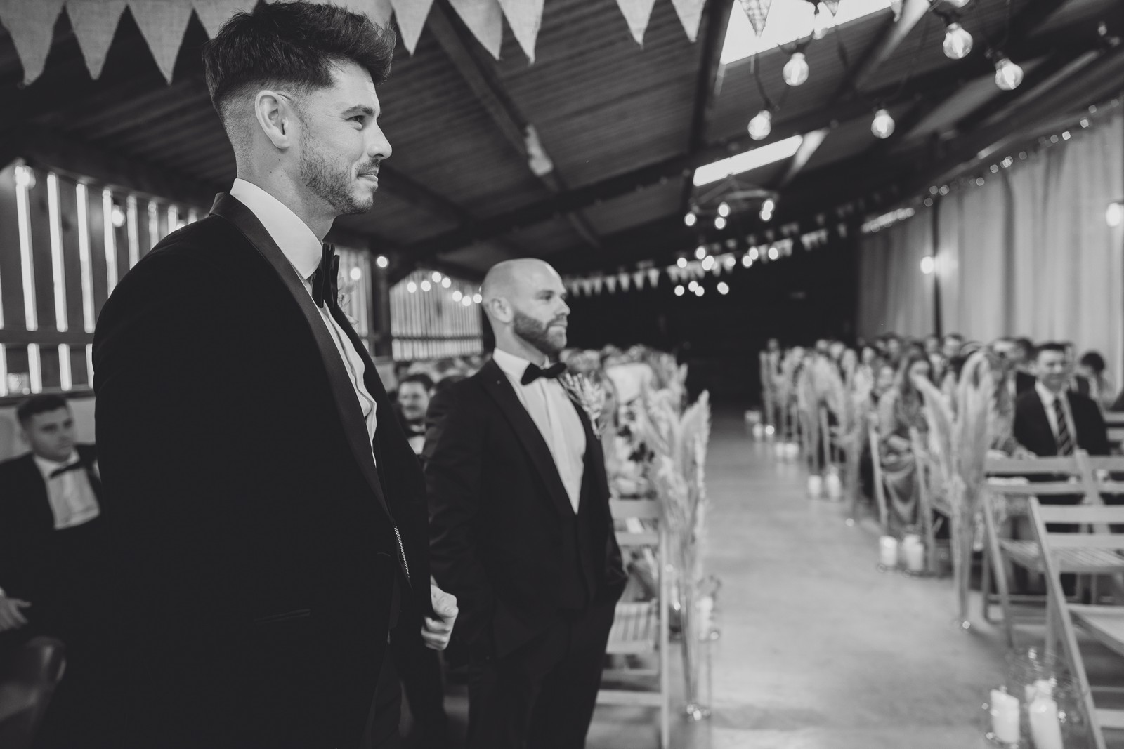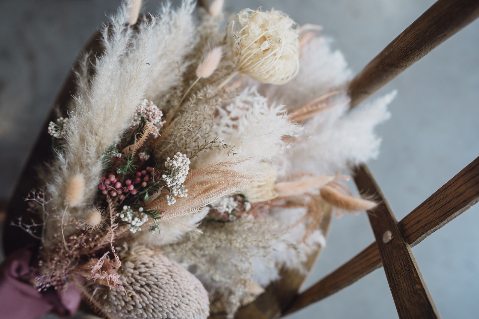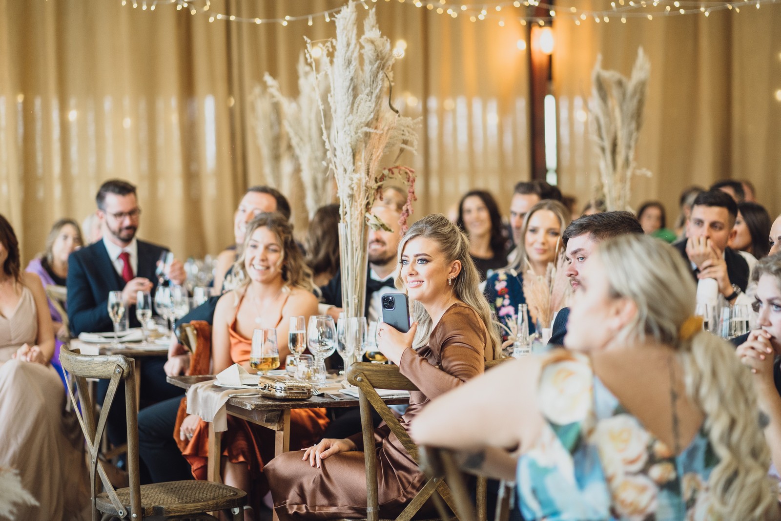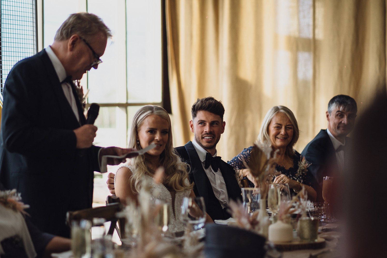 We wanted the day to be fun and relaxed. Grange barn was a perfect venue because it’s rustic and didn’t feel too formal. I really love the look of the pampas grass and dried flowers and think this went really well with the venue and suited the time of year too. The fairy lights at Grange Barn and the ‘to the moon and back’ sign we rented from ido hire helped to make the venue feel really magical!