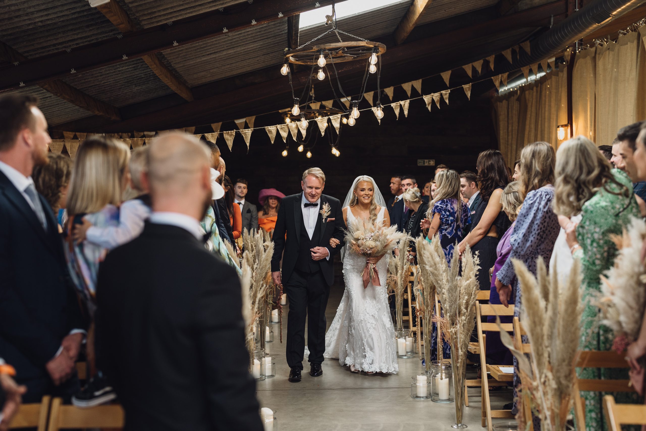 Nestled in the heart of the Cheshire countryside, surrounded by farmland and a hop, skip and a jump to the Shropshire border is Grange Barn. One of the newest wedding venues on the block, renovations started at the beginning of 2019. The former cattle barn is now a relaxed, rustic and modern venue with the owners retaining lots of the original features alongside some unique, contemporary decor.