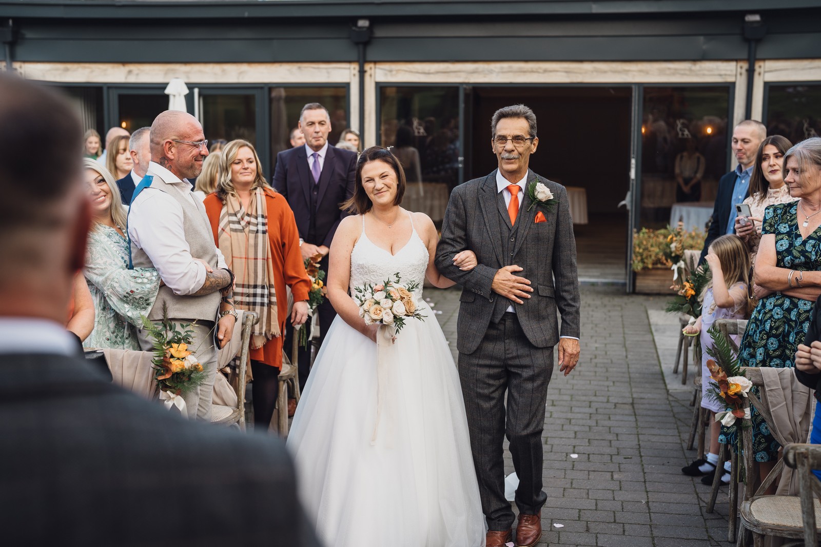 All of our day is memorable. Ian was a little nervous building up to the ceremony but as soon as Christina walked in he was calm and at ease. The speech from the best man (Ian’s son) was heart-warming and sincere. The whole day was loving and went so smoothly from start to finish added by the weather being 23 degrees and sunny for October. With this our ceremony could take place outside which captured the stunning autumnal surroundings of our venue.