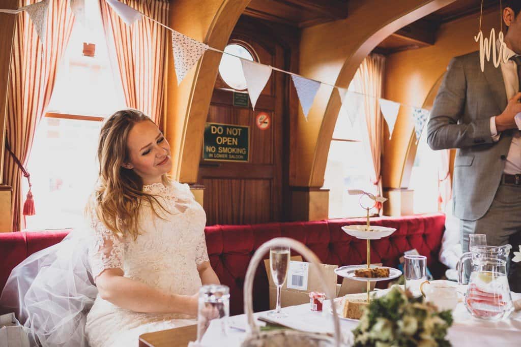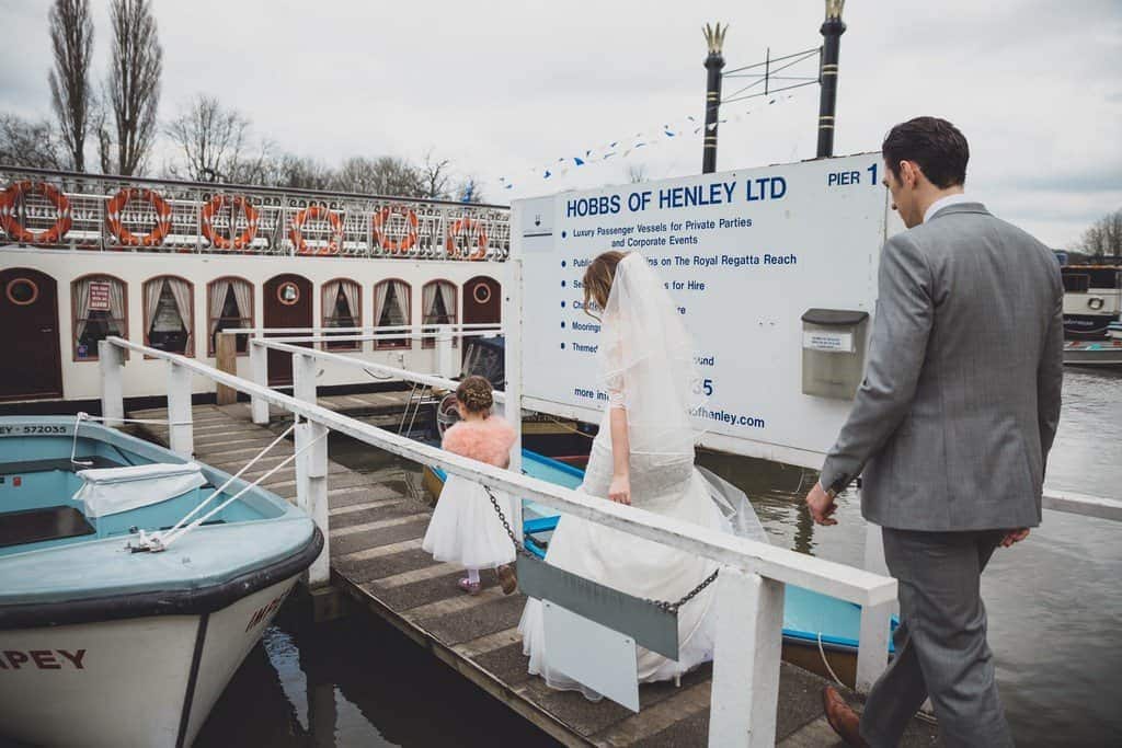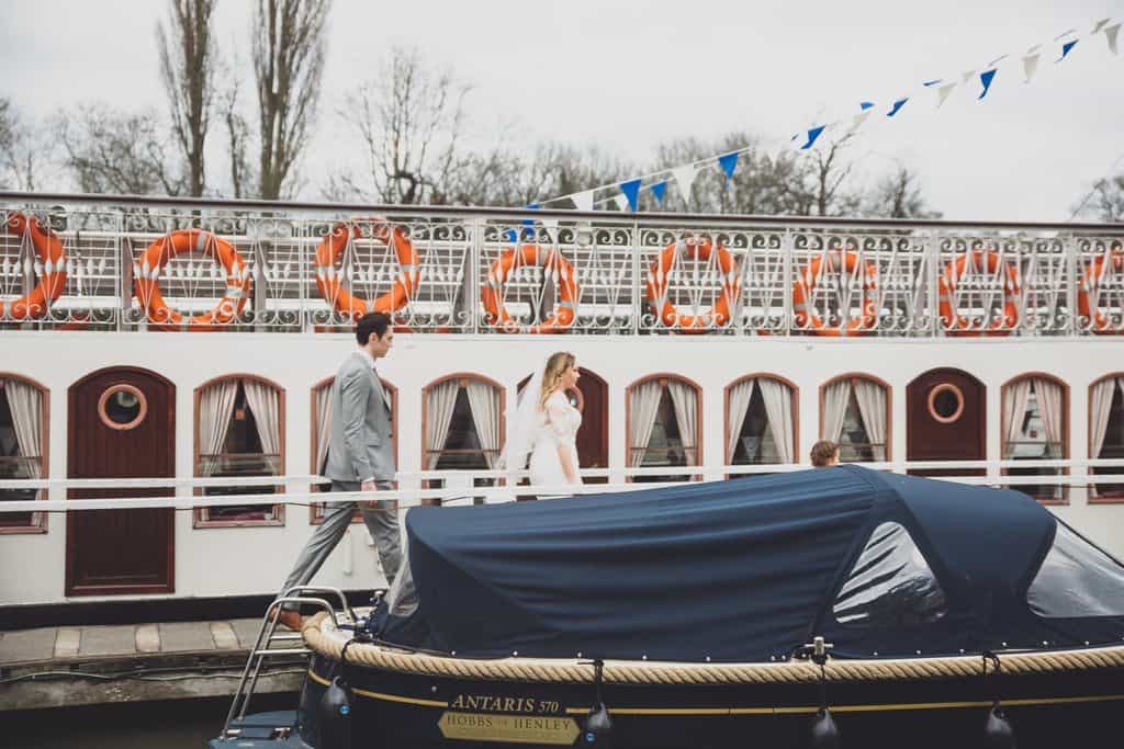 As newlyweds they then walked to the river bank and had afternoon tea aboard a boat on the River Thames with an evening reception in Shiplake Village Hall, complete with hog roast.