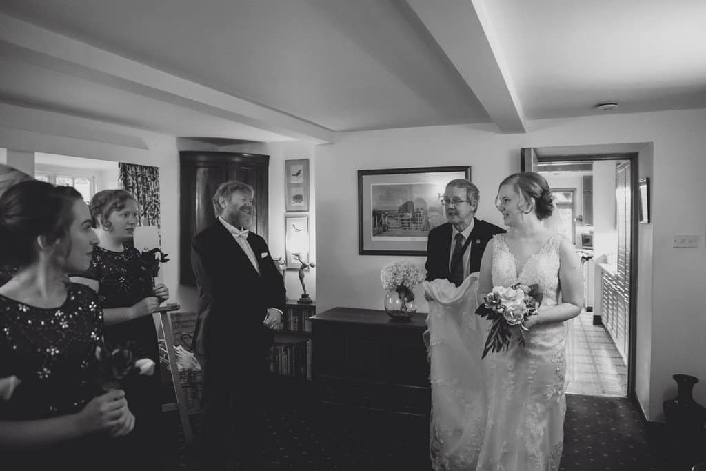 Ashley wore a beautiful beaded gown and her Dad’s face lit up as he saw her for the first time in it. From start to finish their day was as family orientated, relaxed and intimate as they had hoped it would be – just perfect for my style of photography. I especially loved the first dance to ‘Uptown Funk‘ by Mark Ronson and Bruno Mars, -some BRILLIANT dance moves there!- a stark contrast to the Star Trek of earlier! And as well as an array of quirky cakes on the cake table the navy-blue wedding cake featured two Pygmy Griffins. Another excellent personal touch!