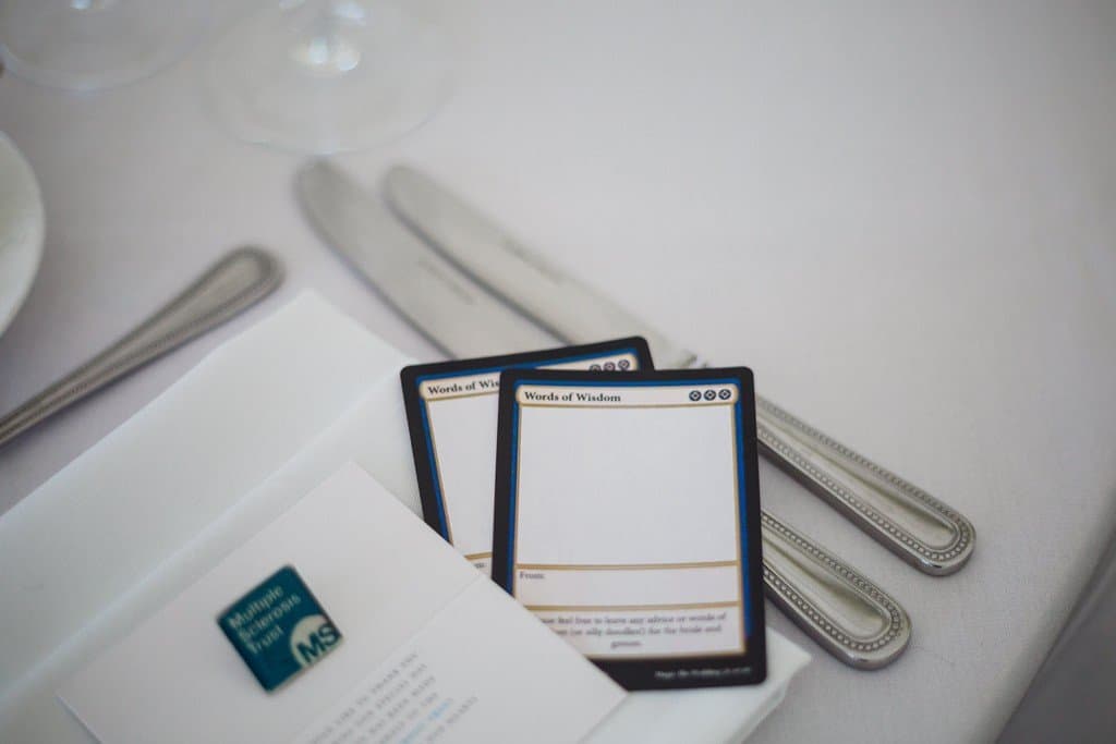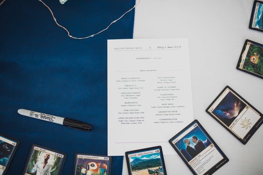 Ashley and James got married on a lovely September day at Hilltop House, a beautiful house set in the countryside of Cheshire and their wedding was filled with the most amazing personal touches. These two Sci-fi fans made sure their wedding reflected their personalities to a tee with Ashley walking down the aisle to the ‘Star Trek – The Next Generation’ theme tune and the general theme of the wedding being based around fantasy fun card game ‘Magic’ with personalised cards all art worked by Ashley.