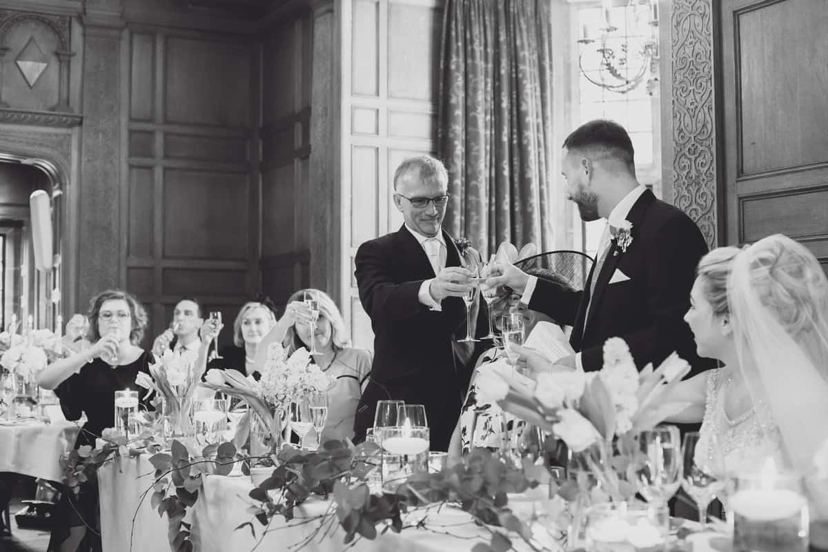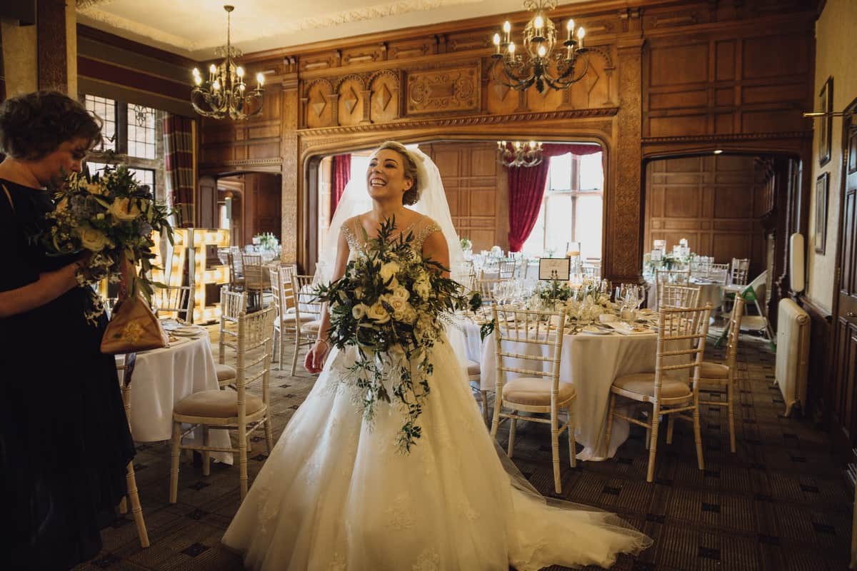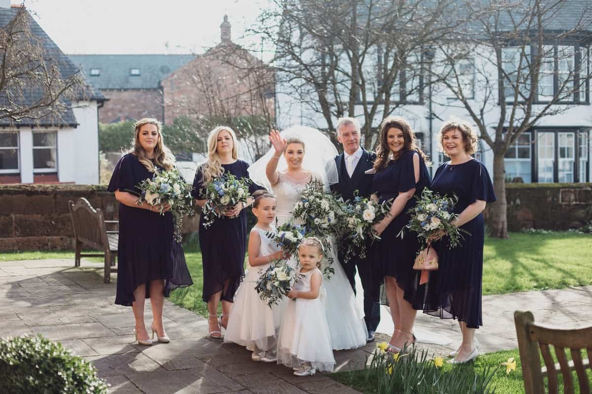 They planned a relaxed, fun wedding filled with all their favourite people, so much love in the room! Gemma said “Highlights of the day for me were when the vicar dropped Glynne’s wedding ring, being early to the Church (I’m never early!!) The Speeches, especially my mum doing a surprise speech and also our first dance to Ed Sheeran – Thinking out loud”. They didn’t have a theme for the day, just wanted a relaxed day with the colour palette being fairly neutral using navy, ivorys and greenery. The room at Inglewood was beautifully decorated by Heather Feather.
