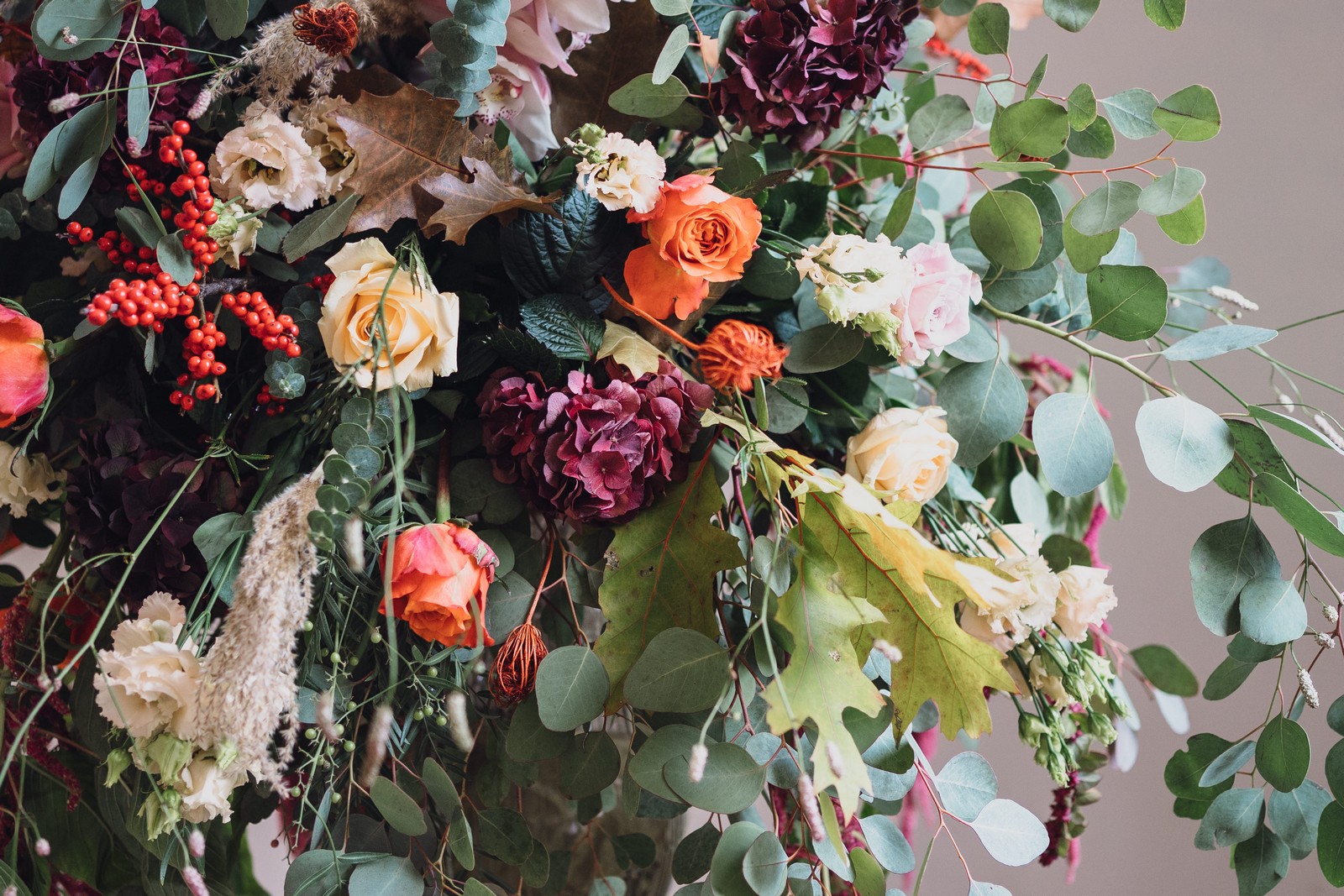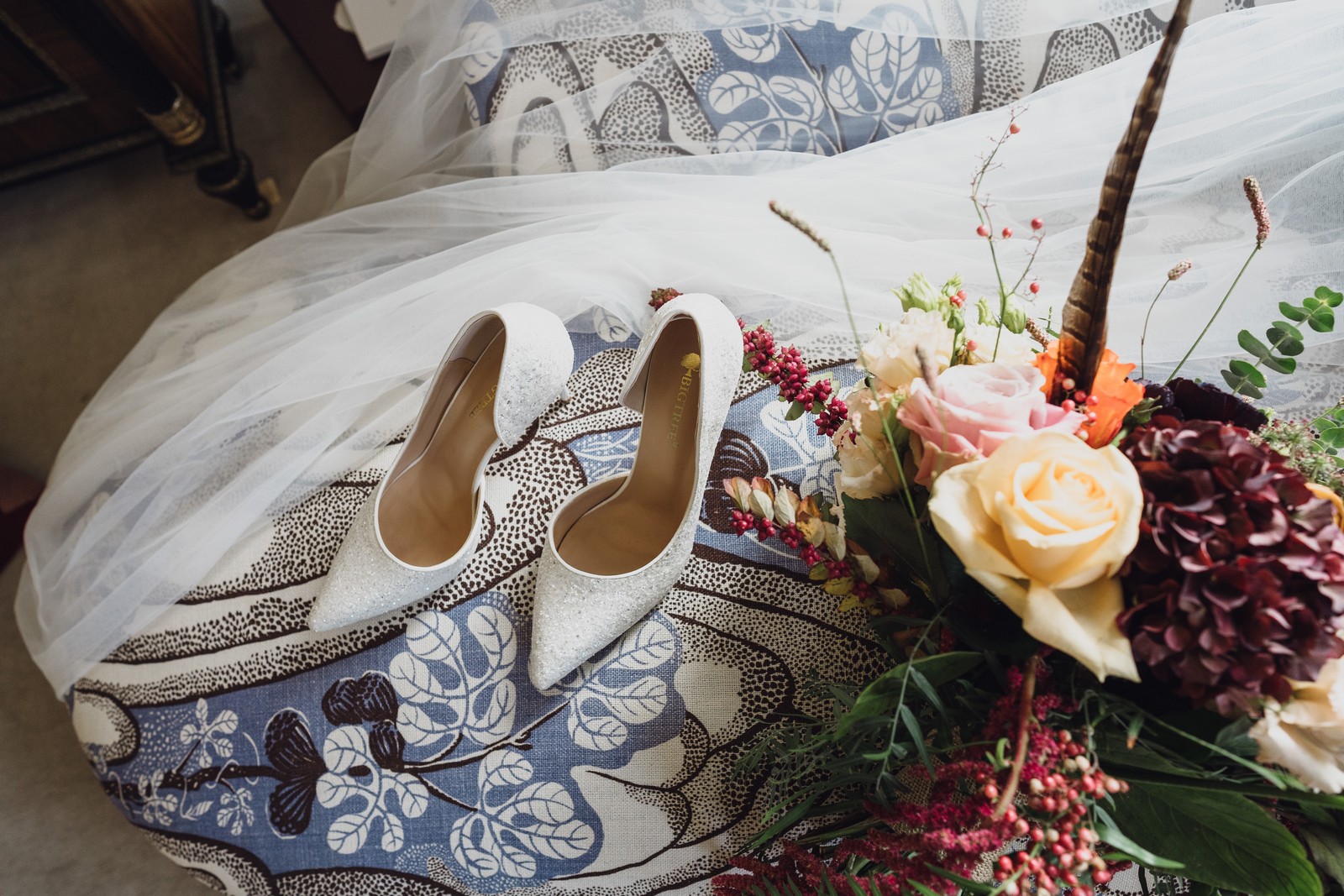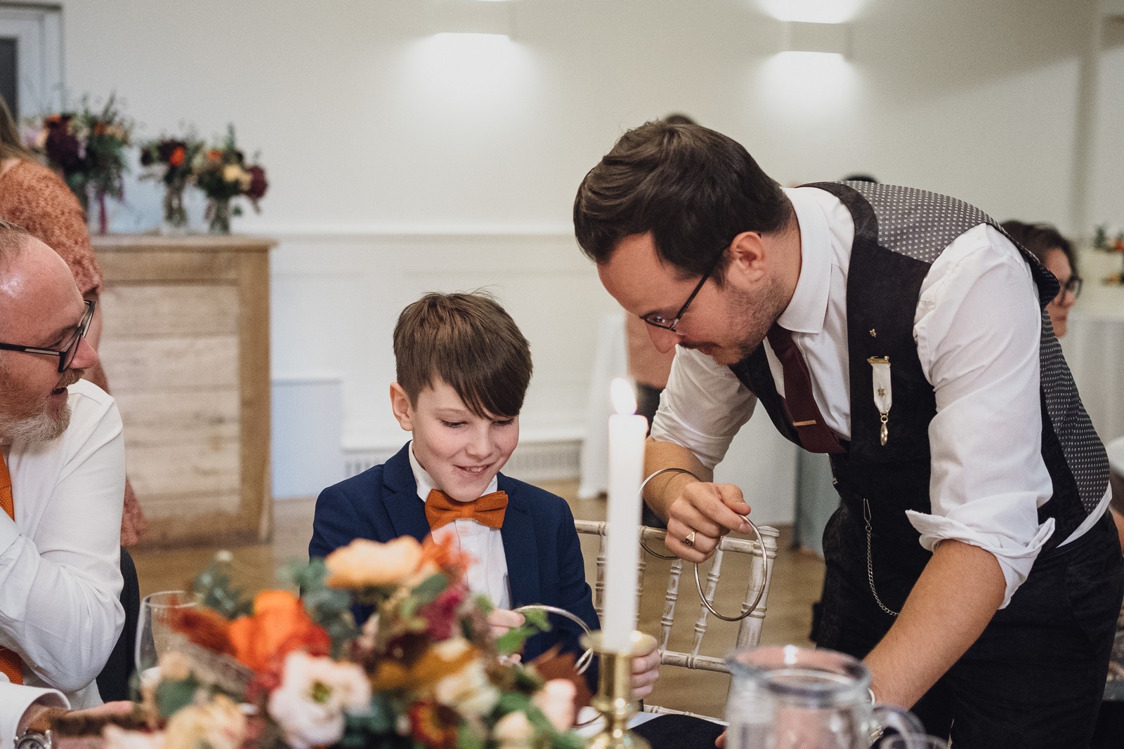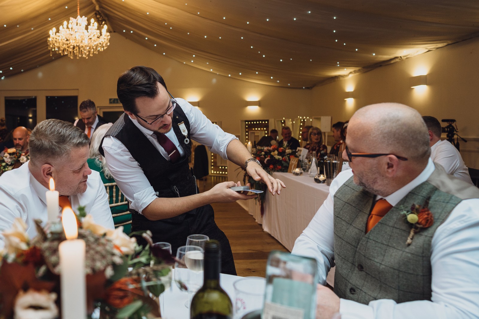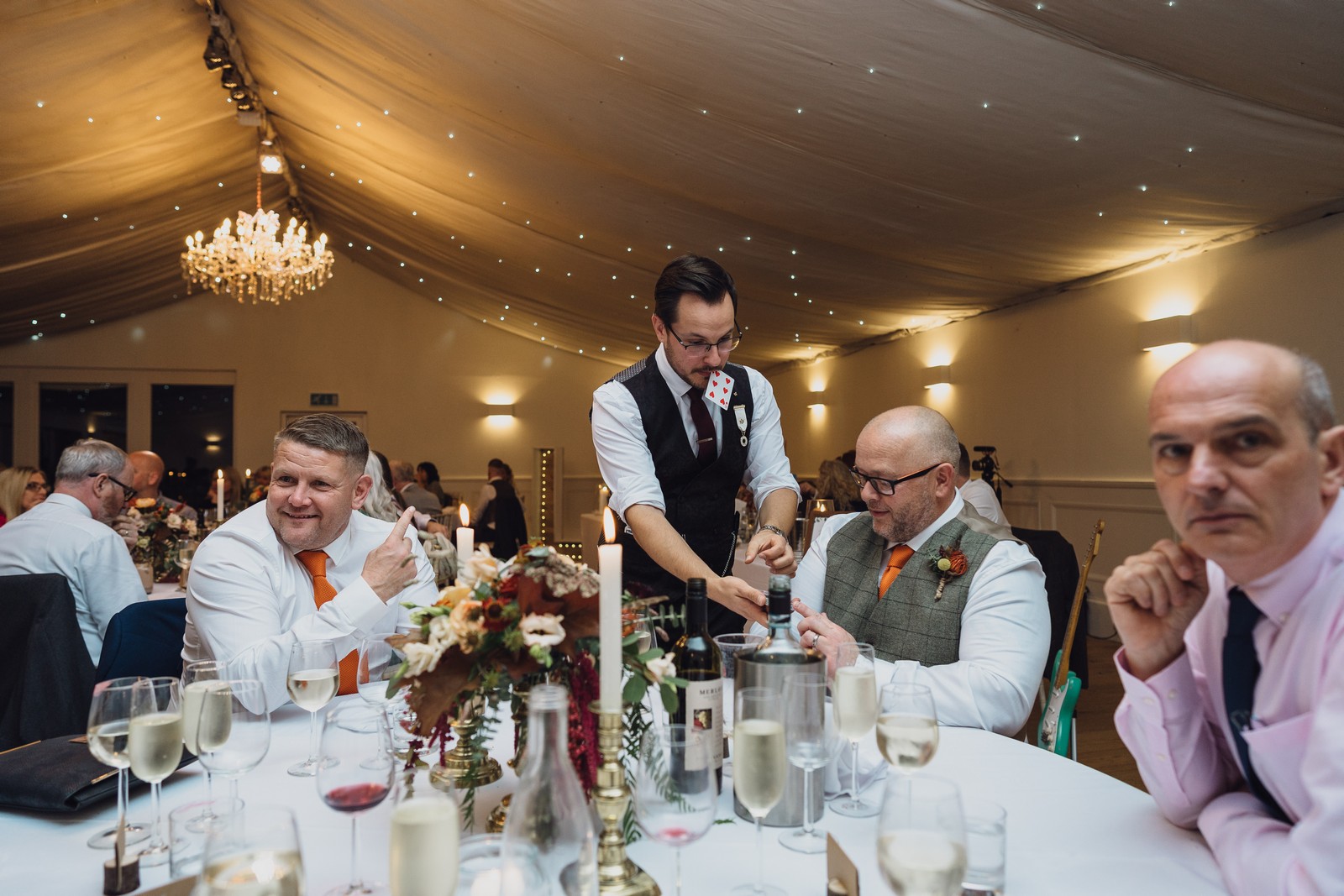 Helen & Richard said ‘We love stately homes, British country tradition, elegance and charm but we wanted a cool modern relaxed fun vibe with lots of rich warm colours’ ” The wedding flowers for the bridal party and groomsmen plus decorating the house was supplied by Rustic Bloom and featured a scheme fitting of a fine country estate wedding in late autumn. Colour scheme orange, green, reds, pinks, burgundy, cherry, we also had feathers in the bouquets and table decorations which looked absolutely stunning’