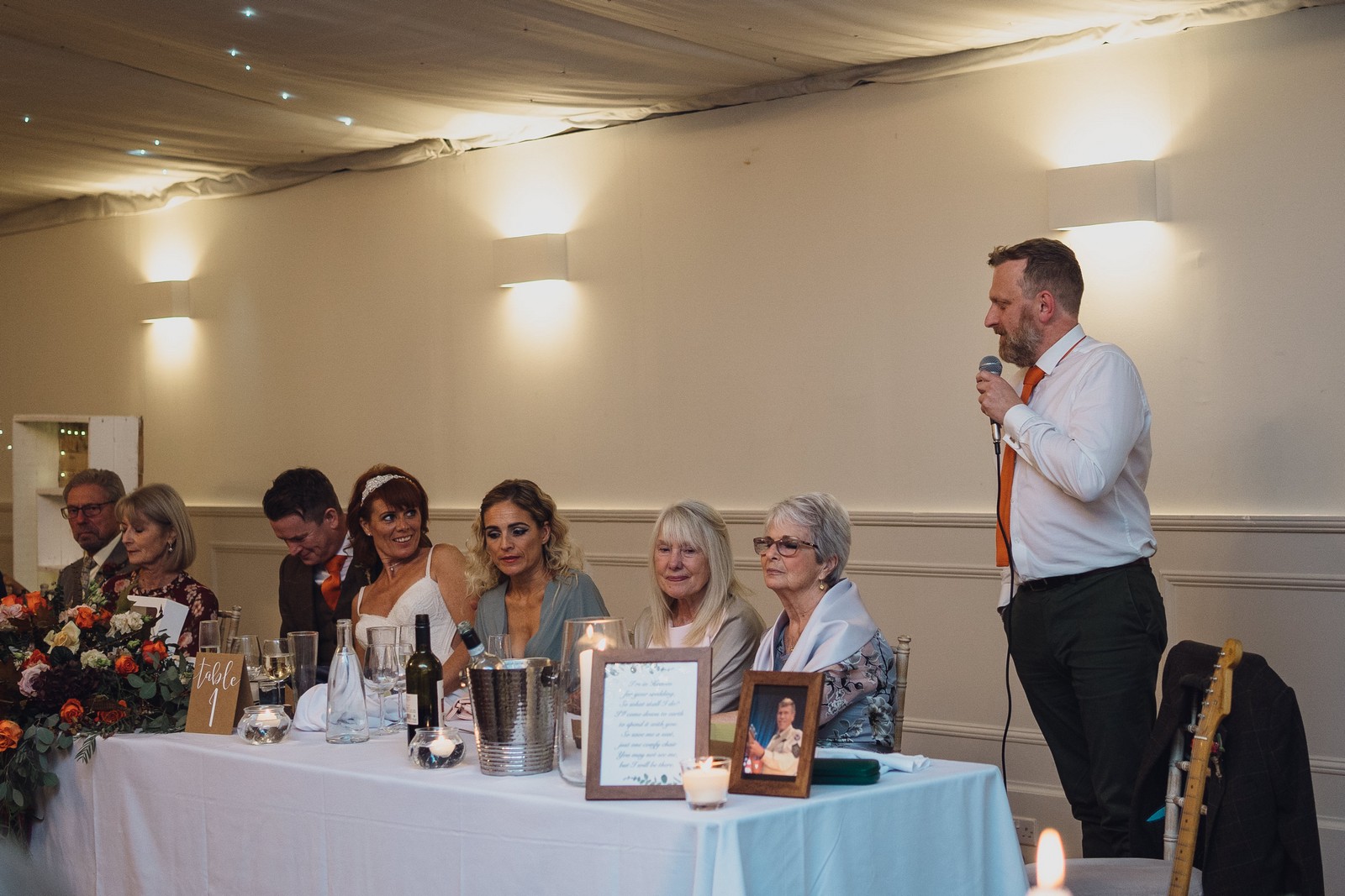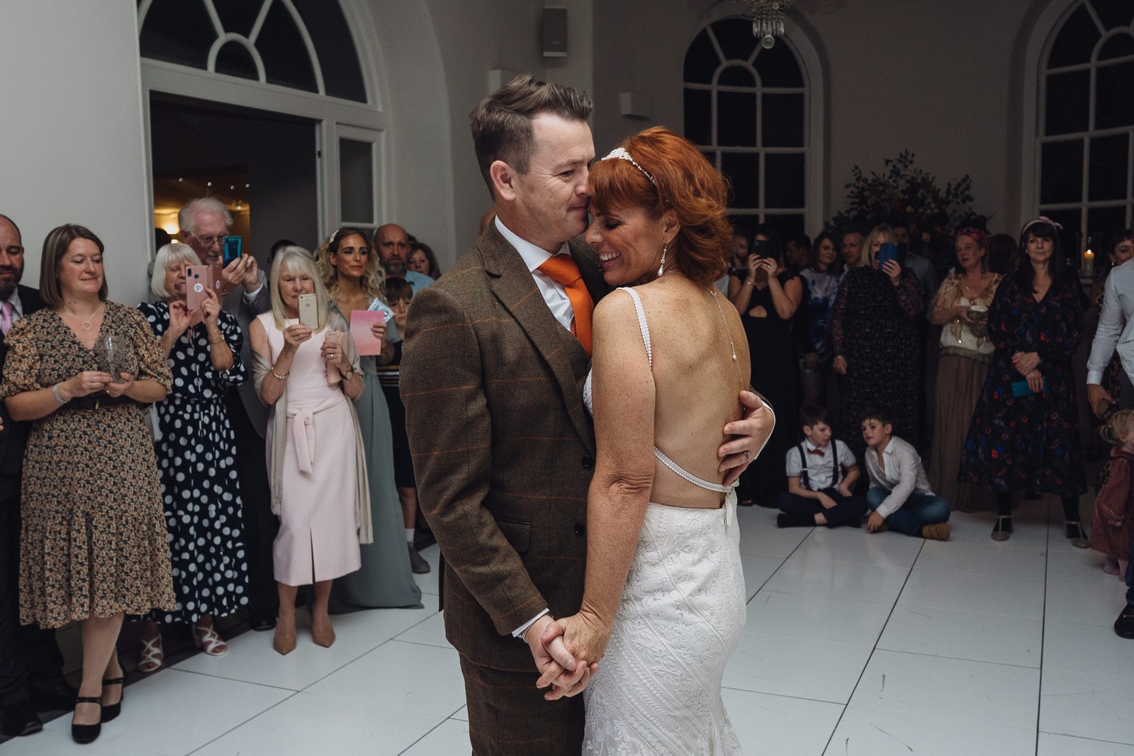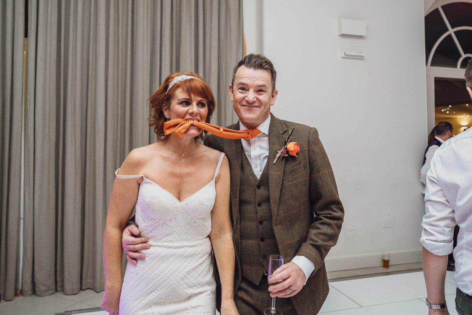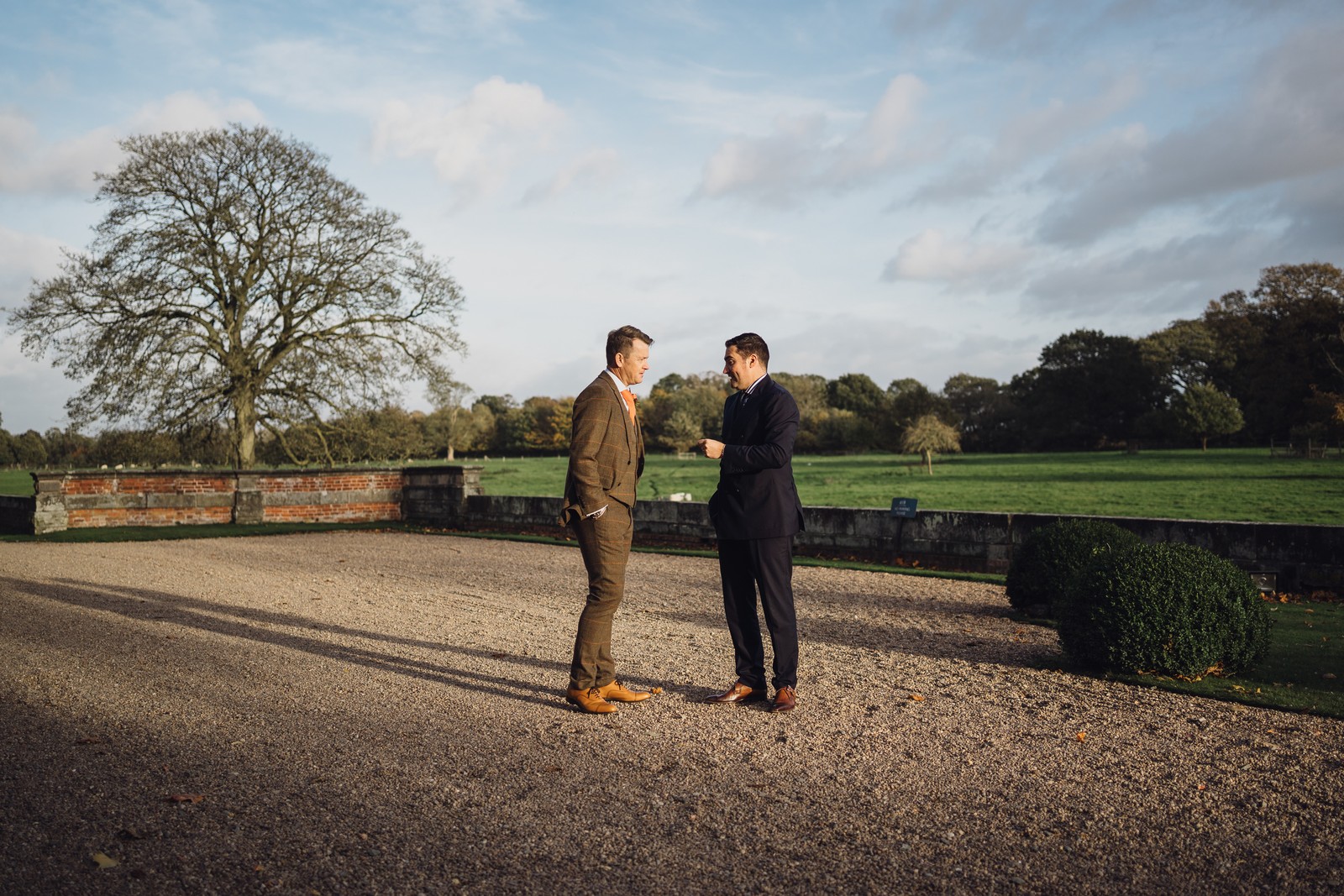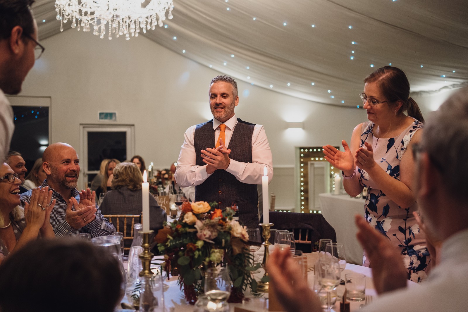 Helen & Richard said ‘We love stately homes, British country tradition, elegance and charm but we wanted a cool modern relaxed fun vibe with lots of rich warm colours’ ” The wedding flowers for the bridal party and groomsmen plus decorating the house was supplied by Rustic Bloom and featured a scheme fitting of a fine country estate wedding in late autumn. Colour scheme orange, green, reds, pinks, burgundy, cherry, we also had feathers in the bouquets and table decorations which looked absolutely stunning’