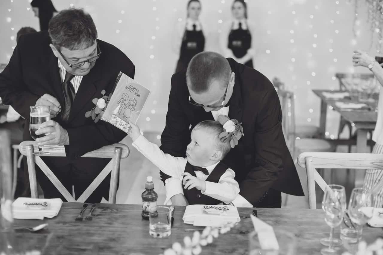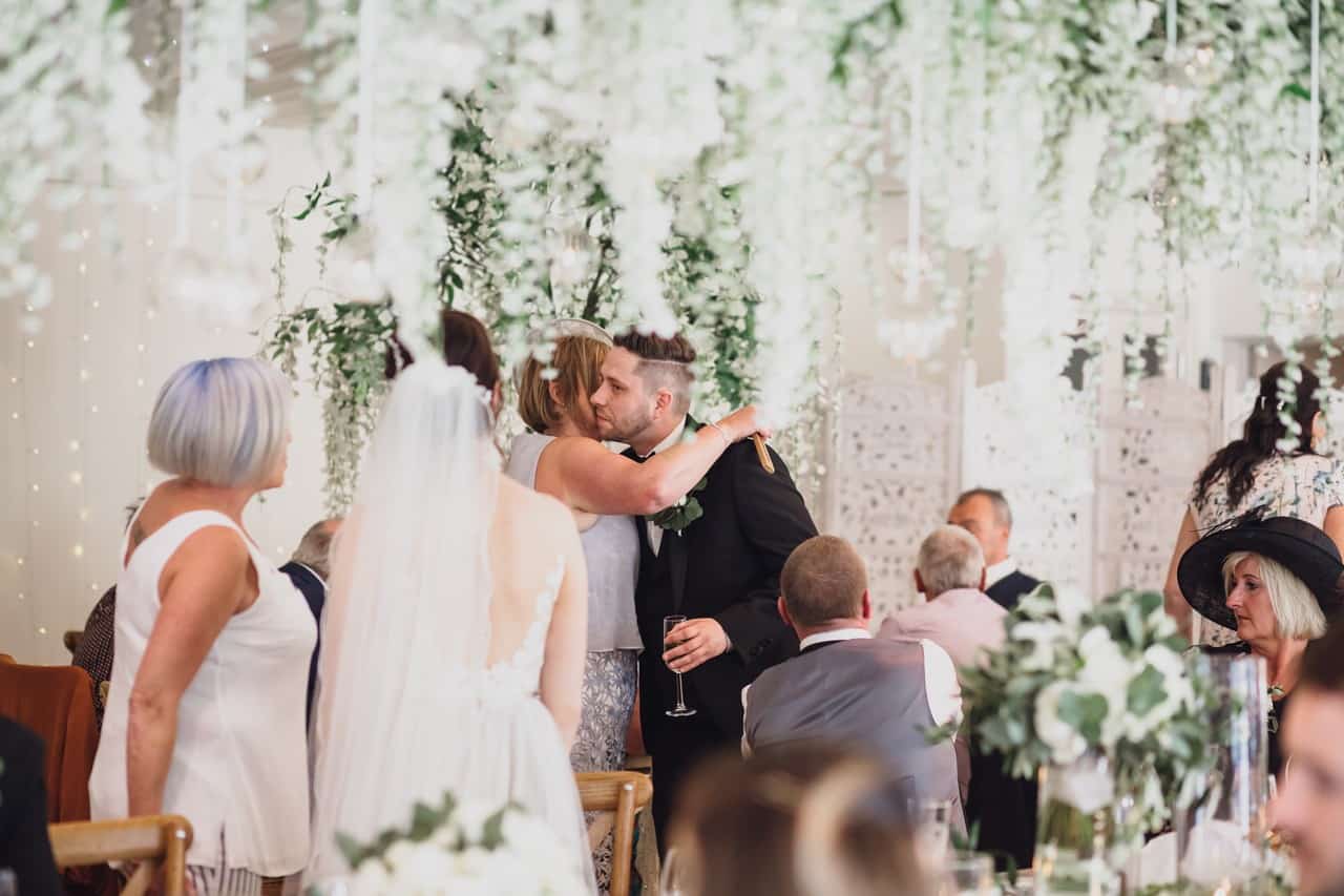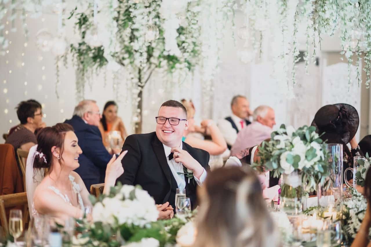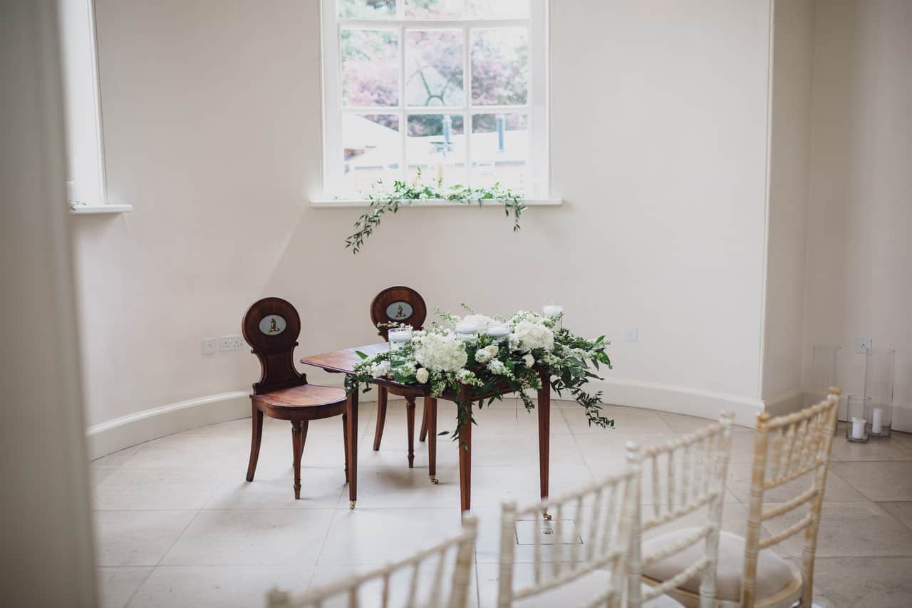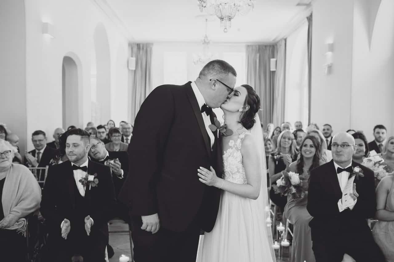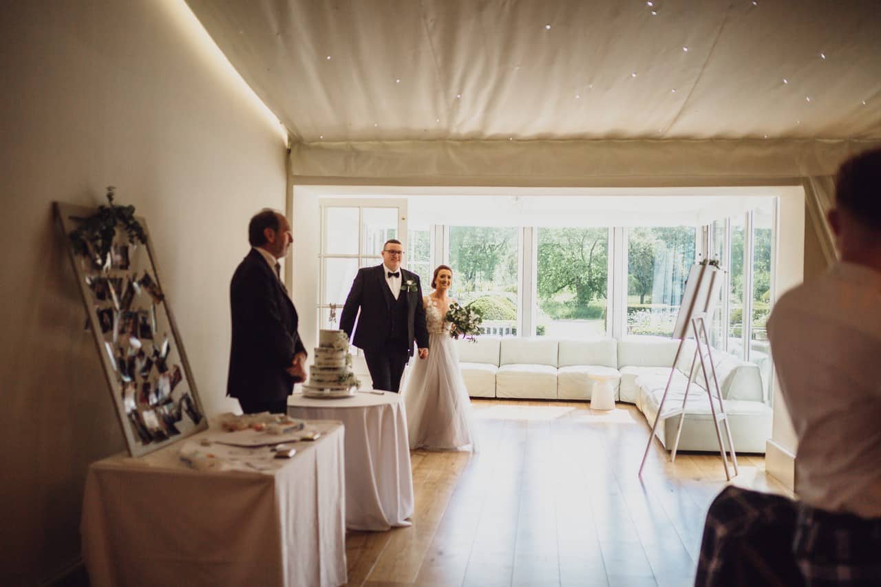The ceremony room at Iscoyd is just beautiful and so light and it was decorated simply and elegantly for Kelly and James with more beautiful greenery and white flowers from amazing florist Red Floral Architecture. As they said their vows, James and Kelly’s toddler son Elliot got involved, standing between them before running off down the aisle to escape! What a cutie.