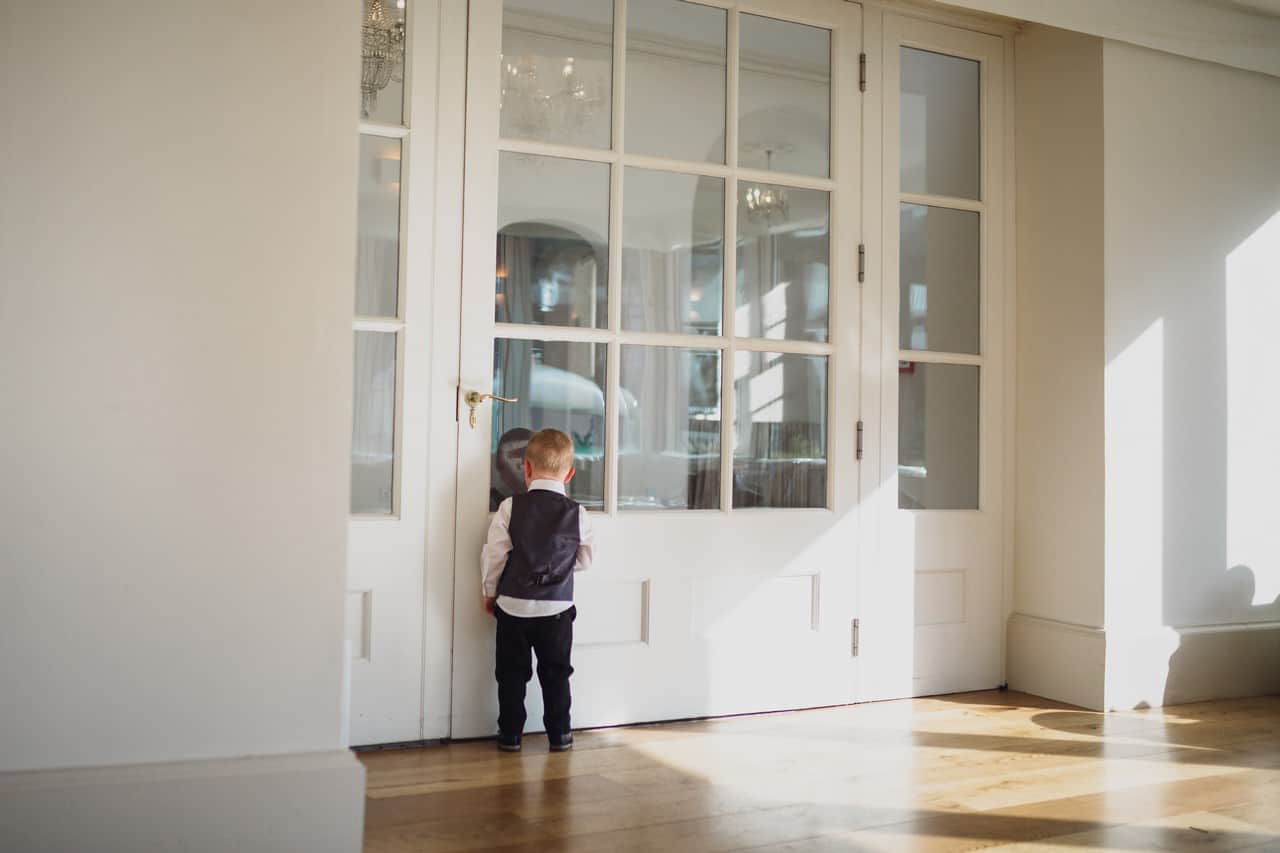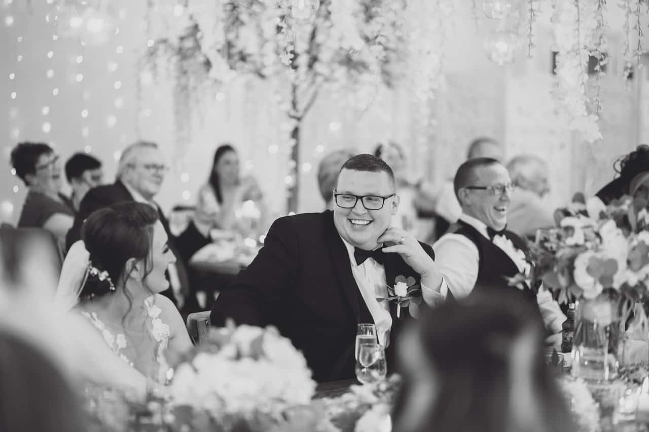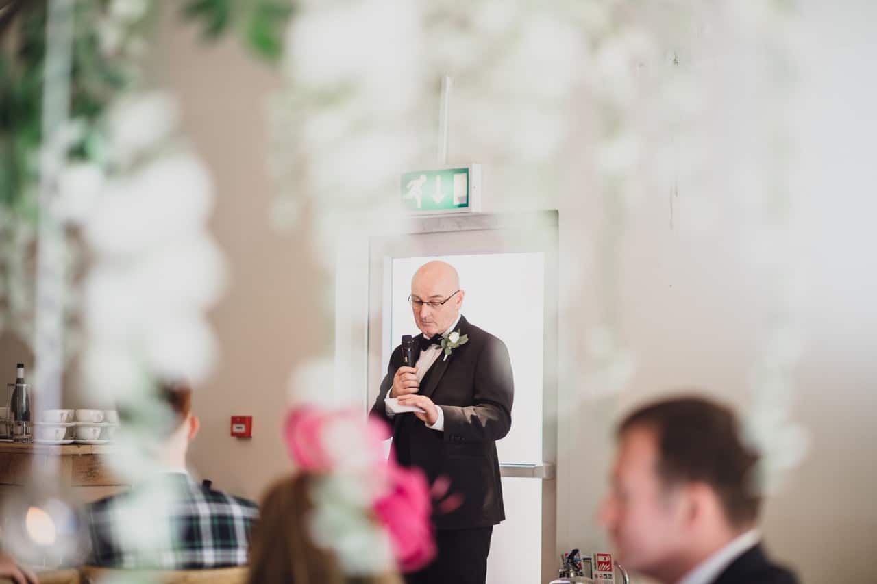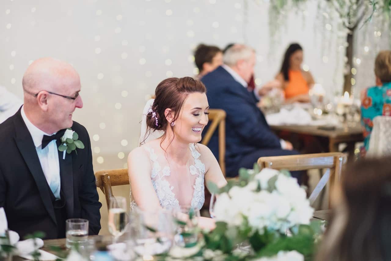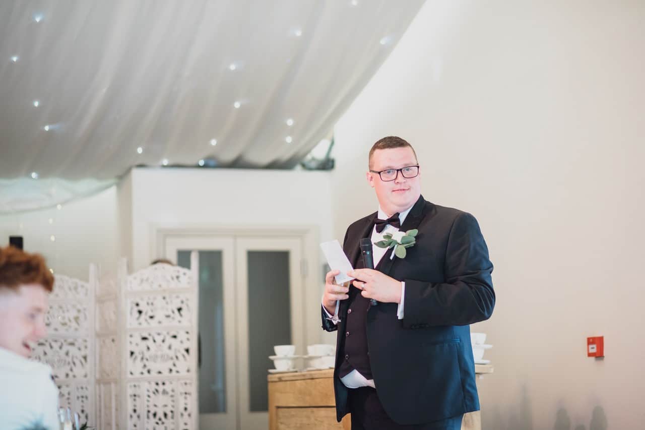 The ceremony room at Iscoyd is just beautiful and so light and it was decorated simply and elegantly for Kelly and James with more beautiful greenery and white flowers from amazing florist Red Floral Architecture. As they said their vows, James and Kelly’s toddler son Elliot got involved, standing between them before running off down the aisle to escape! What a cutie.