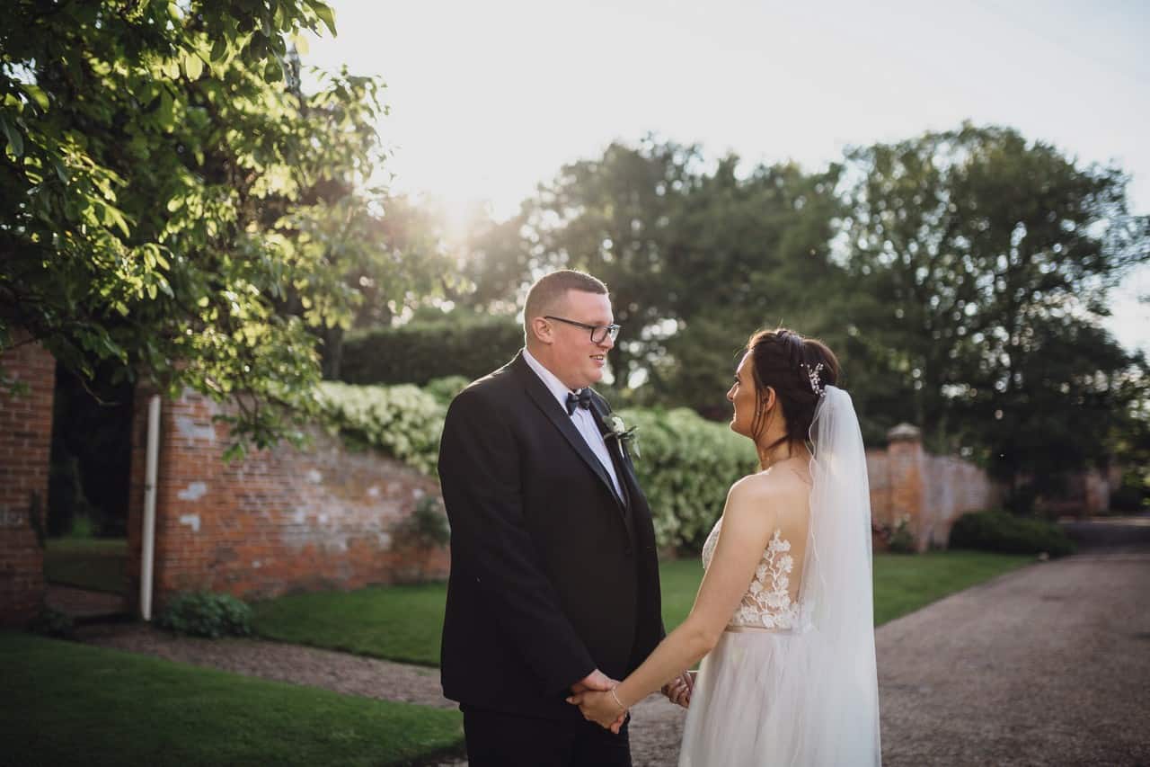 The wedding breakfast was held in the marquee with rustic long tables and yet more incredible trailing white flowers and greenery from Red Floral suspended above the tables. It just looked amazing. Kelly and James were all about my relaxed style and didn’t want many portraits but we managed to sneak out during golden hour for a few minutes so they could spend some time together and I could get some of my signature golden hour couples portraits.